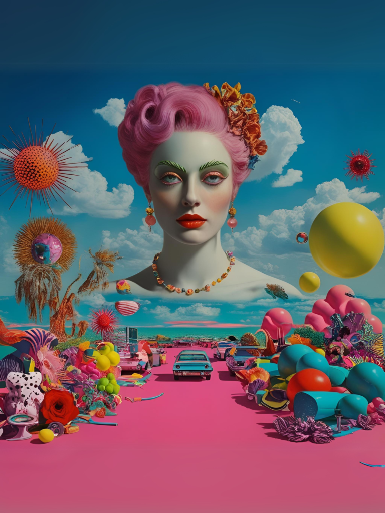 4. “Imagine a large-scale artwork that elevates mundane objects to the status of art, incorporating elements of commercial design and advertising.”