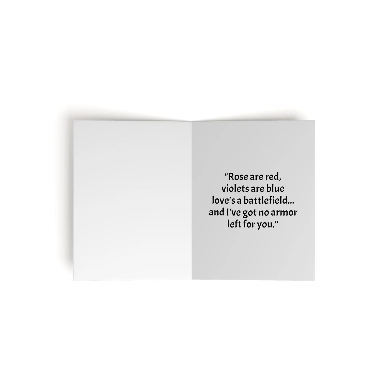 “Roses are red, violets are blue, love’s a battlefield… and I’ve got no armor left for you.”
