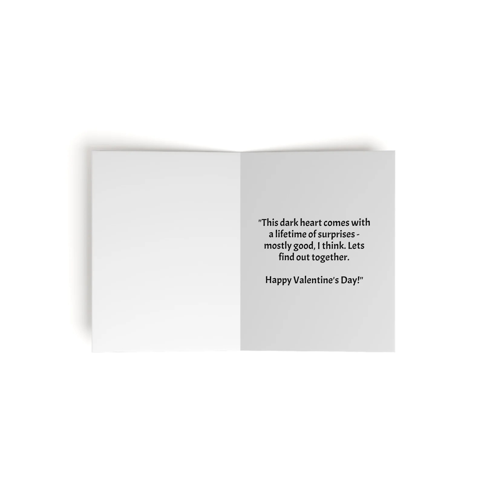 “This dark heart comes with a lifetime of surprises—mostly good, I think. Let’s find out together. Happy Valentine’s Day!”
