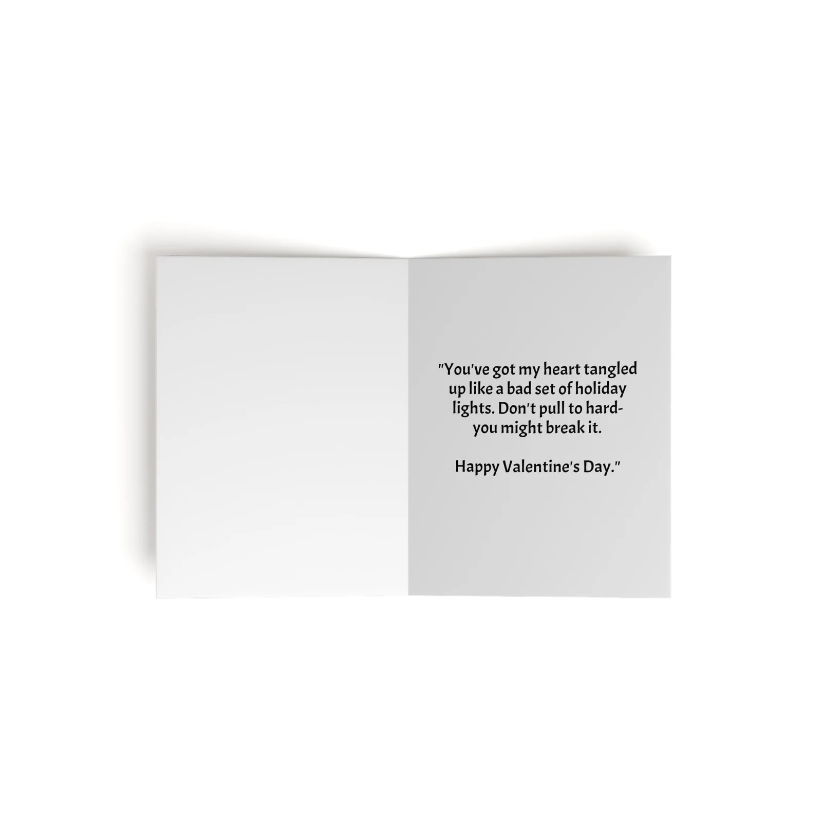 “You’ve got my heart tangled up like a bad set of holiday lights. Don’t pull too hard—you might break it. Happy Valentine’s Day!”