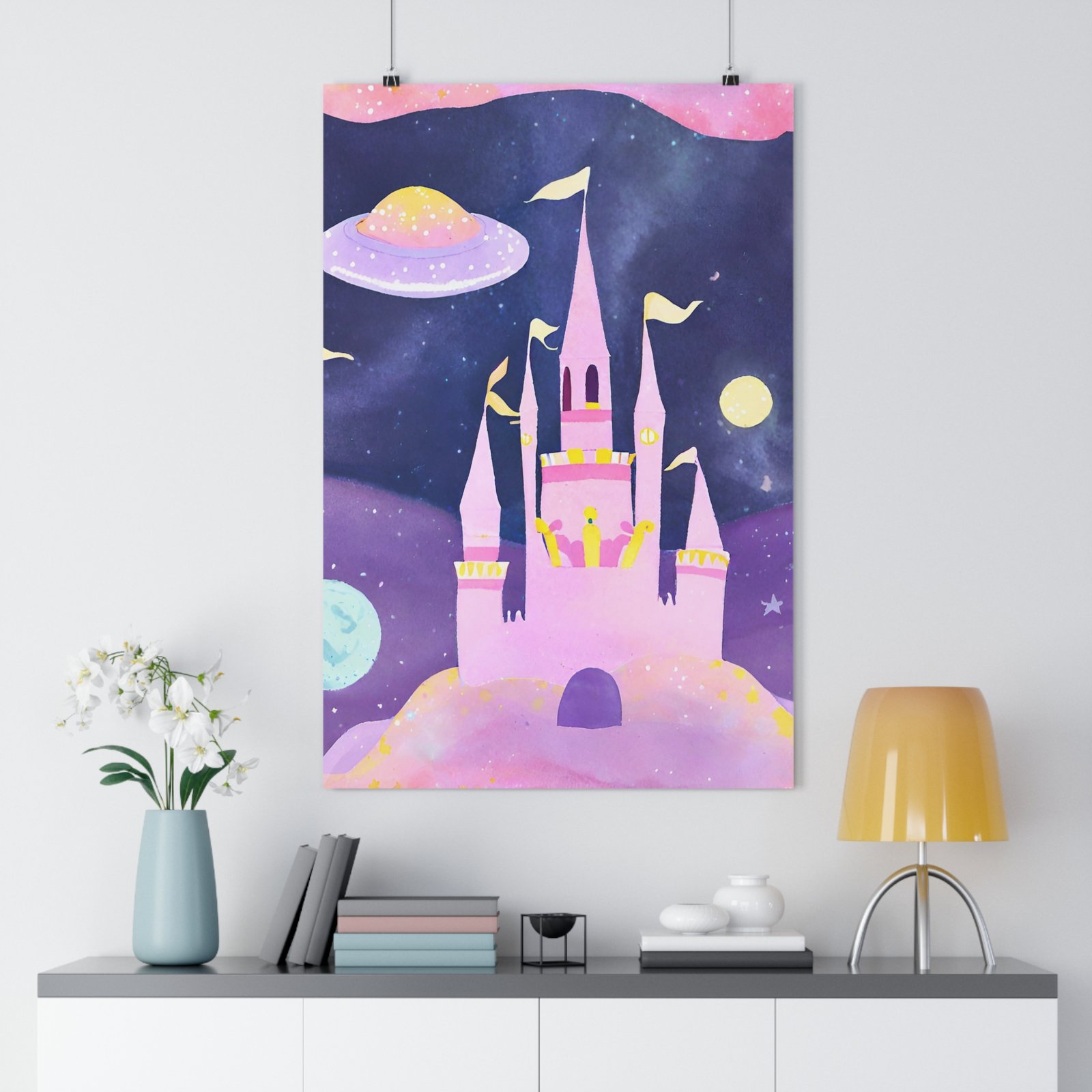 Transform your space with this stunning Giclée Art Print that evokes a sense of wonder and whimsy. Perfect for adding a splash of color and inspiration to your home, this print captures a dreamy castle under a starry sky, making it an enchanting focal point for any room. Whether you’re decorating a child’s bedroom, a playroom, or your living space, this art piece instantly creates an uplifting atmosphere, sparking imagination and joy.