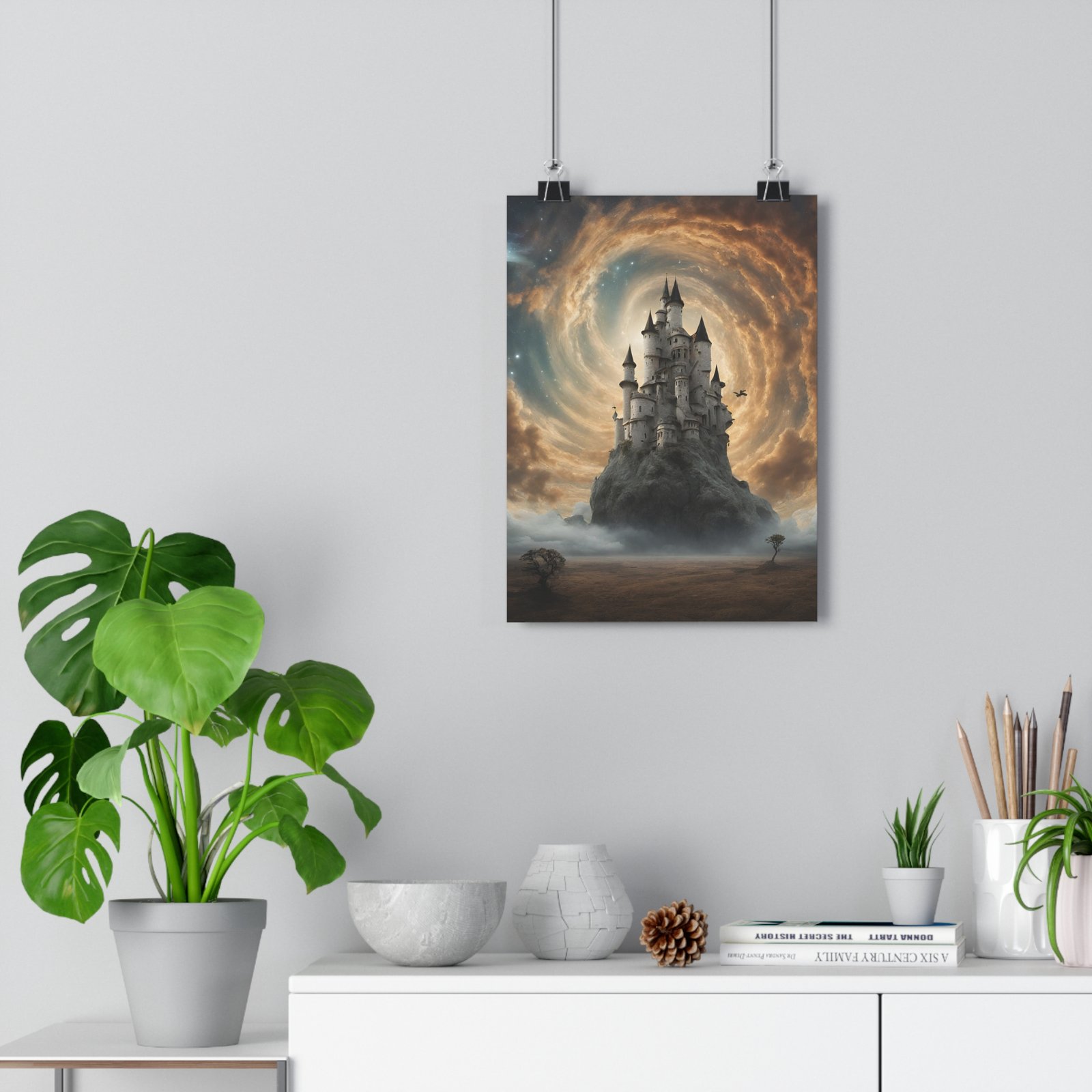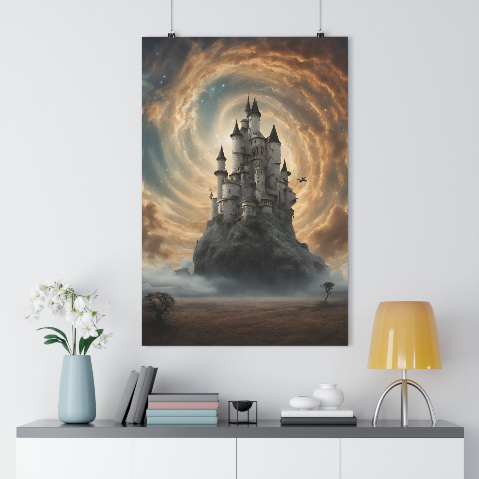 Fantasy Castle Giclée Art Print | Enchanted Decor, Wall Art, Dreamy Artwork, Magical Home Decor, Gift for Fantasy Lovers. Transform your living space with this captivating Giclée art print! This stunning piece features a magical castle enveloped by swirling clouds, creating an enchanting atmosphere that sparks imagination and wonder. Perfect for brightening up your home office, living room, or any space that could use a touch of whimsy. Ideal for art lovers, collectors, and those looking to celebrate creativity in their lives. This print makes a wonderful gift for weddings, housewarmings, or any special occasion where you want to bring joy and inspiration. Elevate your decor and immerse yourself in a fairy tale vibe all year round!