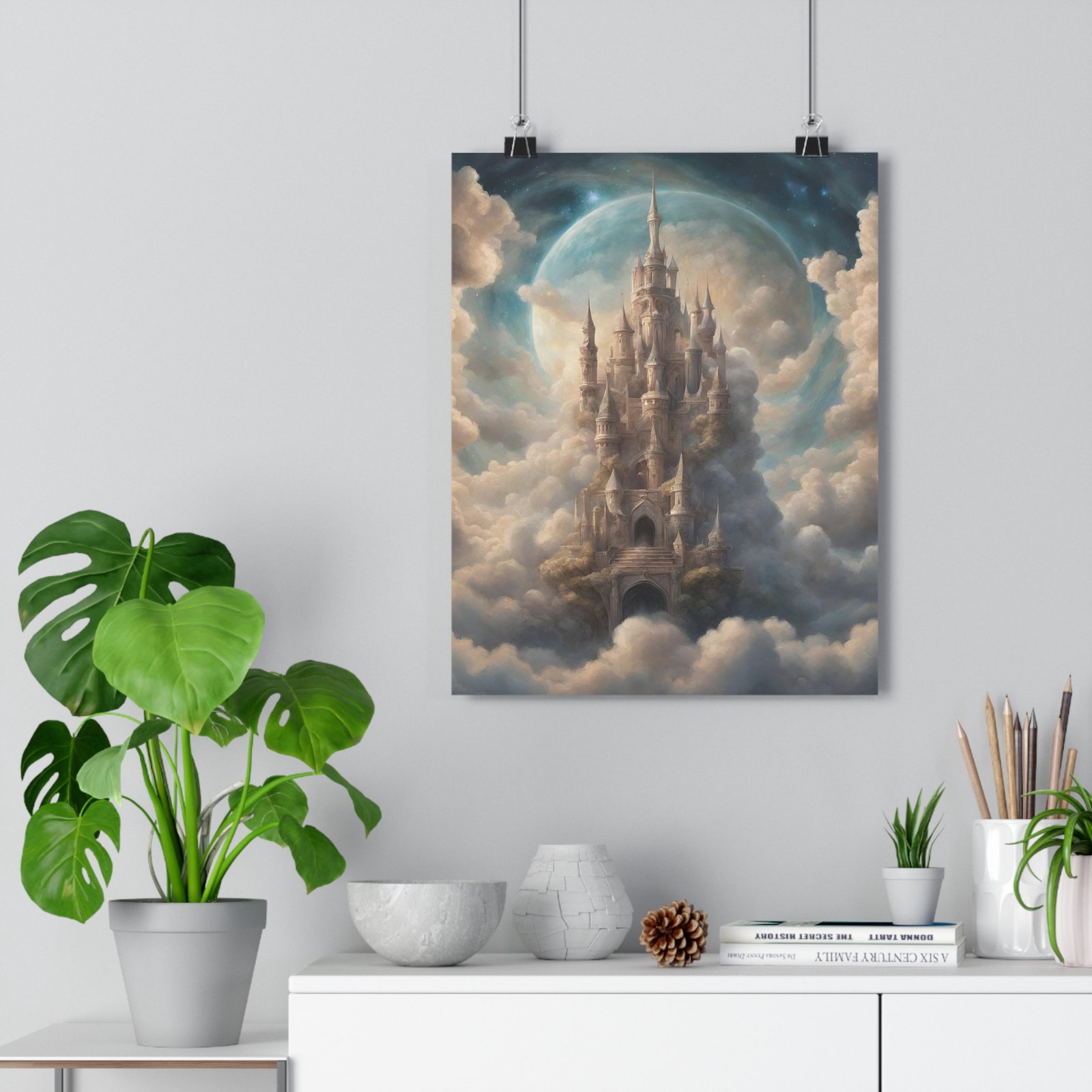 Fantasy Castle Giclée Art Print, Dreamy Wall Decor, Magical Home Art, Fantasy Illustration, Ethereal Art for Celebrations. Transform your living space with this stunning Giclée Art Print. Featuring vibrant, pigmented archival inks, the print showcases an enchanting castle amidst dreamy clouds, creating a whimsical atmosphere that sparks imagination. Perfect for adding a touch of fantasy to your home decor, this piece effortlessly enhances any room, whether it be a cozy reading nook or a vibrant children’s space. Its museum-grade quality ensures longevity, making it an ideal gift for art lovers, families, or anyone wanting to elevate their interior design. This art print is perfect for various occasions, including housewarmings, birthdays, or seasonal decorations, bringing warmth and character to any environment.