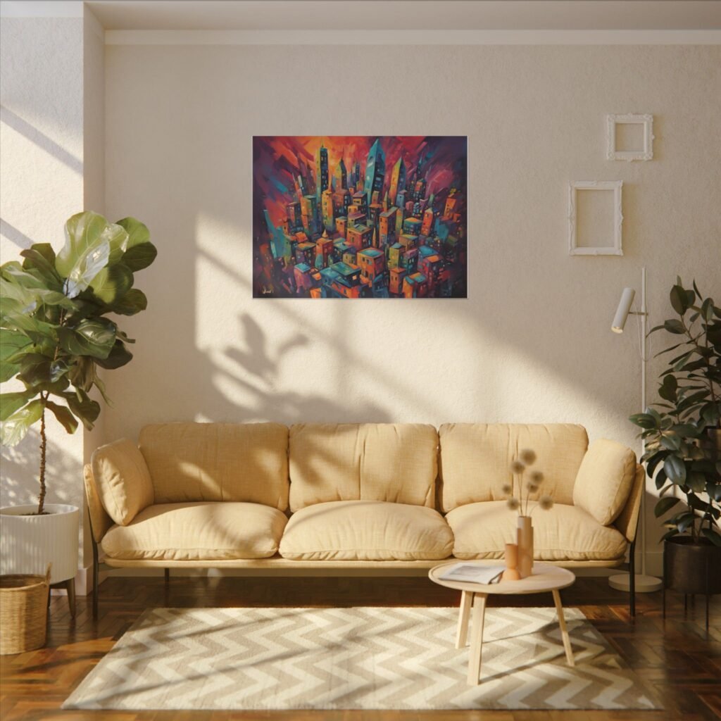 Brighten your space with this stunning Matte Canvas! Each piece exudes a vibrant cityscape that adds an artistic flair to any room. Ideal for art lovers and those who cherish urban aesthetics, this canvas makes a bold statement. Perfect for home décor or as a thoughtful gift, it suits various occasions such as housewarmings, birthdays, or holidays. Bring life and energy to your living space with this captivating artwork. The warm colors and dynamic design create an inviting atmosphere, making it a great choice for your living room, bedroom, or office.