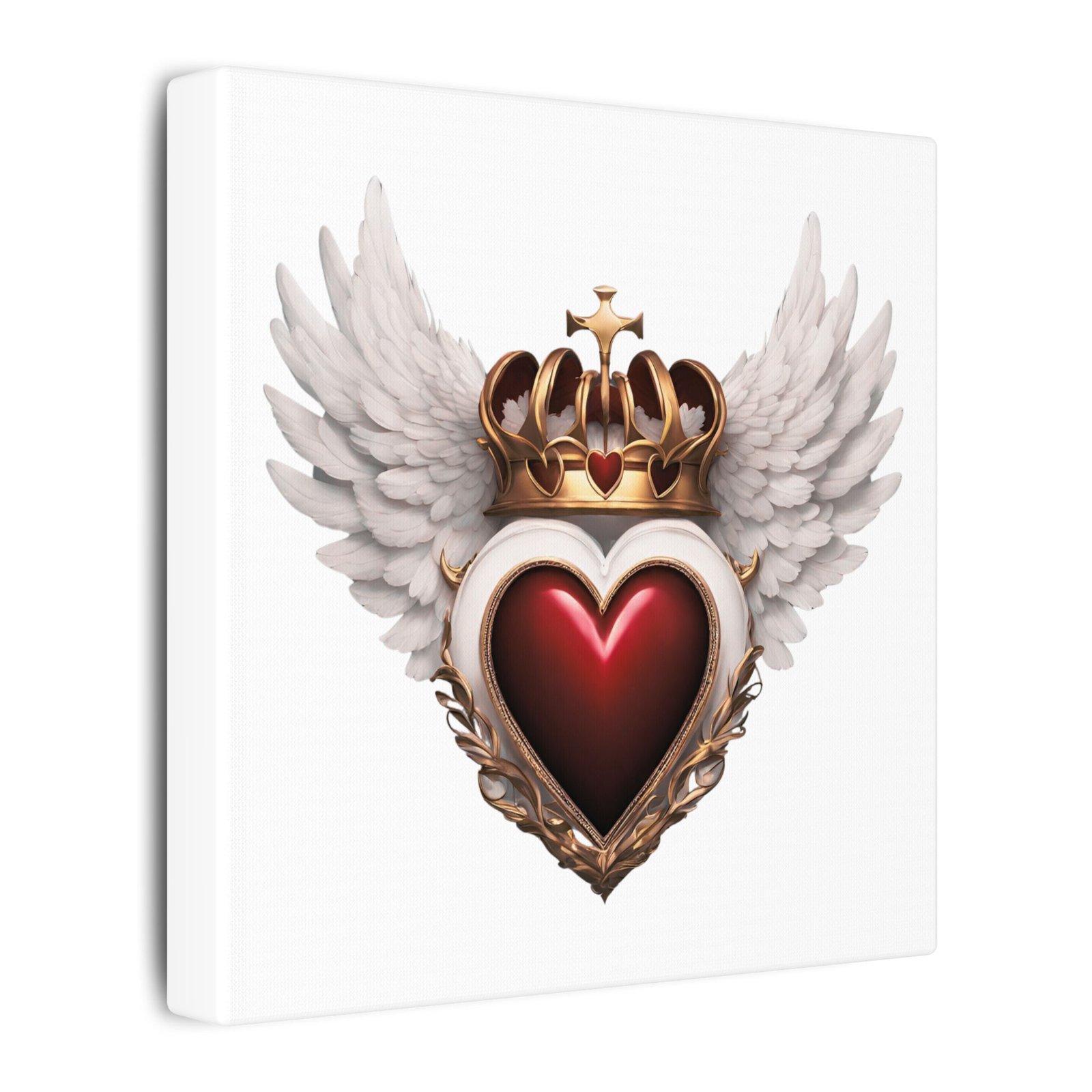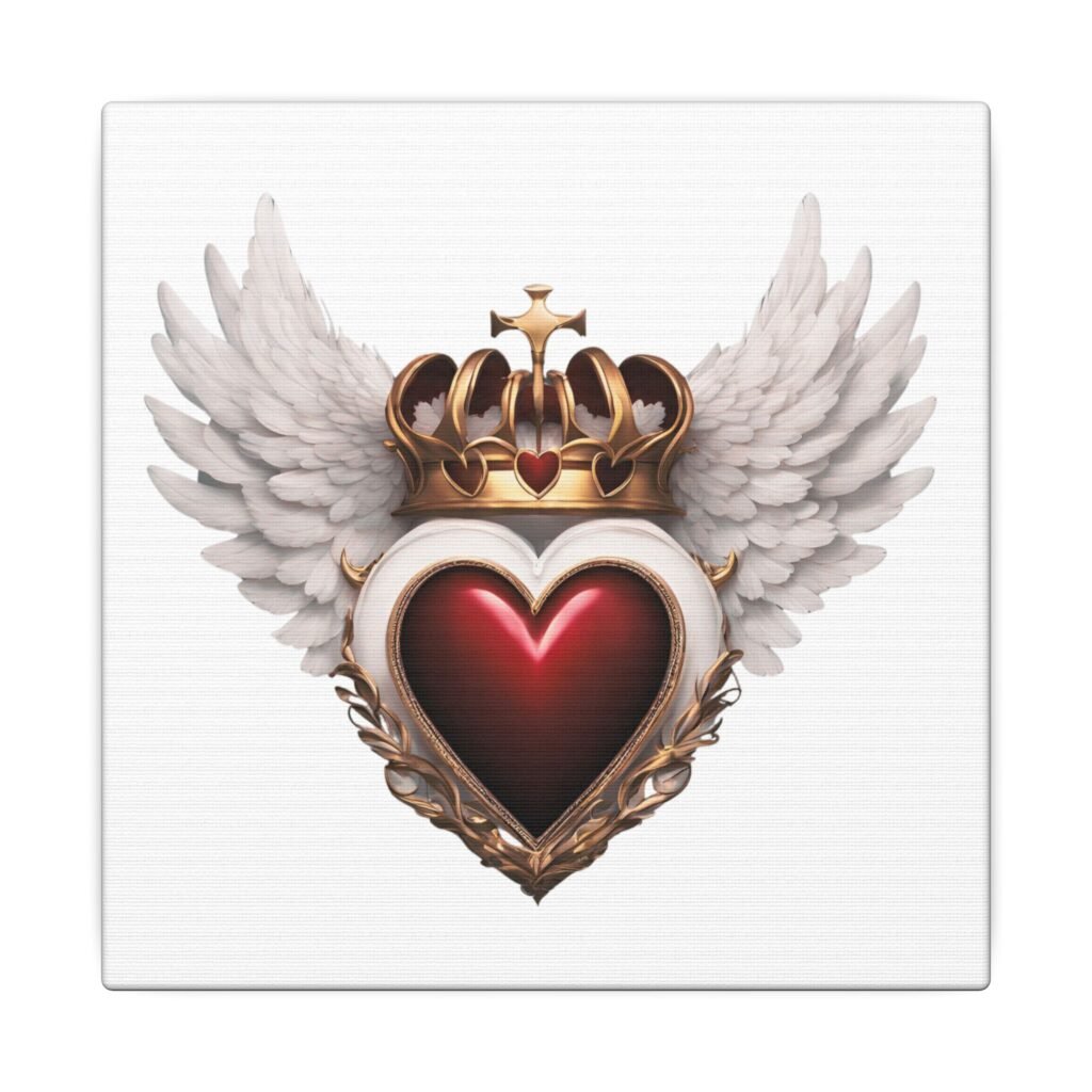 Angel Wings Decor, Romantic Wall Art, Unique Gift for Her, Home Decor, Valentine’s Day. Transform your space with this stunning Matte Canvas artwork, featuring a beautifully designed heart crowned with wings and a regal crown. The vibrant colors and striking details bring an aura of elegance and passion to any room. Perfect for those who appreciate art that resonates with love and beauty, this canvas will enhance your home, studio, or office. Ideal for gifting on special occasions such as Valentine's Day, anniversaries, or weddings, it captures the essence of romance and celebration. An excellent choice for art lovers, couples, and anyone looking to add a touch of sophistication to their decor.