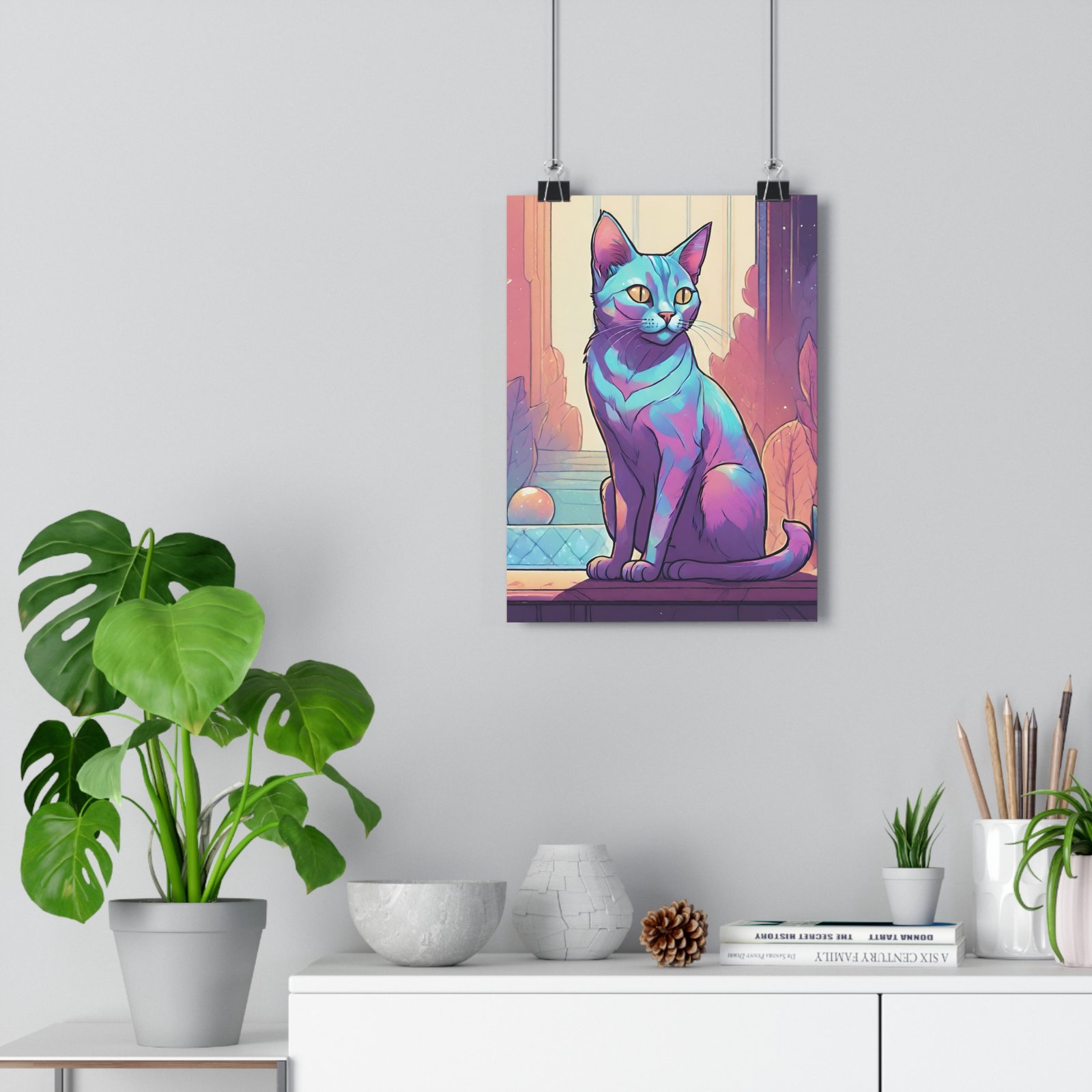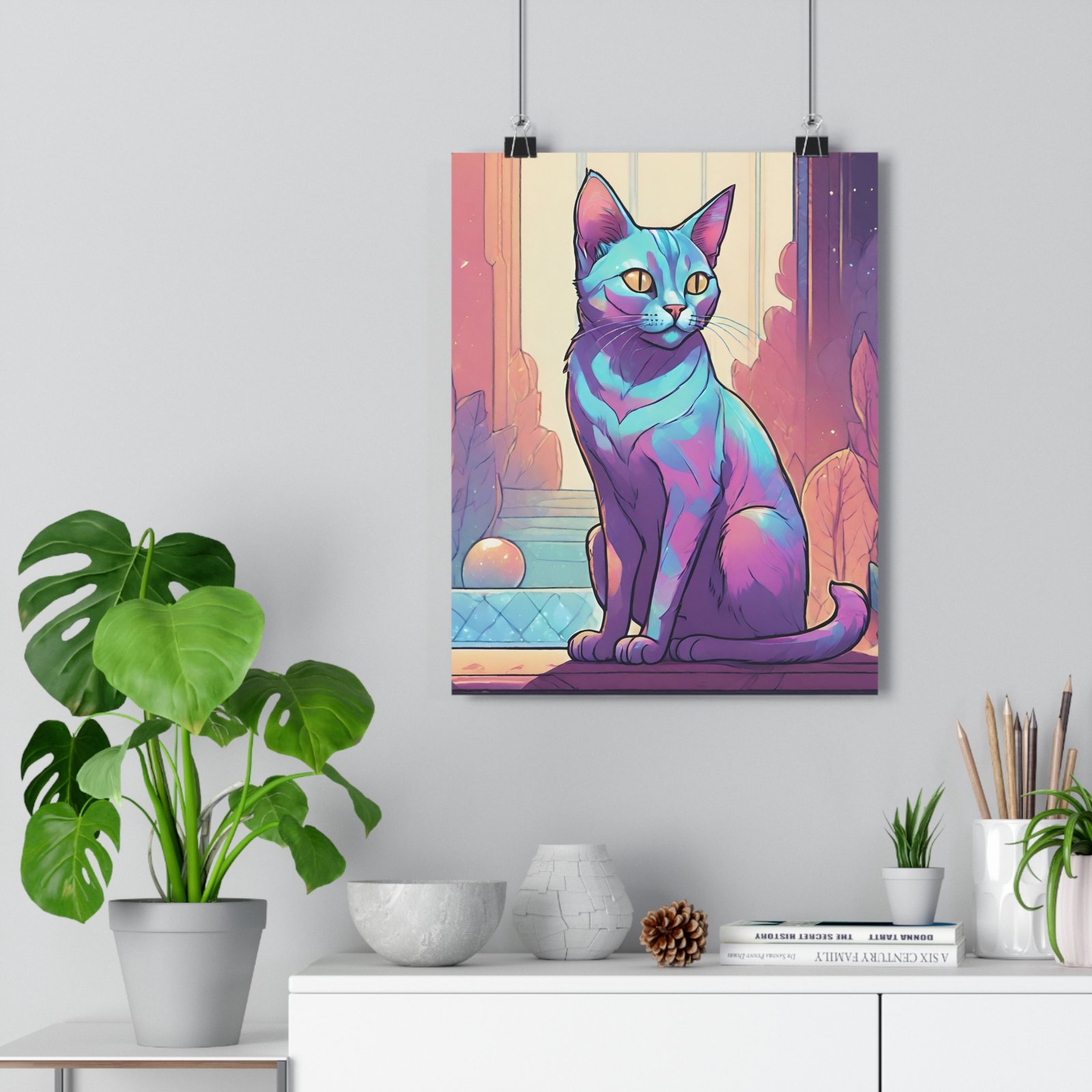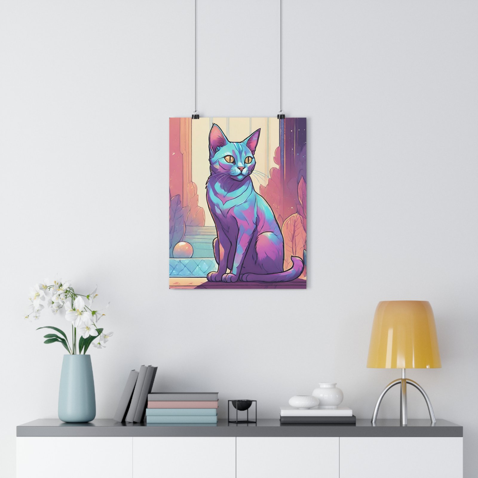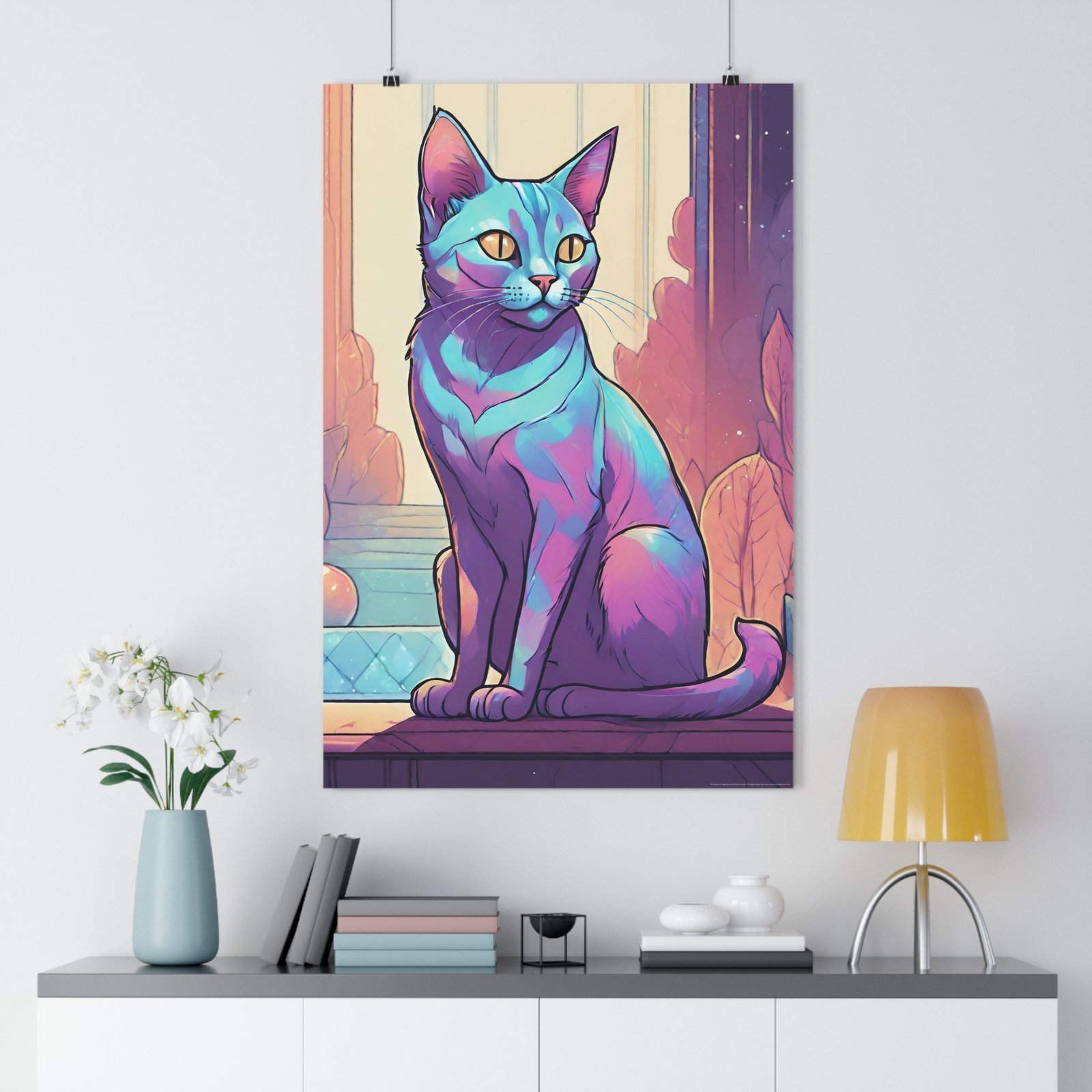 Colorful Wall Décor, Modern Cat Lover Gift, Unique Home Decoration, Cat-Themed Room Art. Introducing our vibrant Giclée Art Print, designed to add a splash of color and personality to any space. This art piece features a stunning feline portrait that radiates charm and warmth, making it perfect for cat lovers and art enthusiasts alike. Whether you’re looking to elevate your living room, bedroom, or workspace, this print will infuse your environment with a whimsical yet serene vibe. It’s an ideal gift for pet owners, art admirers, and creative spirits, making it suitable for occasions like housewarmings, birthdays, or just a thoughtful surprise. Celebrate your love for creativity and finish your home decor or office space with a touch of artistic flair this holiday season!