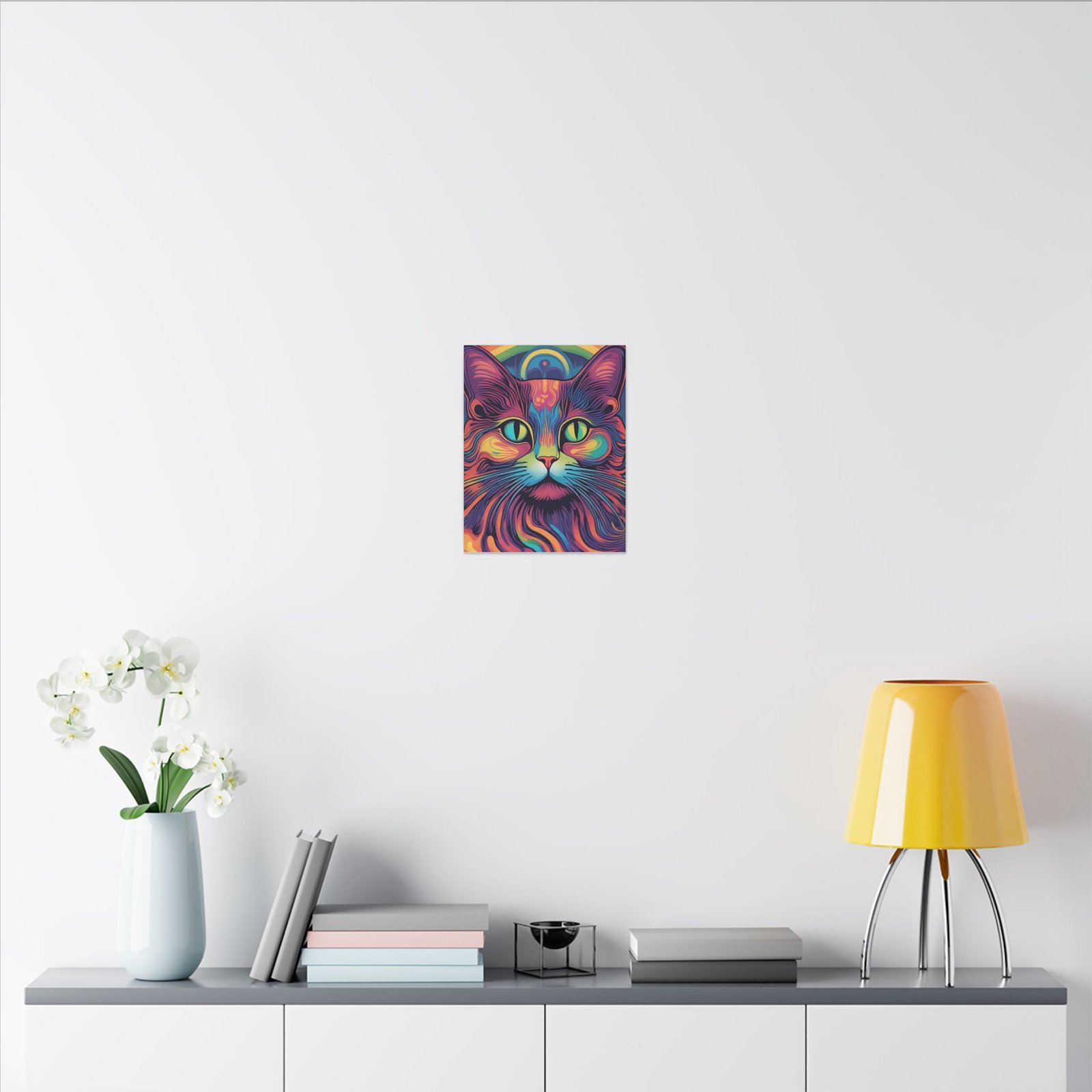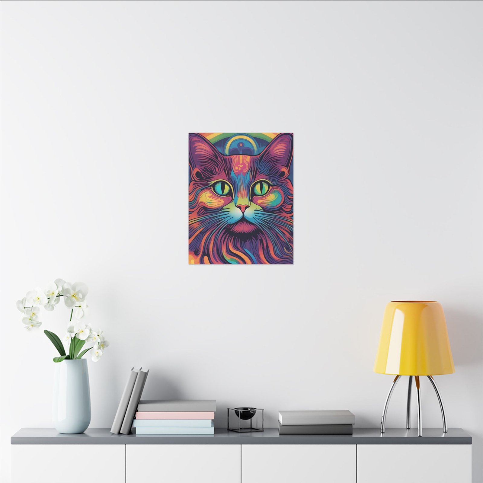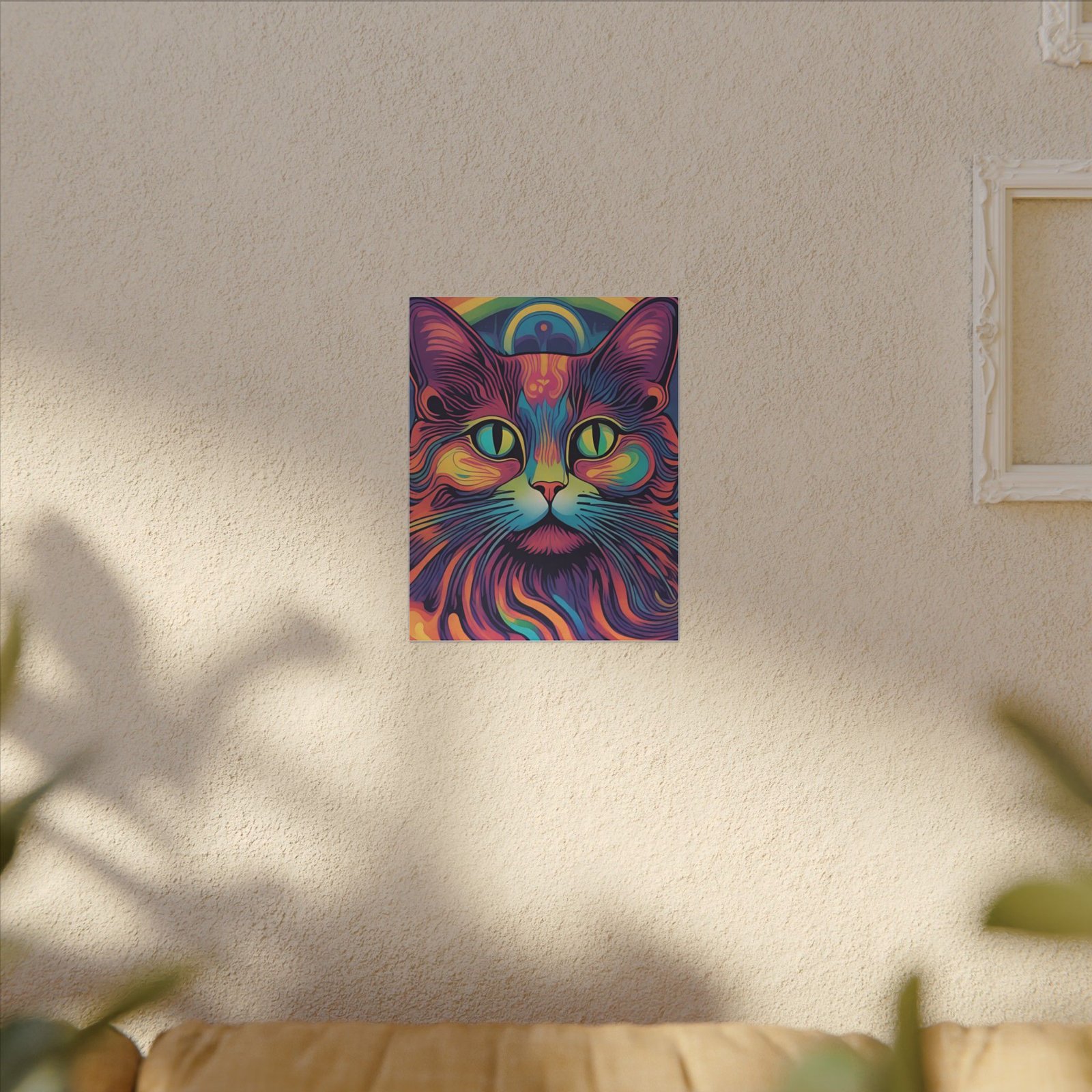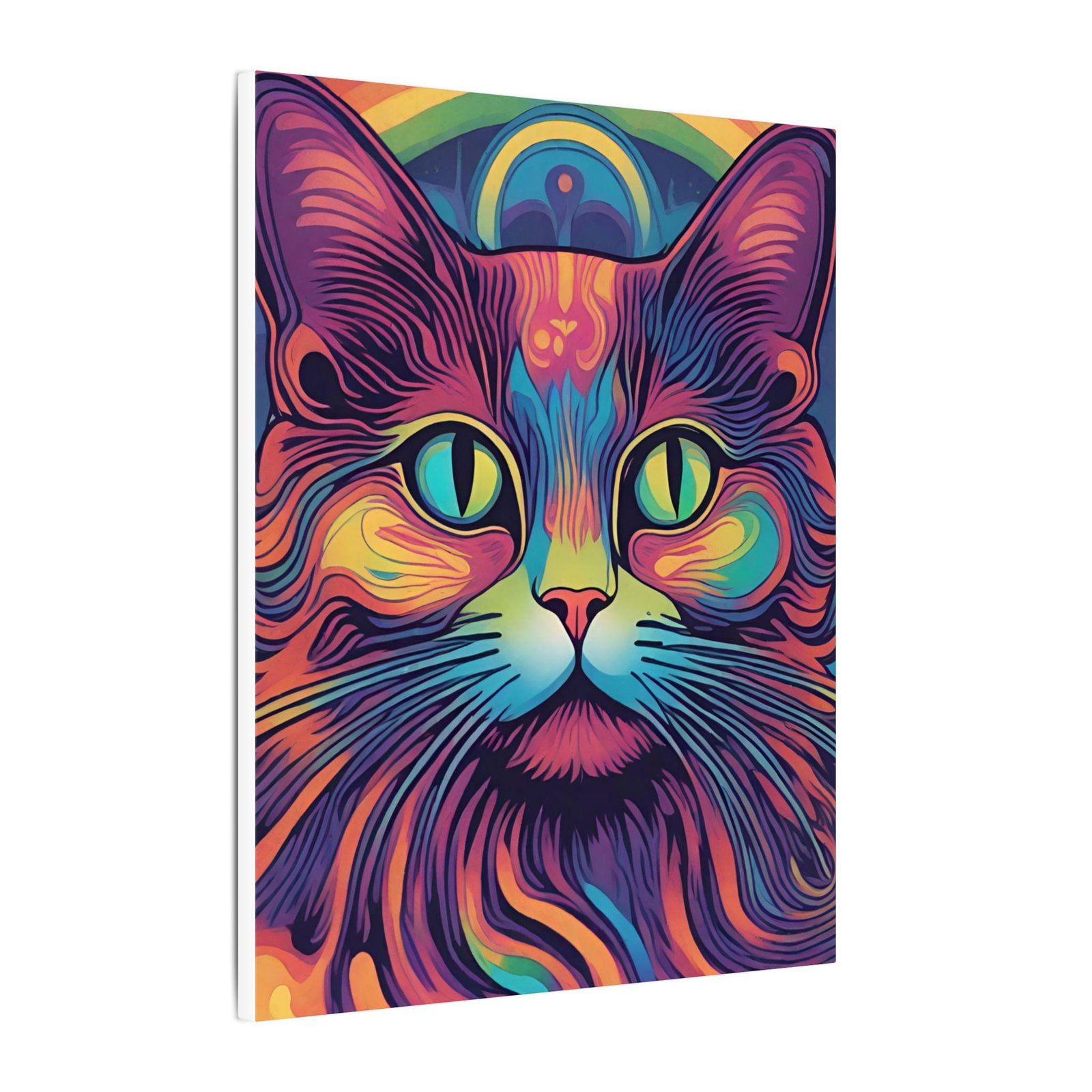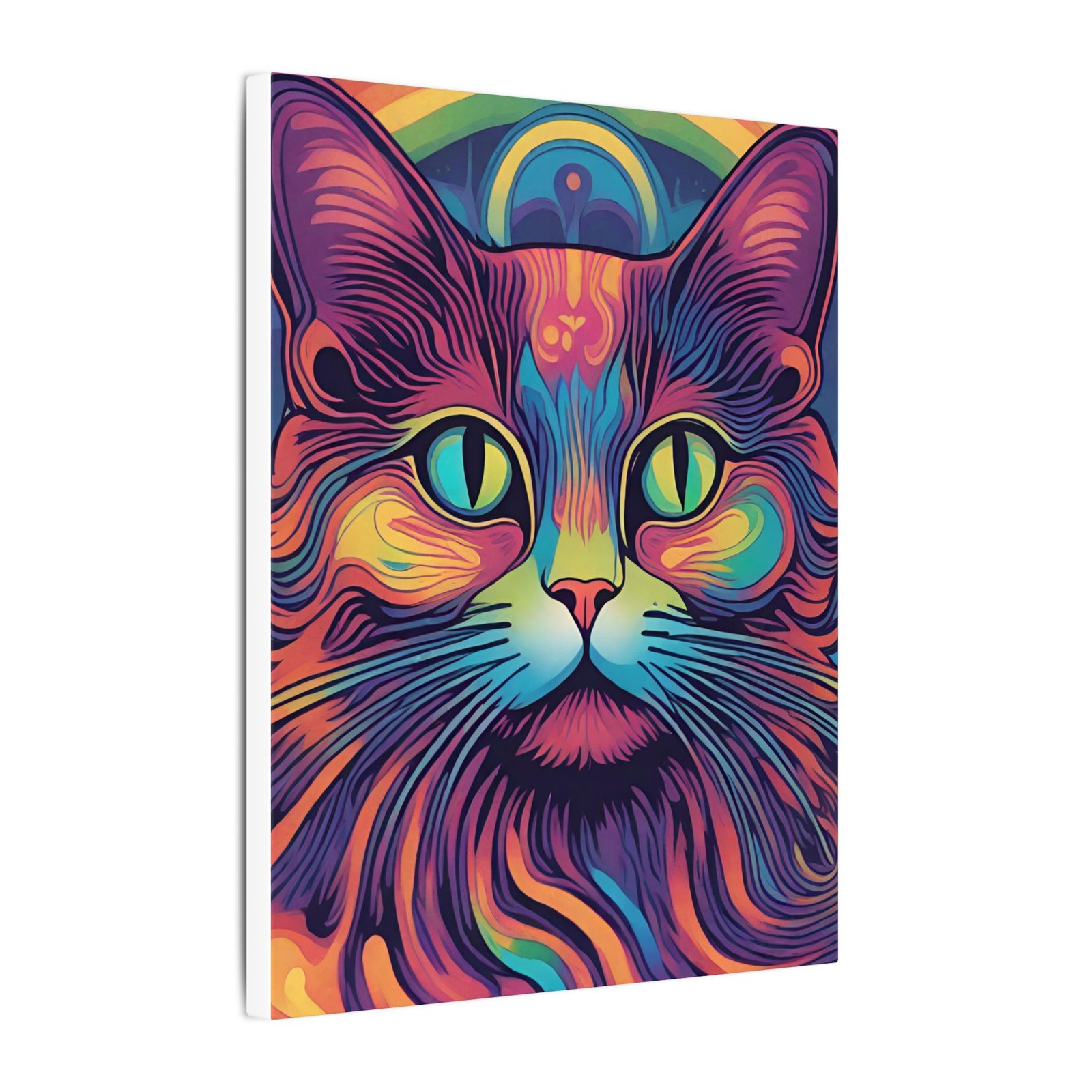 Embrace the psychedelic vibes with this unique Psychedelic Cat Matte Canvas. Perfect for cat lovers and those who enjoy colorful and whimsical artwork. This canvas print will add a pop of personality to any living space, making it a great conversation starter. Ideal for gifting during birthdays, holidays, or housewarmings.