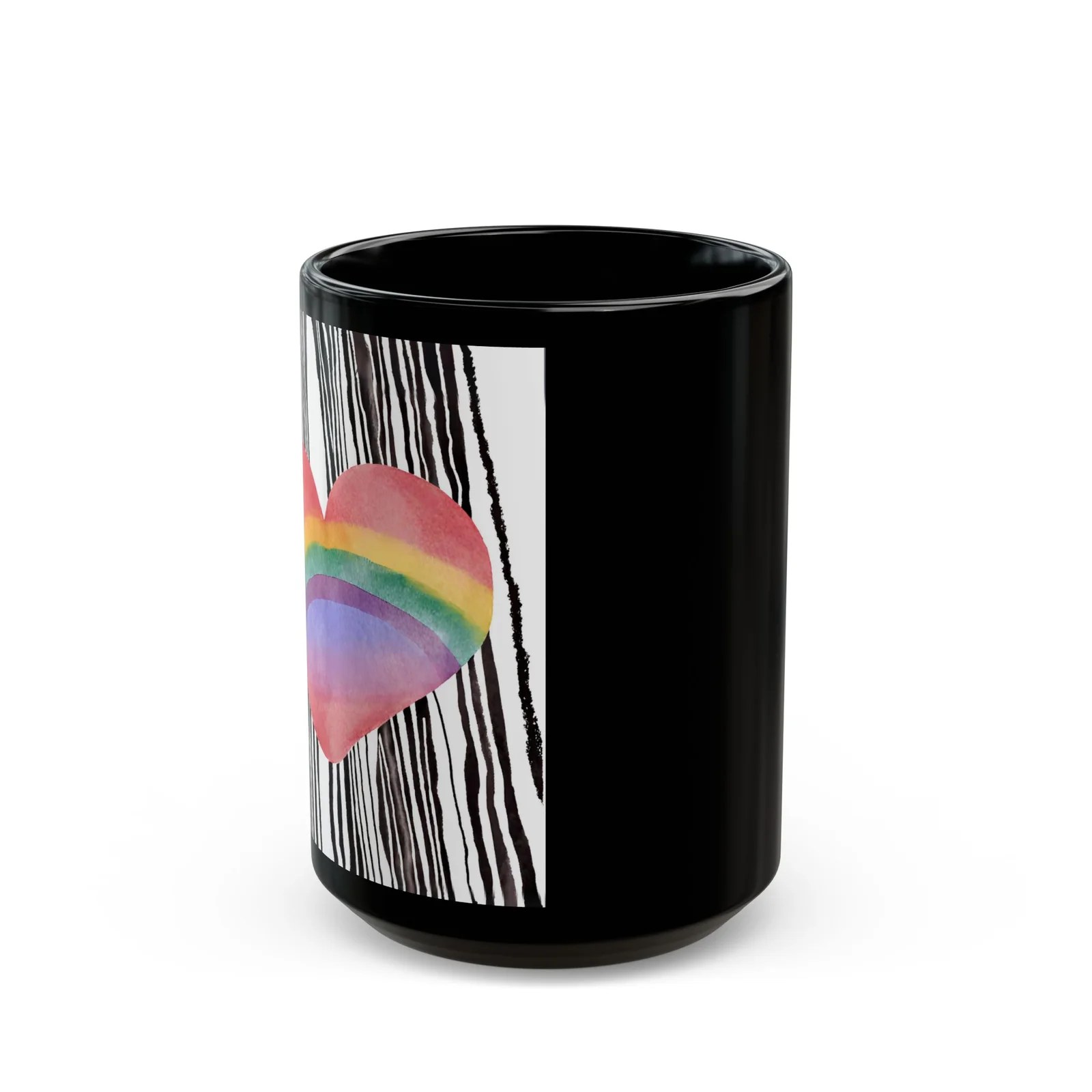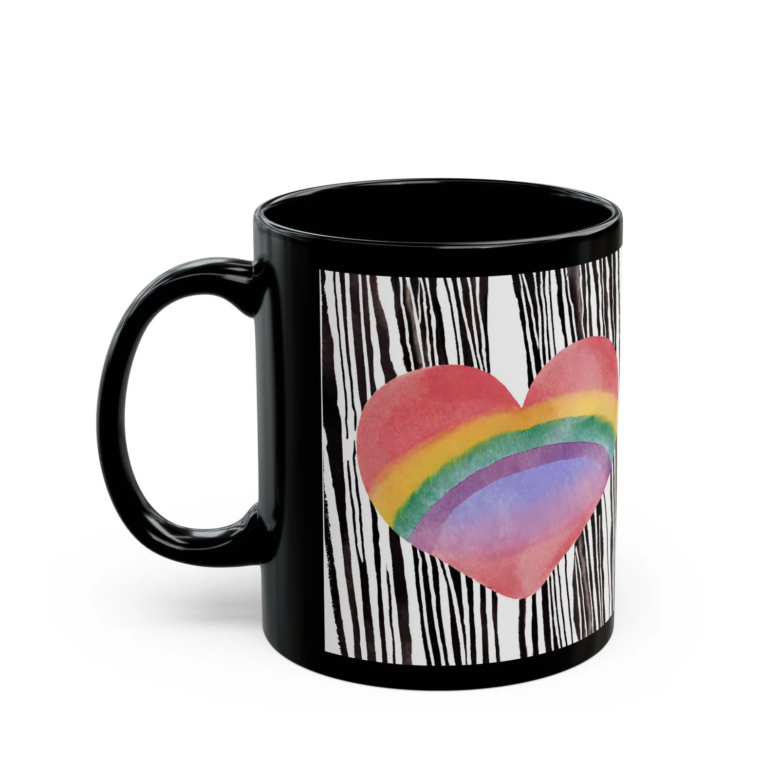 Rainbow Heart Mug. Warm your soul with a nice cuppa out of this black ceramic mug. Customize with cool designs, photos, or logos to make that “aaahhh!” moment even better. It’s BPA and lead-free, microwave and dishwasher-safe, and made of black durable ceramic and available in 11-ounce and 15-ounce sizes. The high-quality sublimation printing makes this black ceramic mug the perfect gift for your true coffee, tea, or hot chocolate lover.