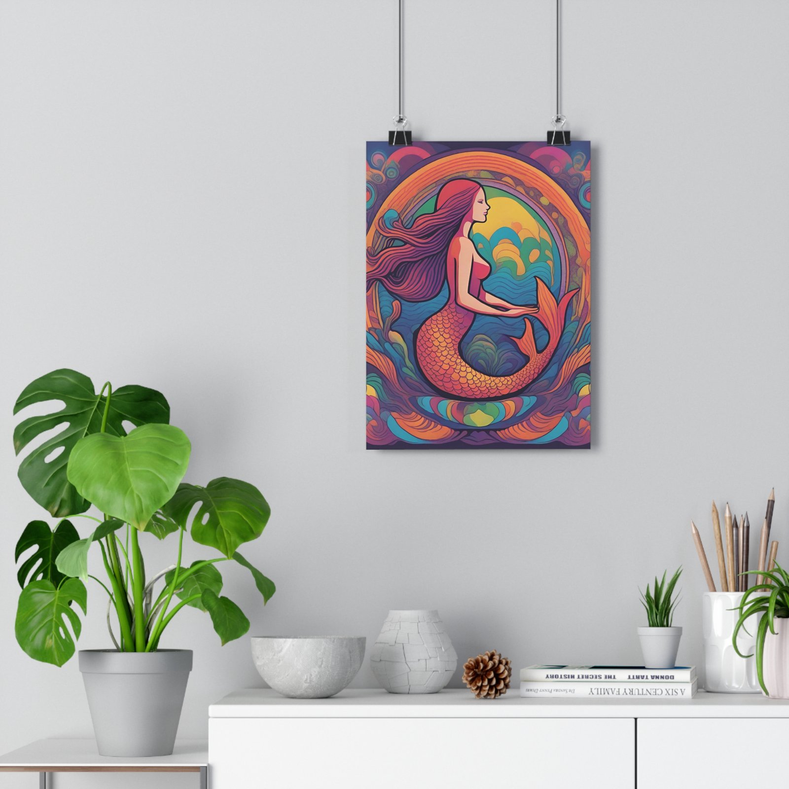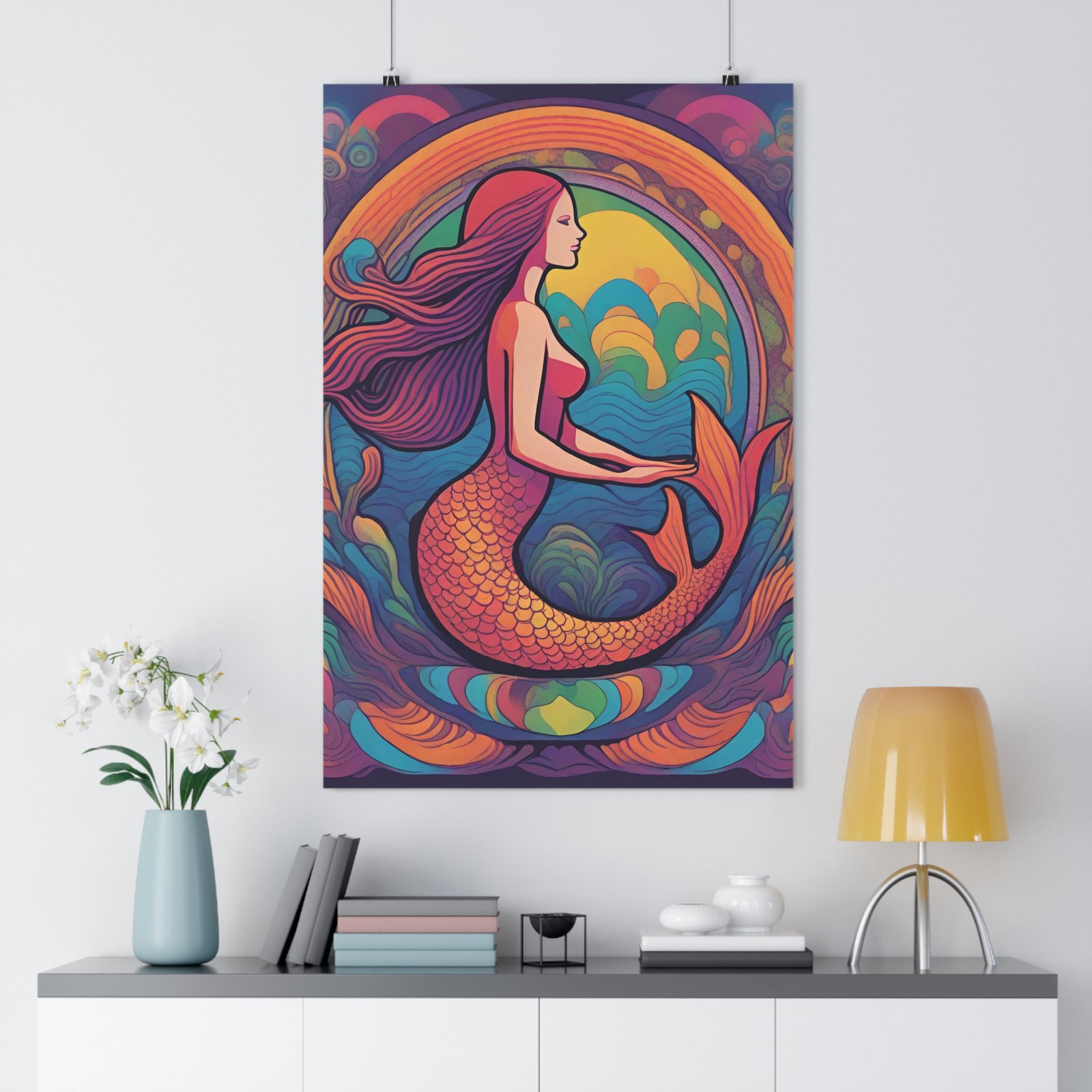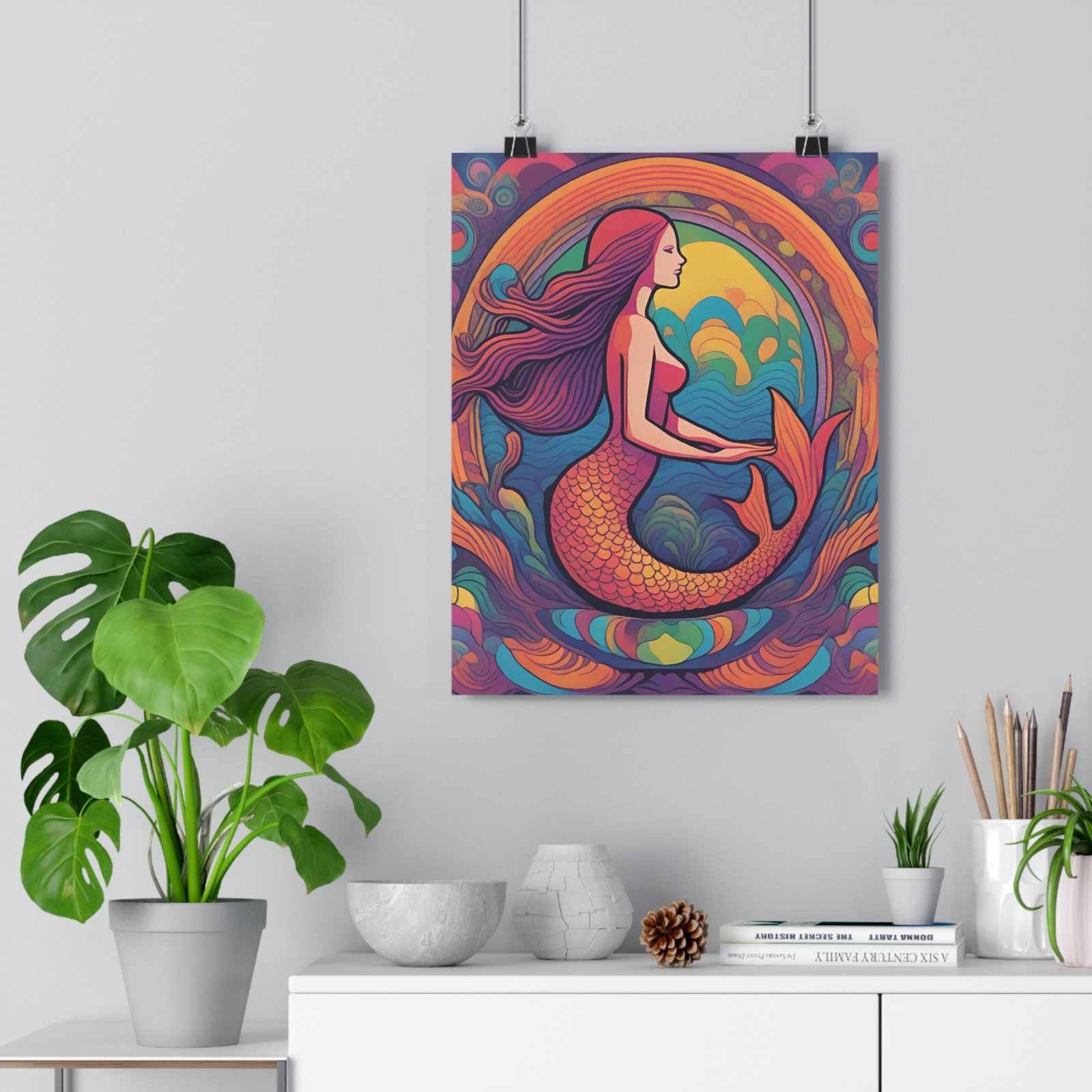 Colorful Ocean Wall Art, Bohemian Home Decor, Mermaid Gift, Coastal Living, Nautical Decoration. Transform your living space with this stunning Giclée Art Print that captures captivating marine mythology and vibrant colors. This print brings an enchanting atmosphere to any room, evoking a sense of wonder and creativity. Perfect for art lovers and collectors, it adds an artistic touch to your home decor. Ideal for bedrooms, living rooms, or galleries, this artwork is a fantastic gift for birthdays, housewarmings, or art-themed celebrations. Enhance your environment and inspire conversation with this exquisite piece.