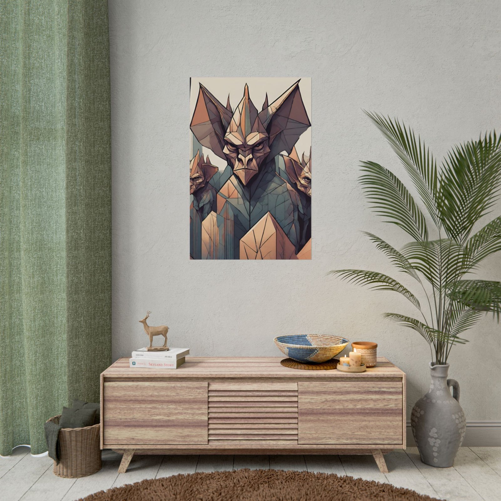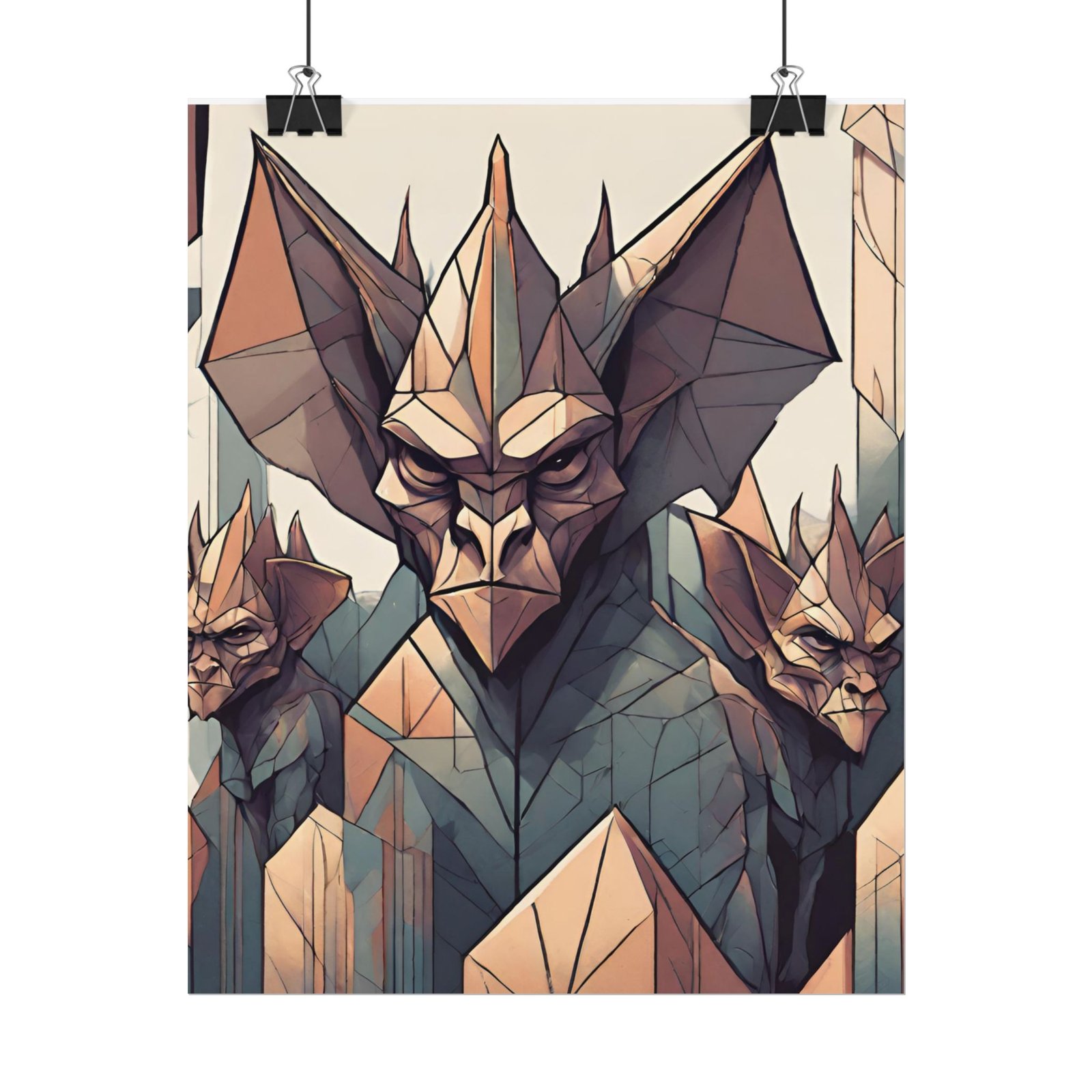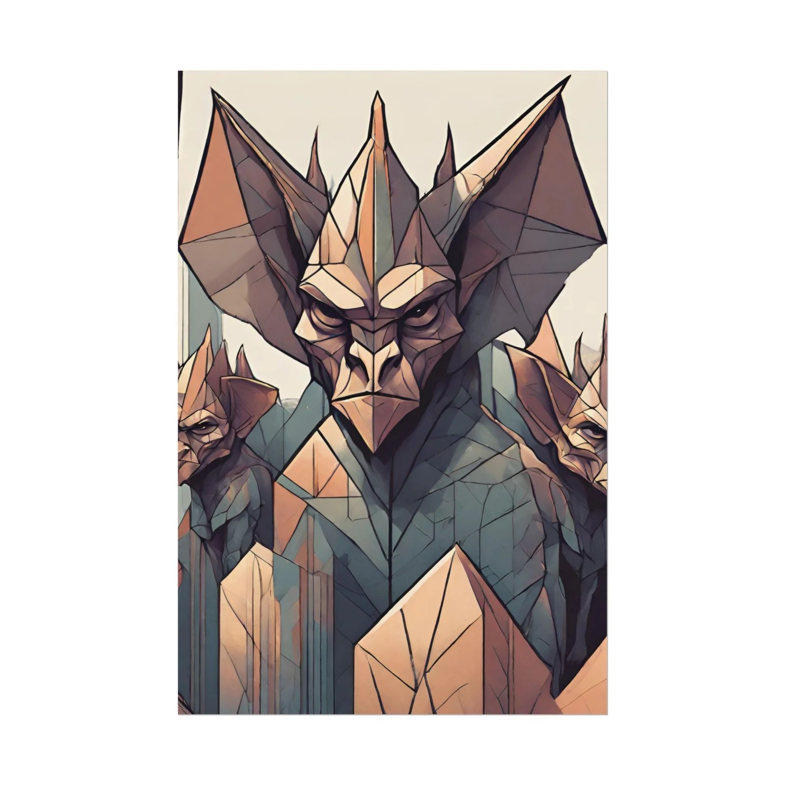 Add a touch of mystery to your space with this Geometrical Gargoyle poster. Perfect for those who love unique and edgy decor, this poster can be a great conversation starter. Ideal for gothic and fantasy enthusiasts, this poster is perfect for Halloween, conventions, and themed parties.