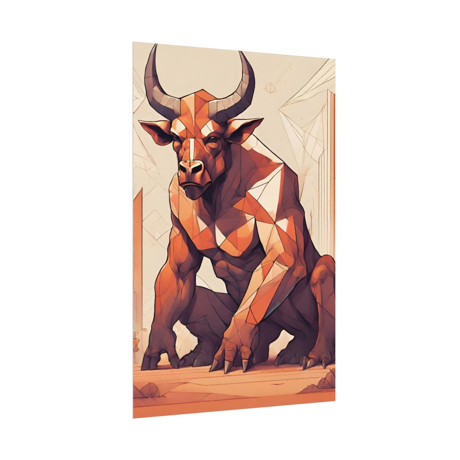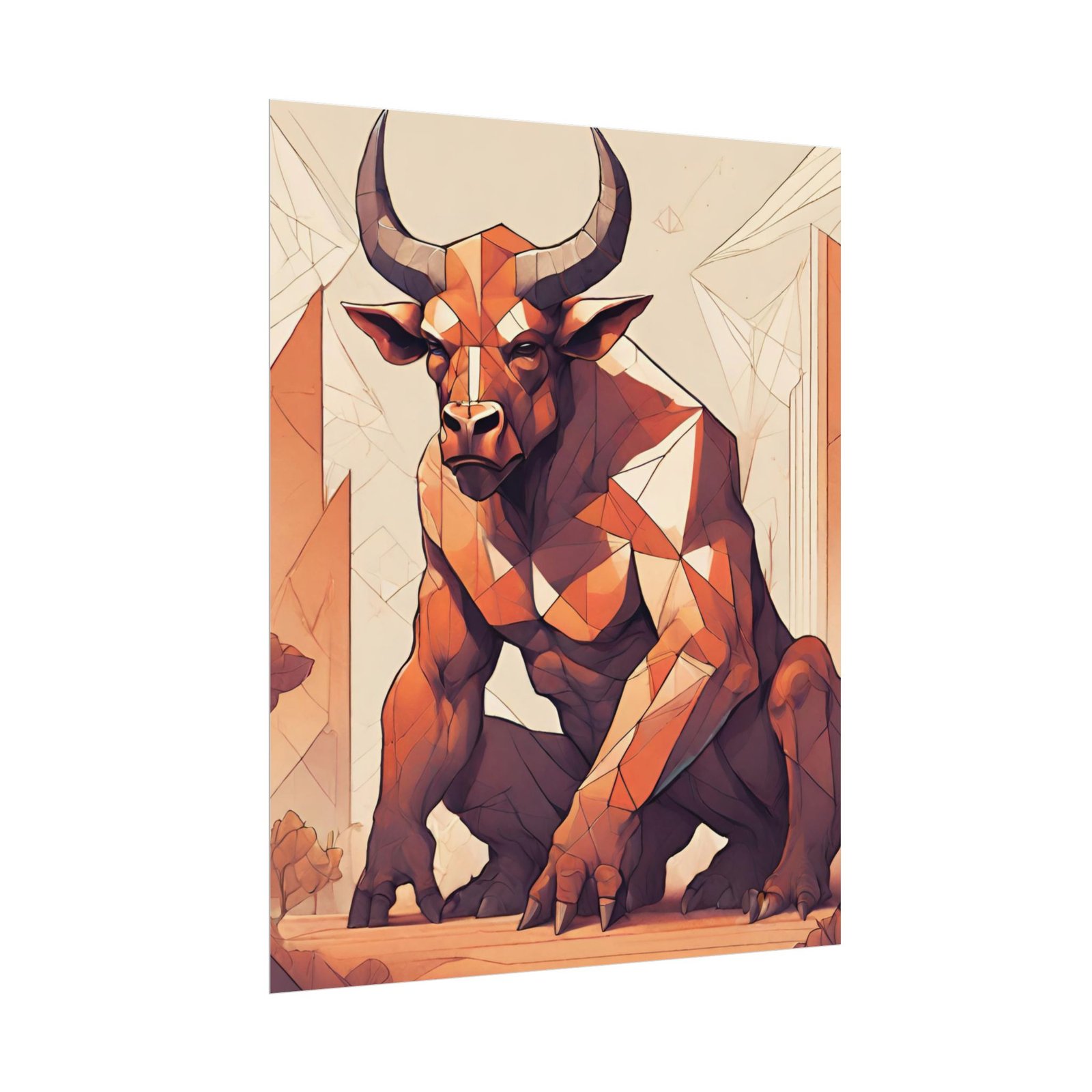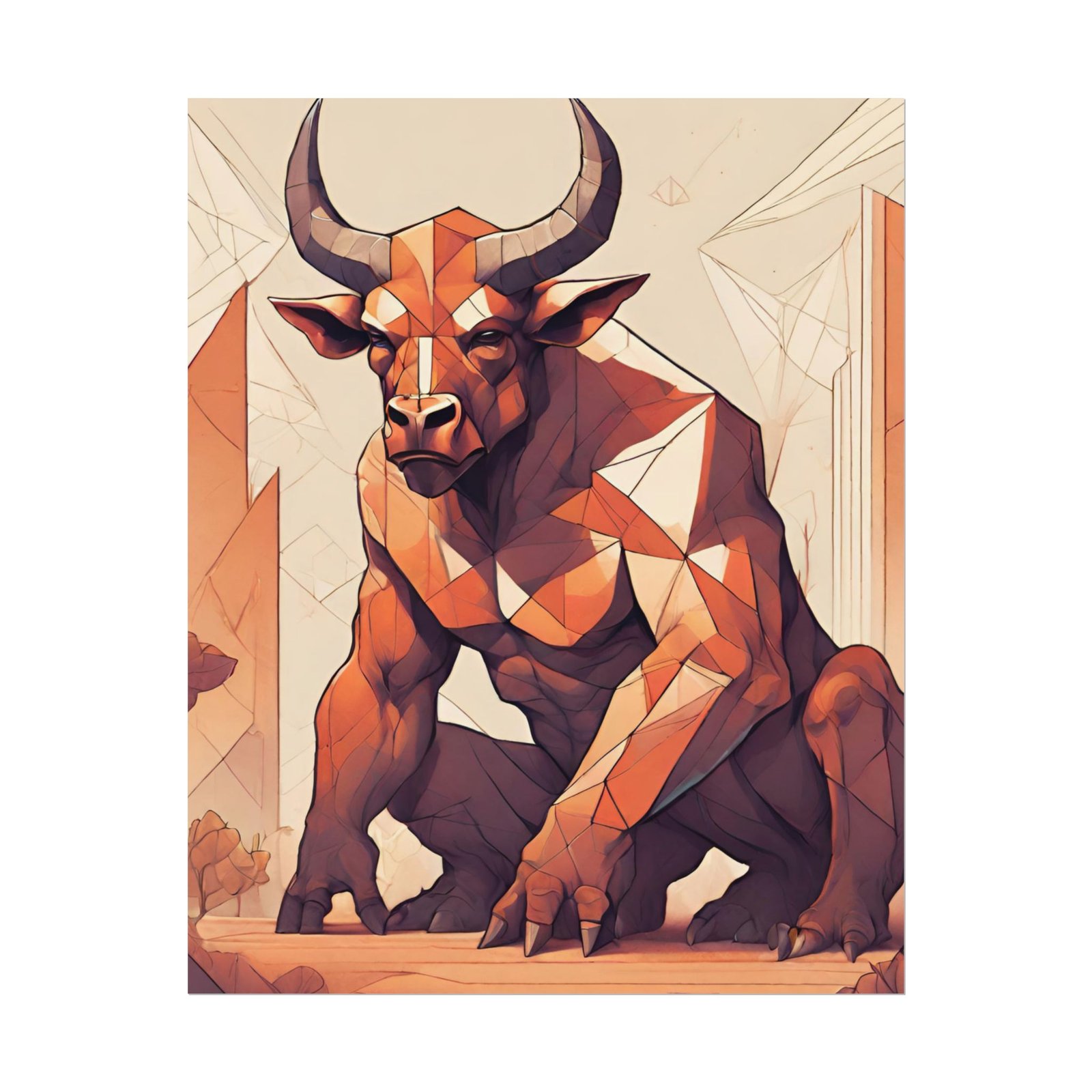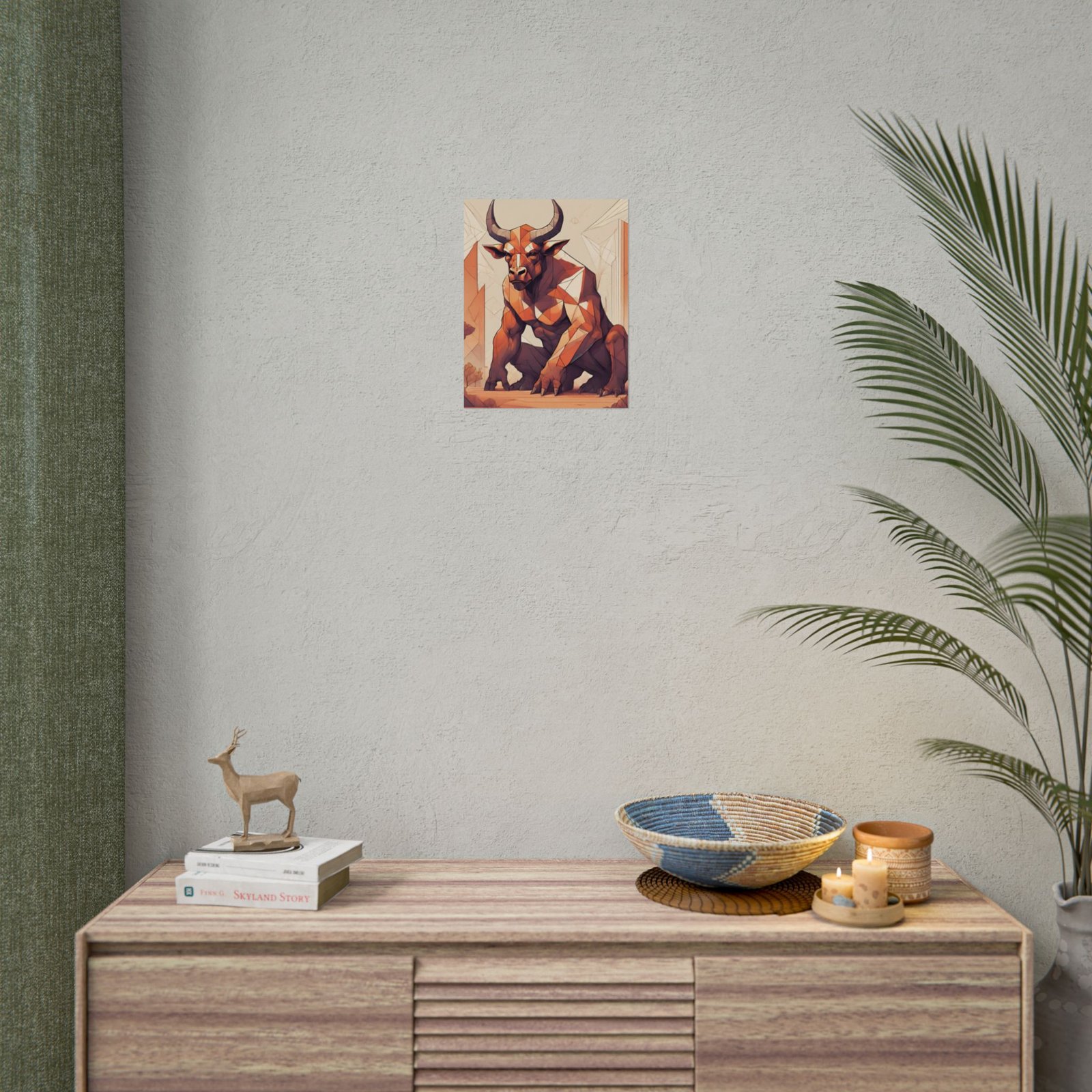 This geometrical Minotur poster brings a unique and edgy vibe to any room. Perfect for fans of urban or architectural design, this poster can be a conversation starter or a statement piece in your home decor. Ideal for Halloween or Gothic-themed parties, this poster is a must-have for those who love dark aesthetics.