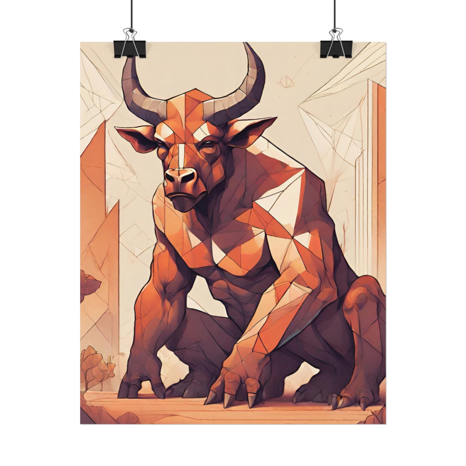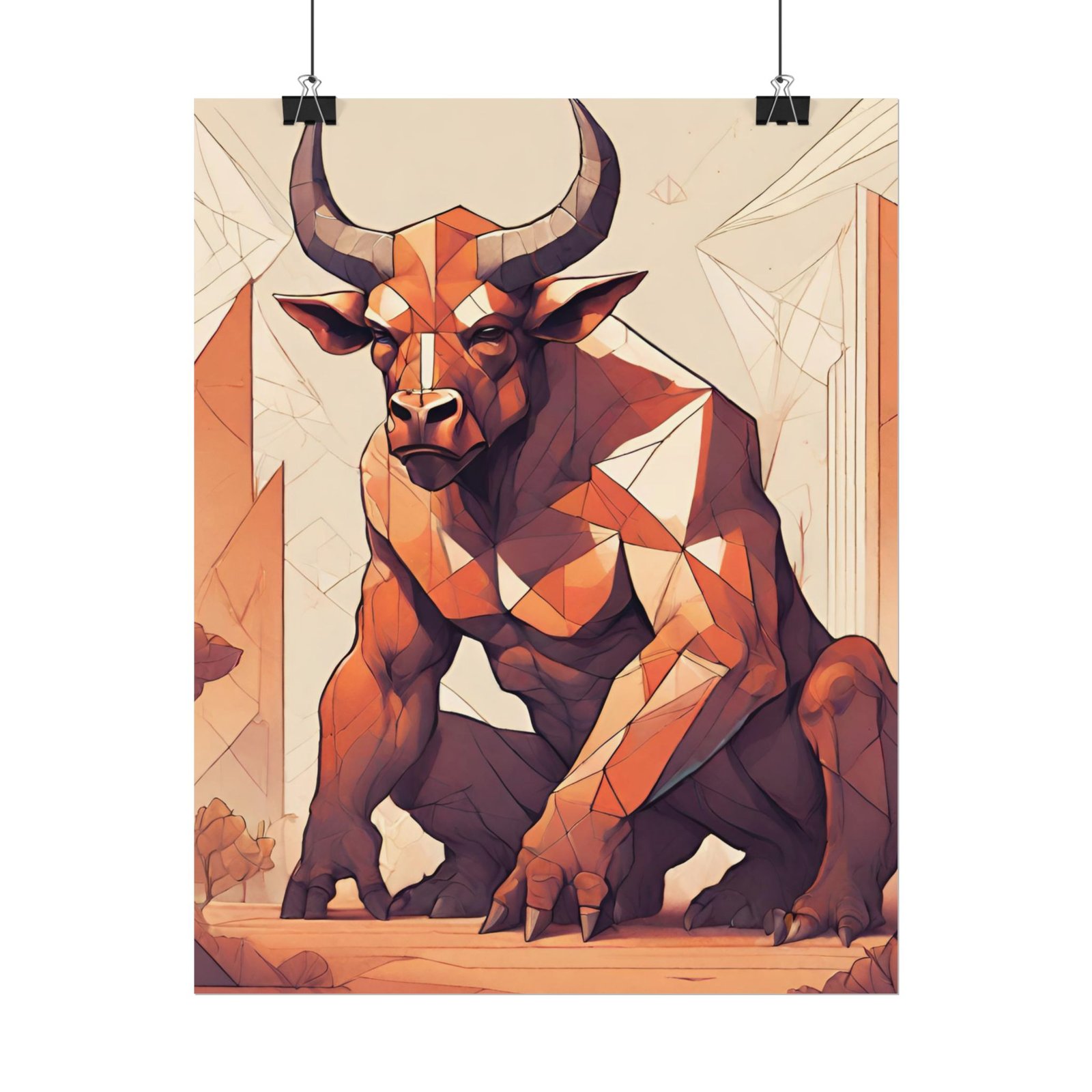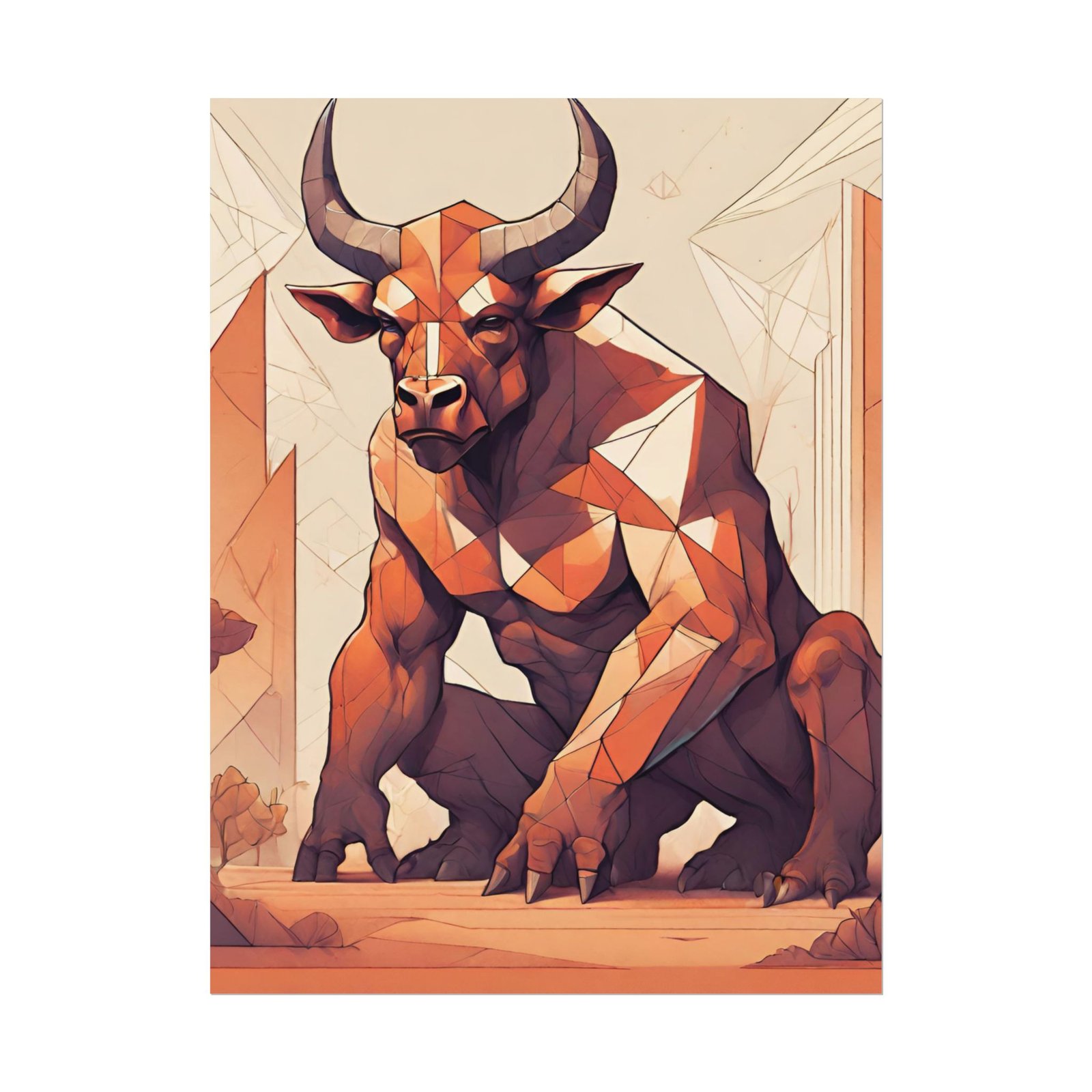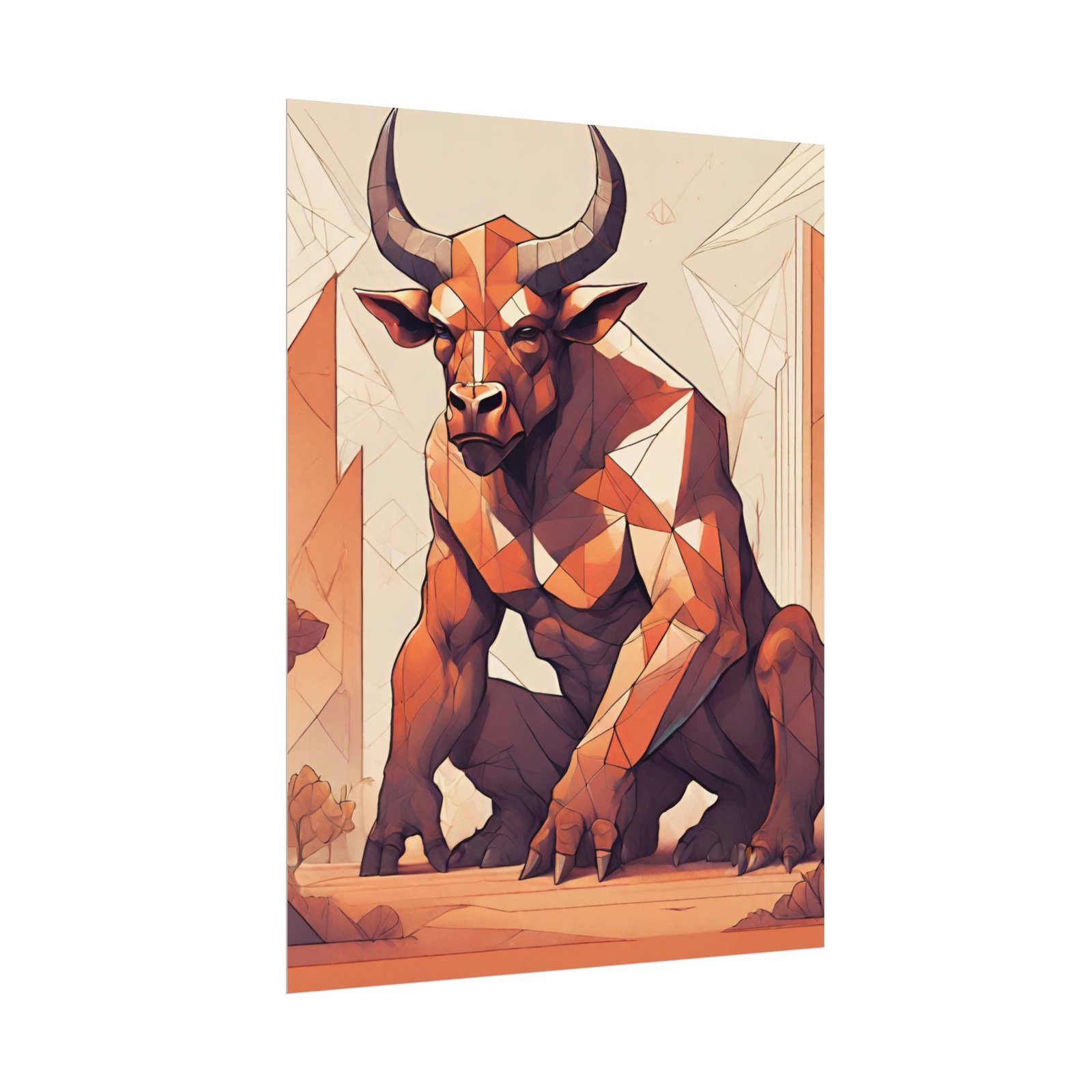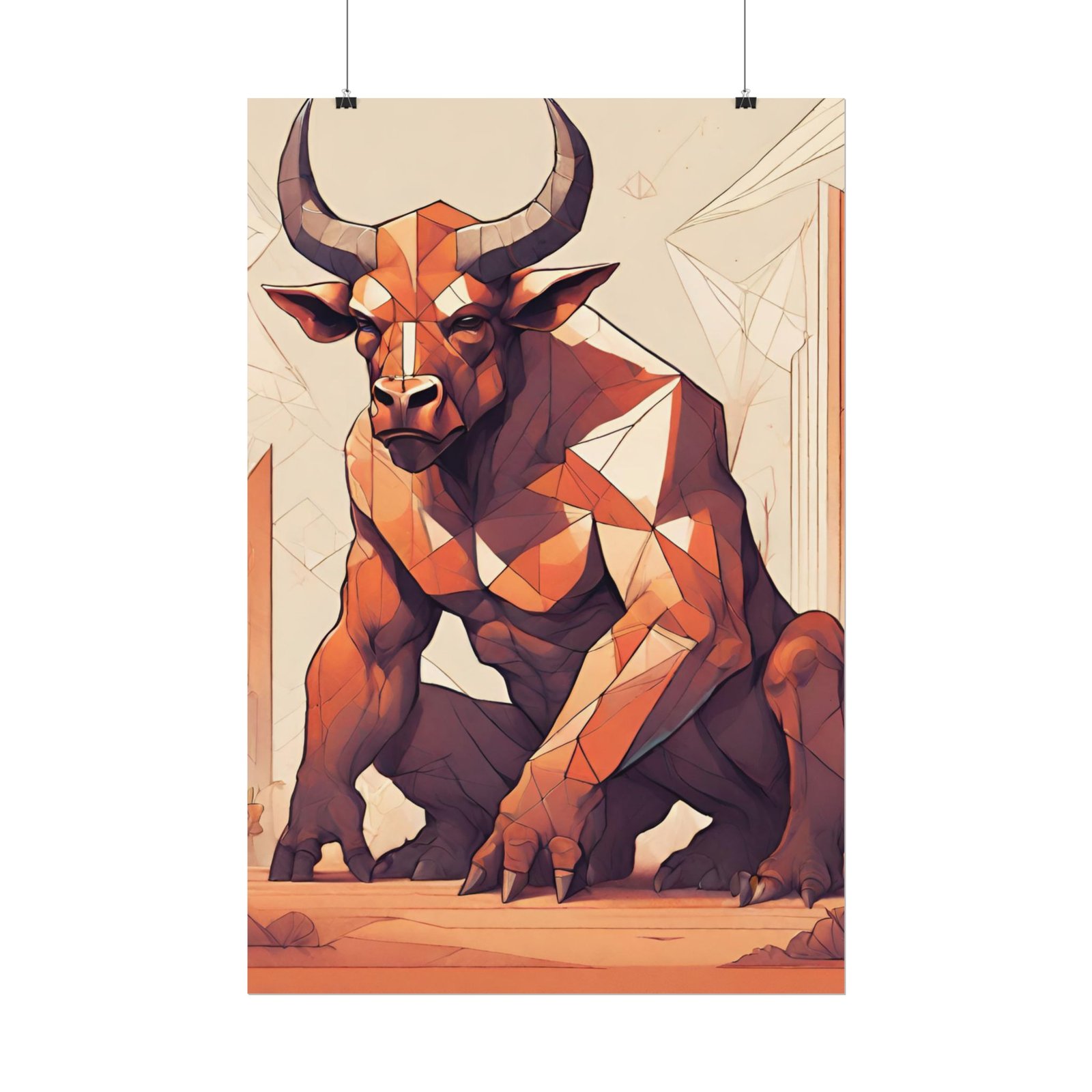 This geometrical Minotur poster brings a unique and edgy vibe to any room. Perfect for fans of urban or architectural design, this poster can be a conversation starter or a statement piece in your home decor. Ideal for Halloween or Gothic-themed parties, this poster is a must-have for those who love dark aesthetics.