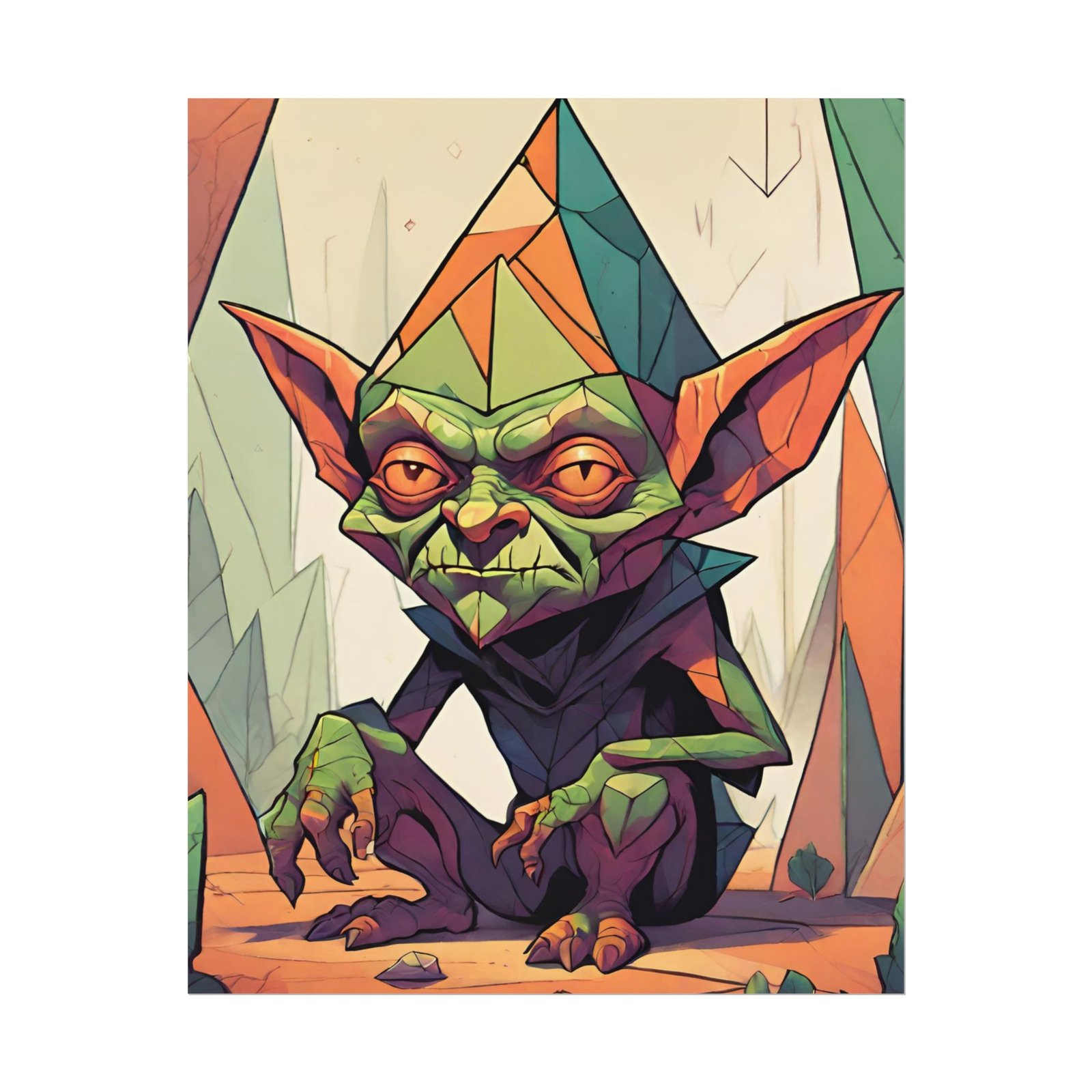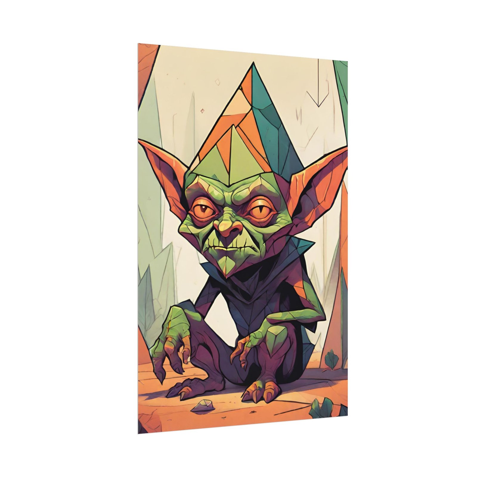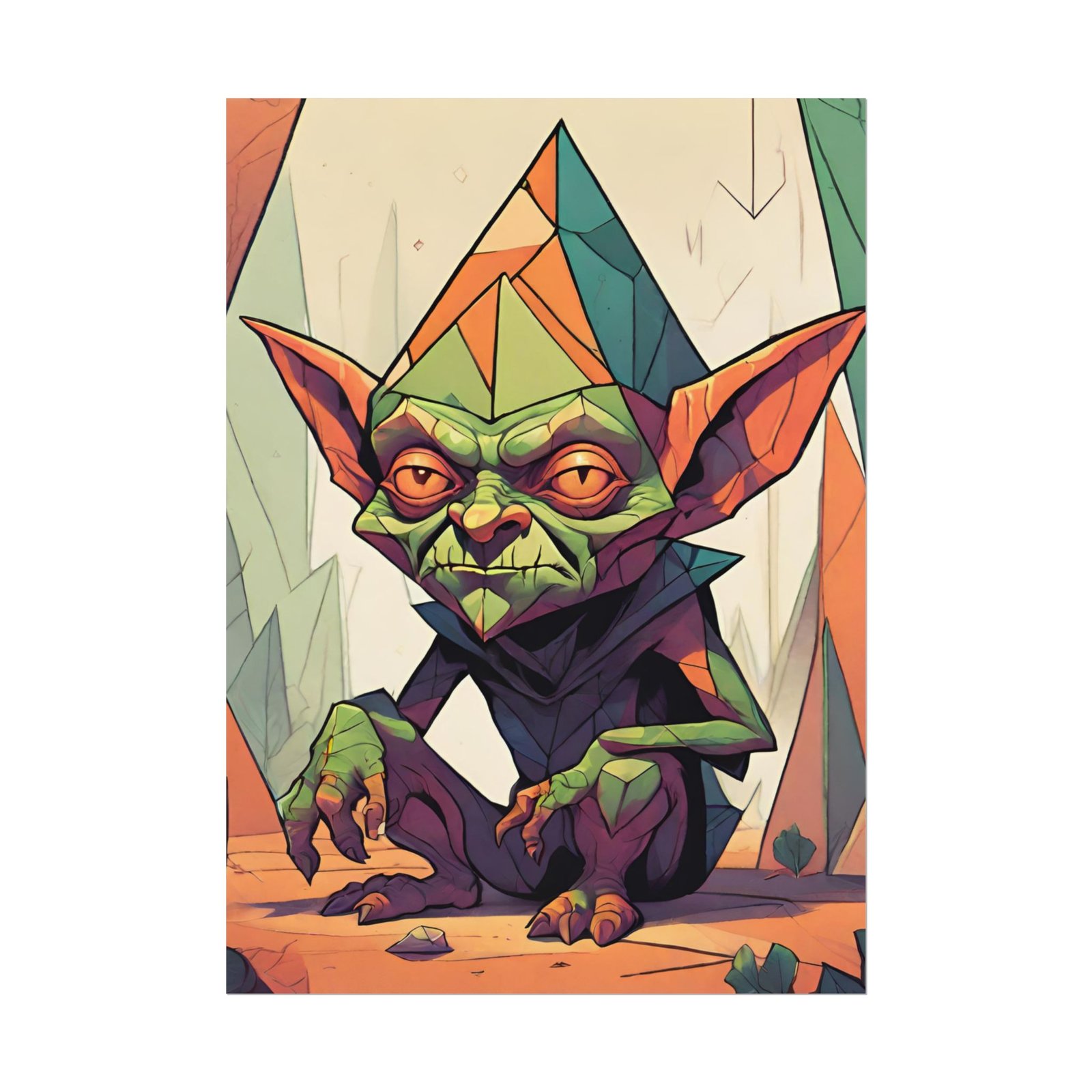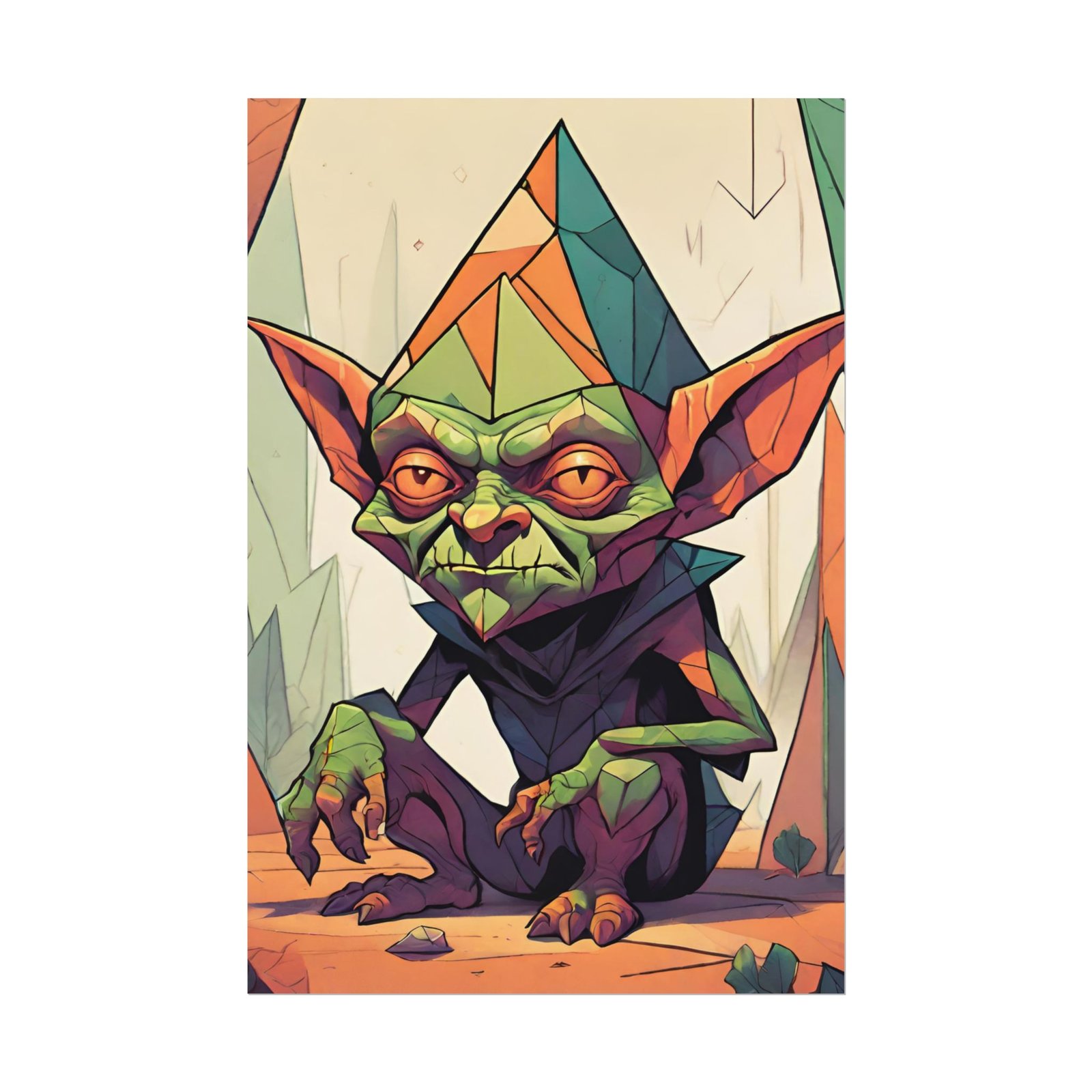 This geometrical Gremlin poster brings a unique and edgy vibe to any room. Perfect for fans of urban or architectural design, this poster can be a conversation starter or a statement piece in your home decor. Ideal for Halloween or Gothic-themed parties, this poster is a must-have for those who love dark aesthetics.