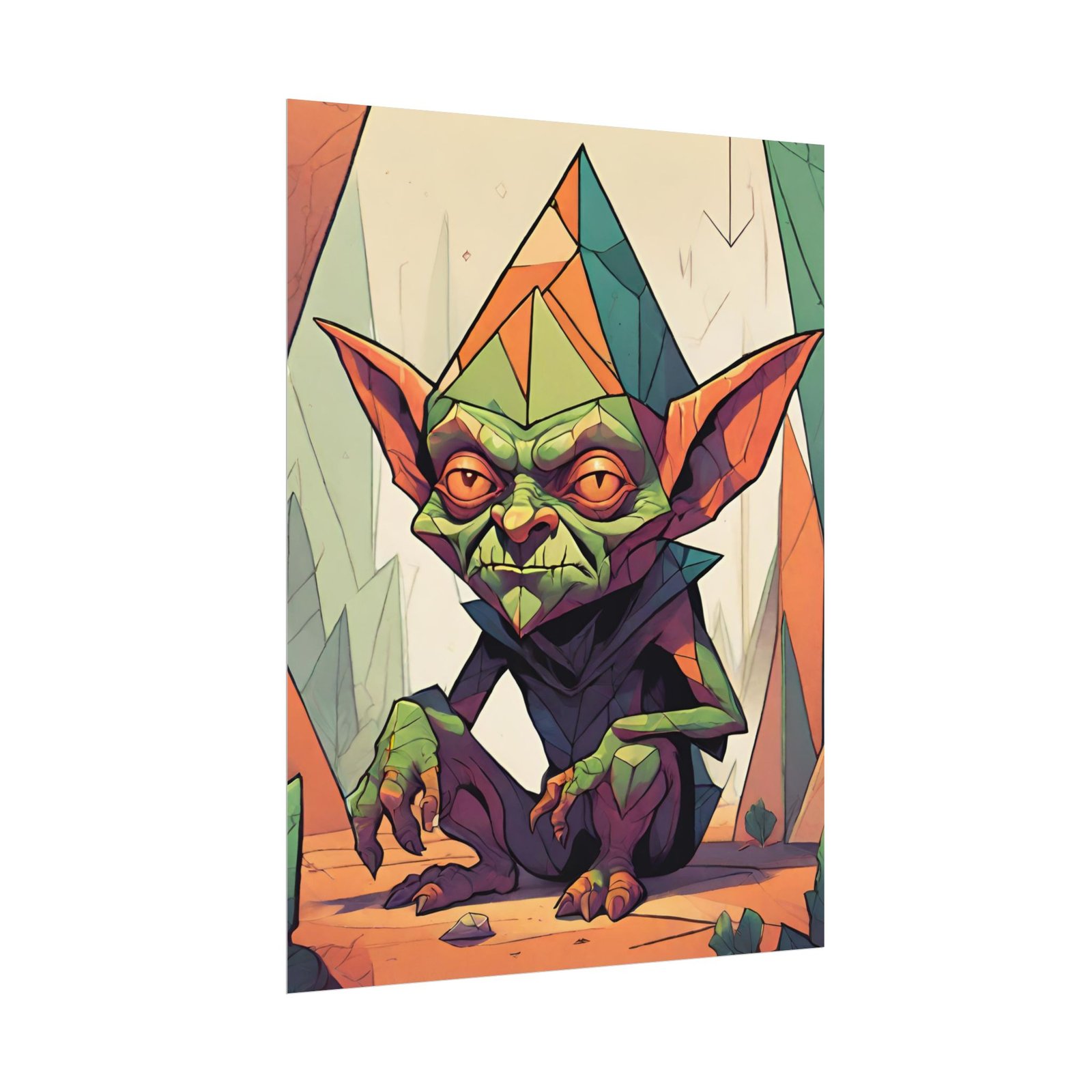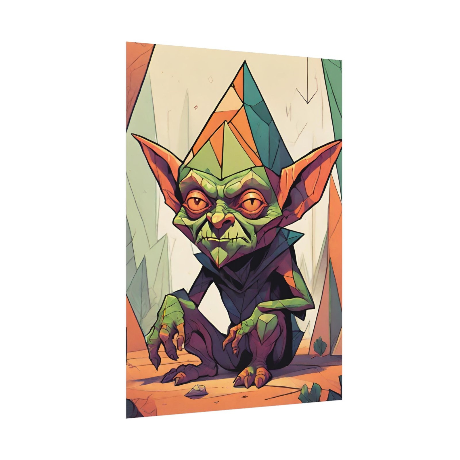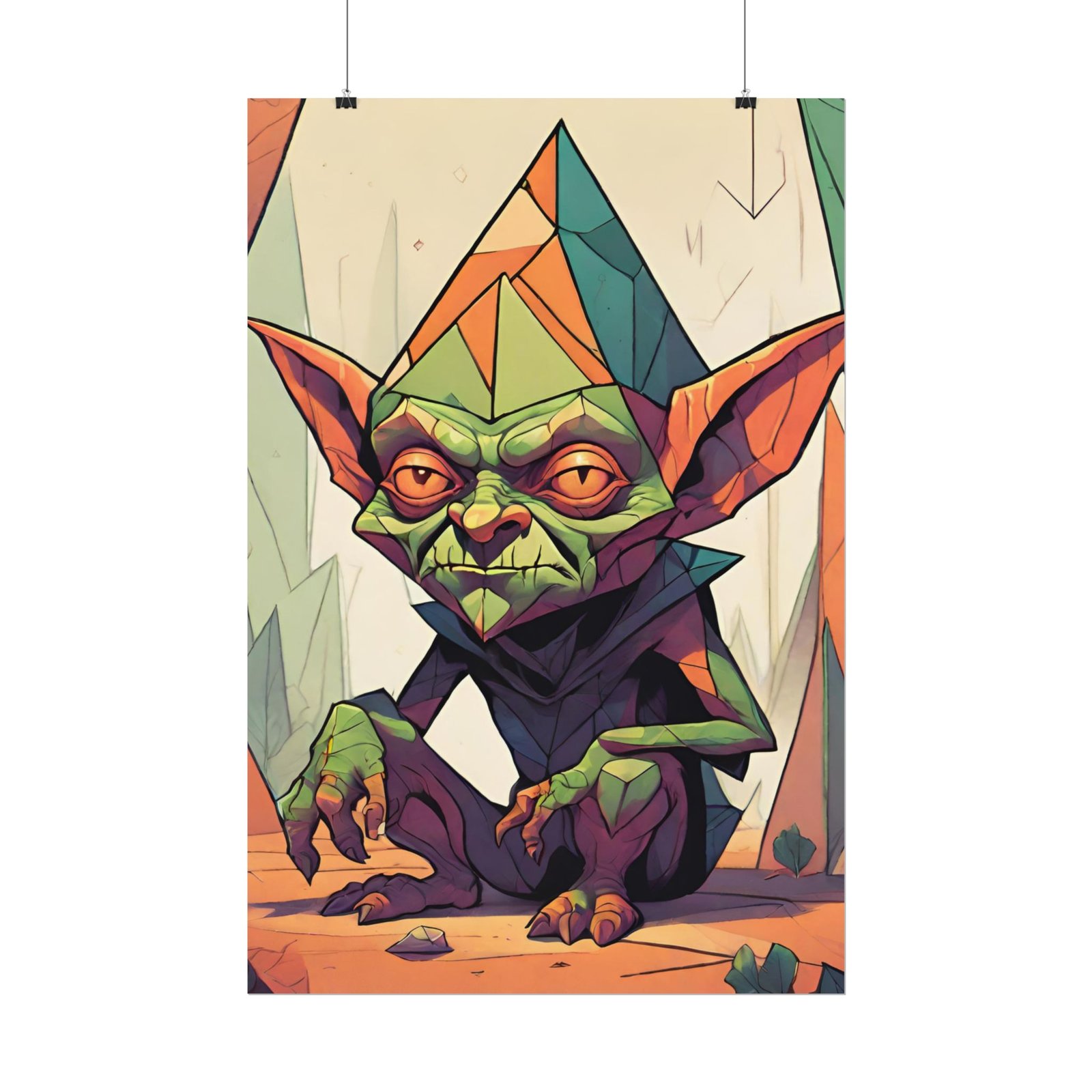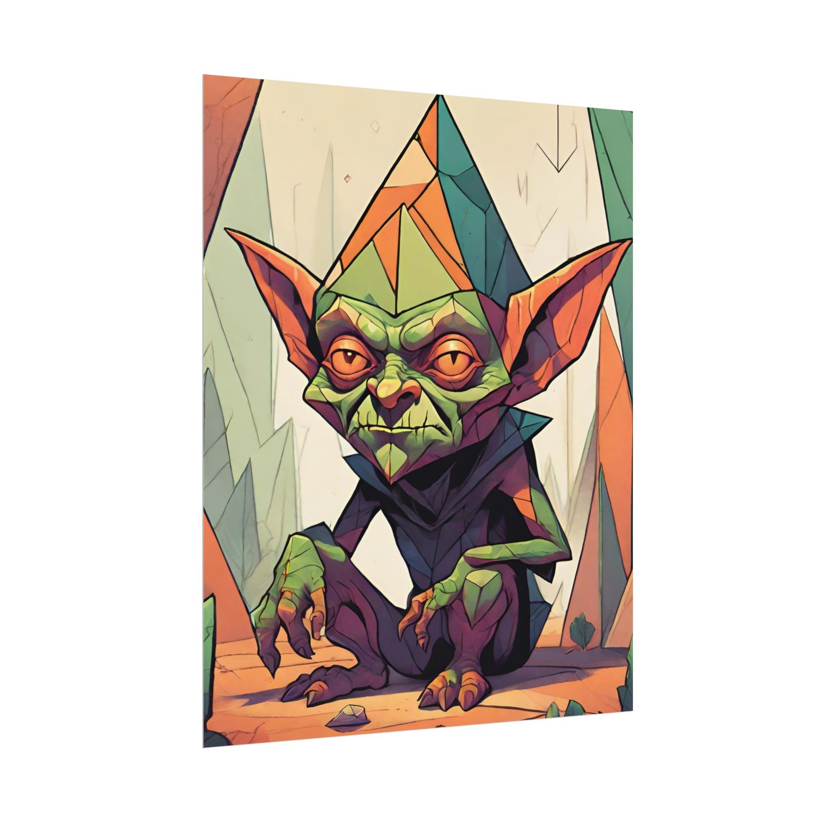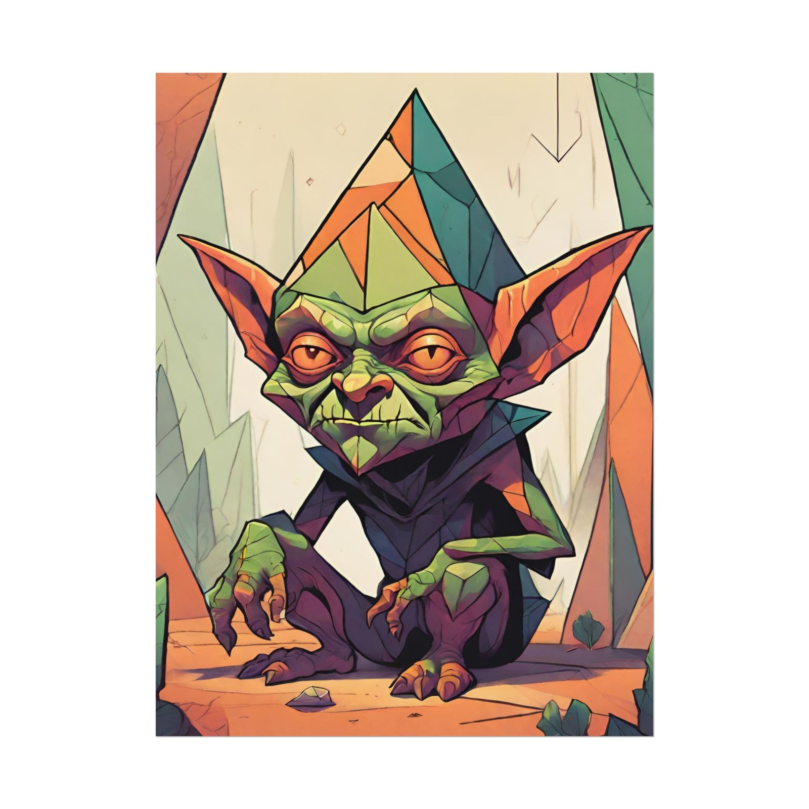 This geometrical Gremlin poster brings a unique and edgy vibe to any room. Perfect for fans of urban or architectural design, this poster can be a conversation starter or a statement piece in your home decor. Ideal for Halloween or Gothic-themed parties, this poster is a must-have for those who love dark aesthetics.