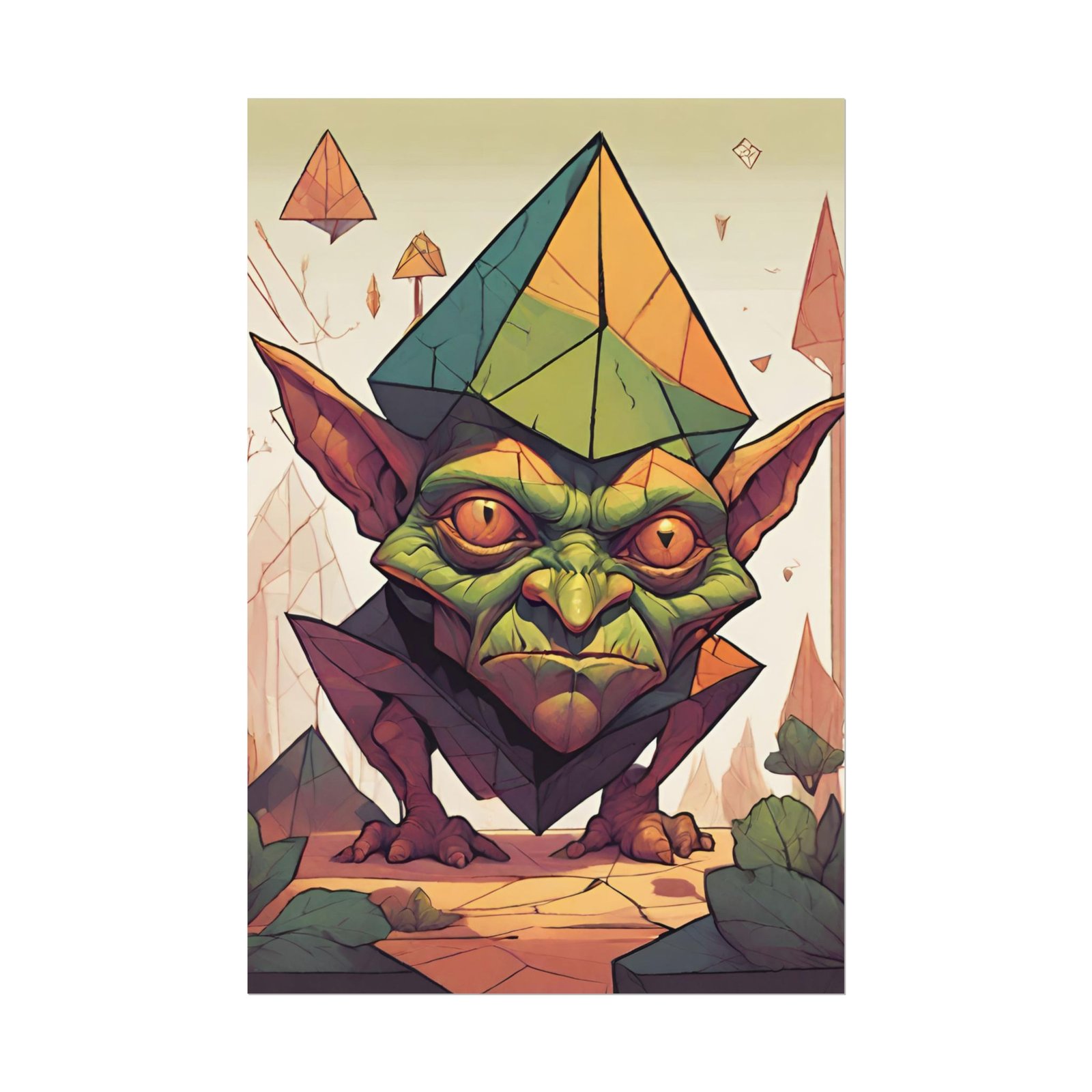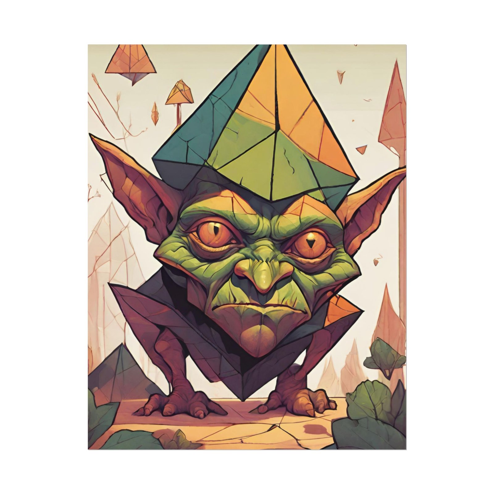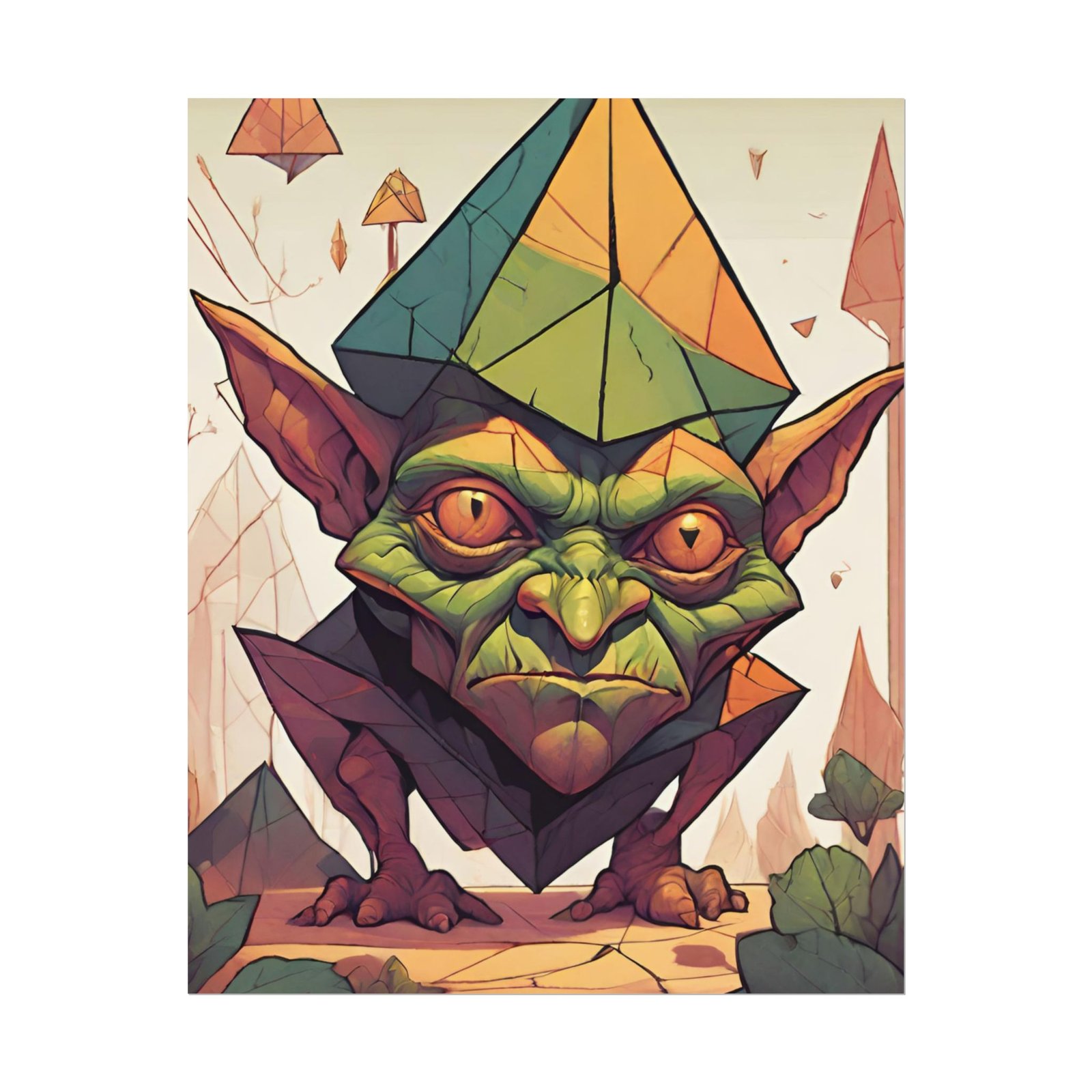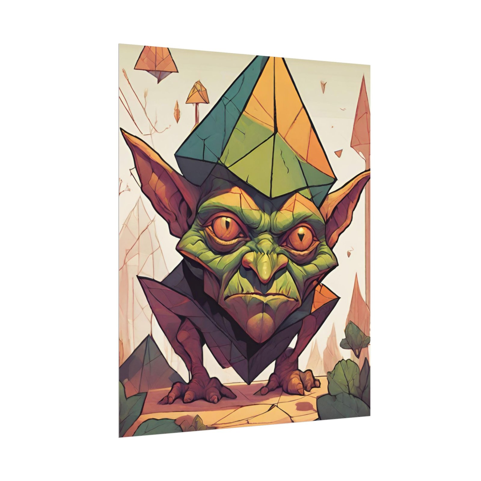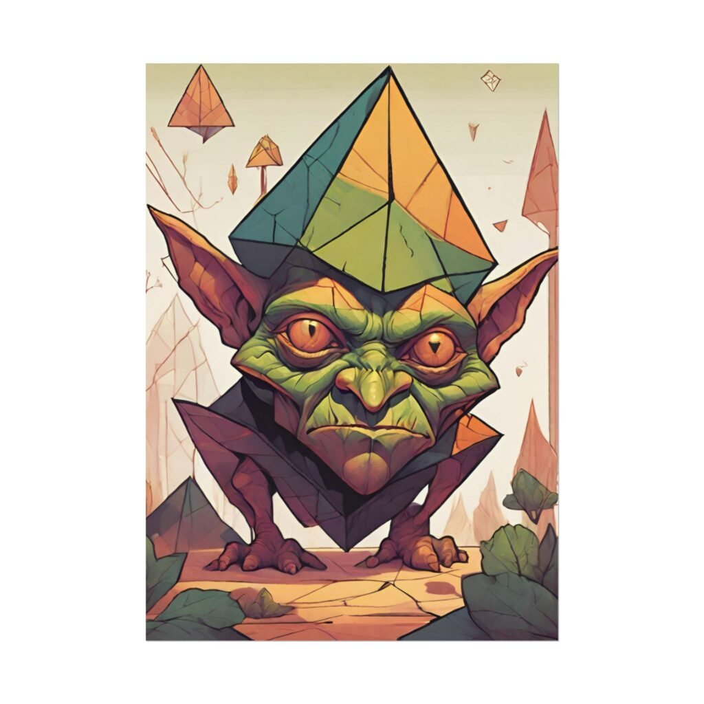This geometrical Gremlin poster brings a unique and edgy vibe to any room. Perfect for fans of urban or architectural design, this poster can be a conversation starter or a statement piece in your home decor. Ideal for Halloween or Gothic-themed parties, this poster is a must-have for those who love dark aesthetics.