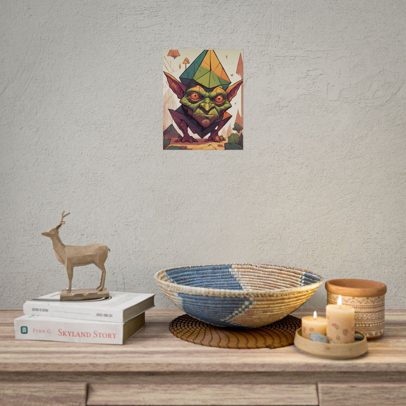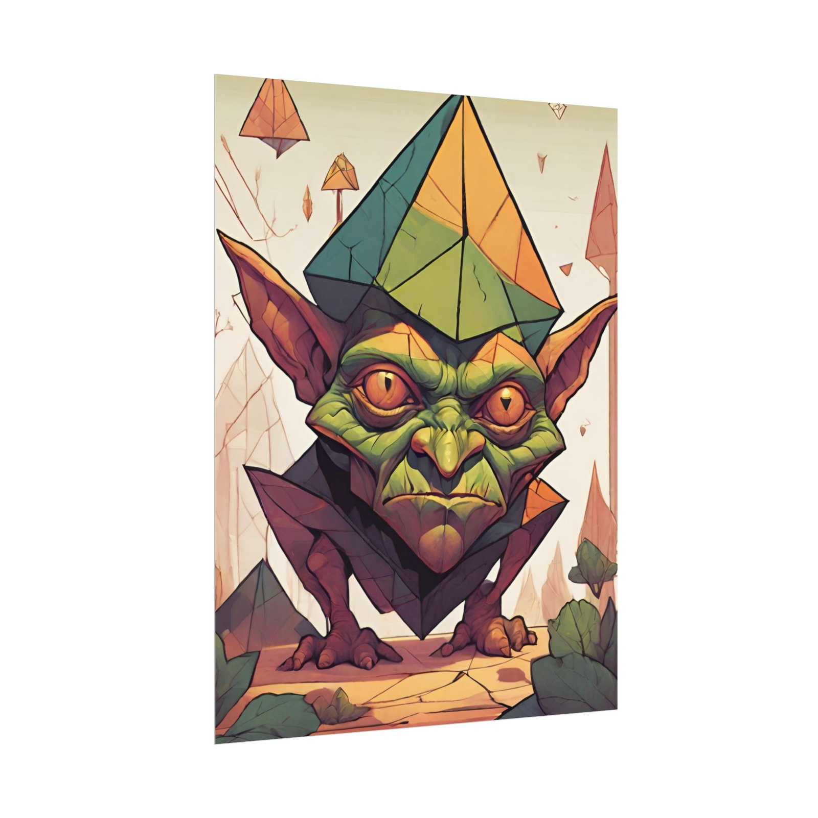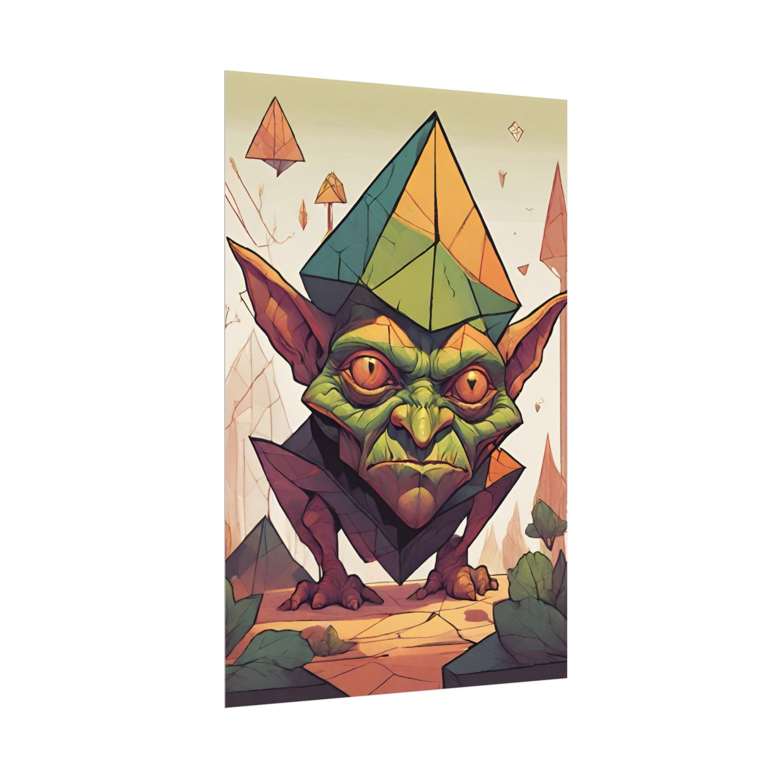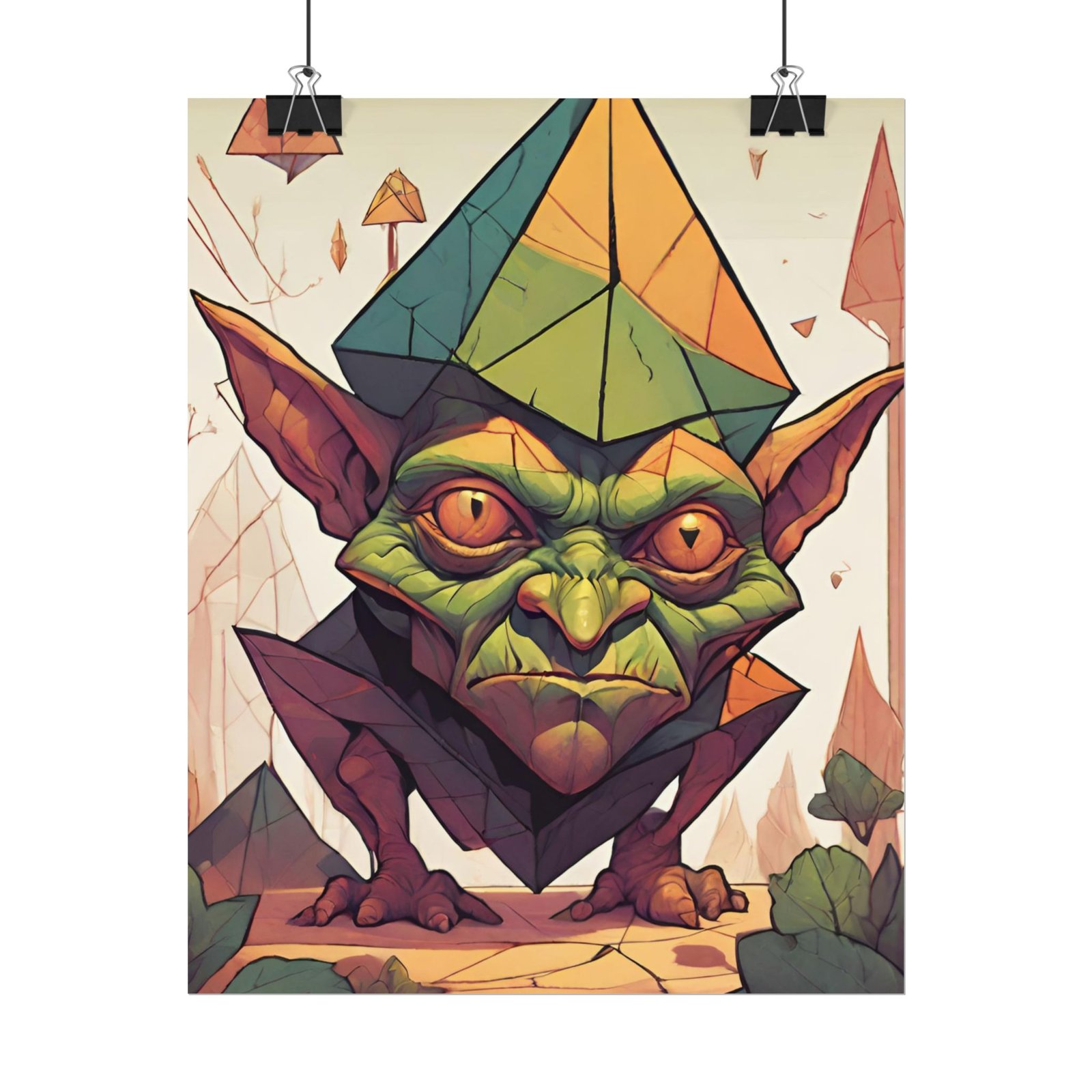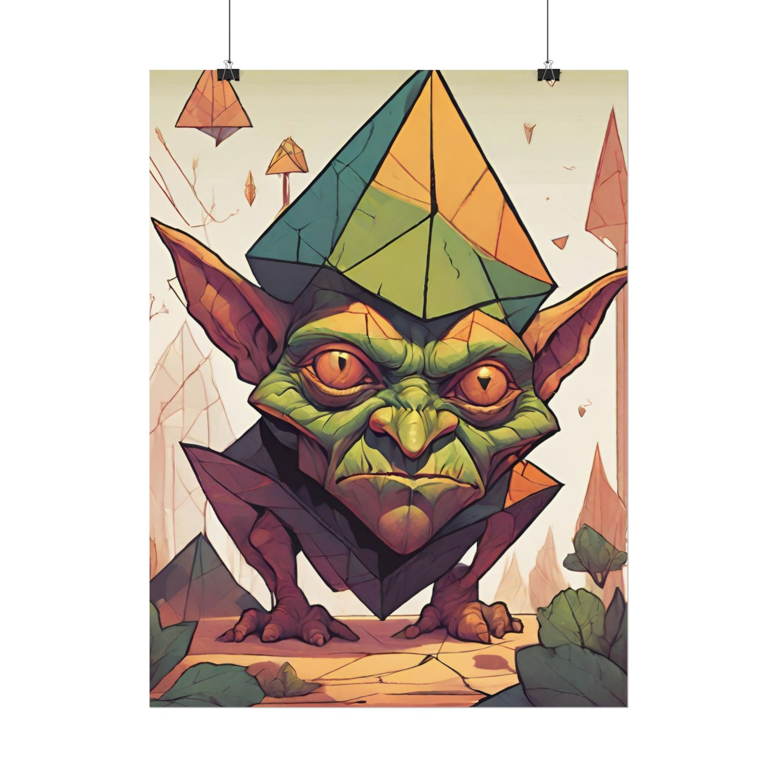 This geometrical Gremlin poster brings a unique and edgy vibe to any room. Perfect for fans of urban or architectural design, this poster can be a conversation starter or a statement piece in your home decor. Ideal for Halloween or Gothic-themed parties, this poster is a must-have for those who love dark aesthetics.