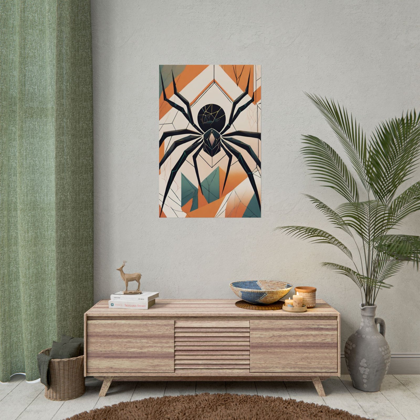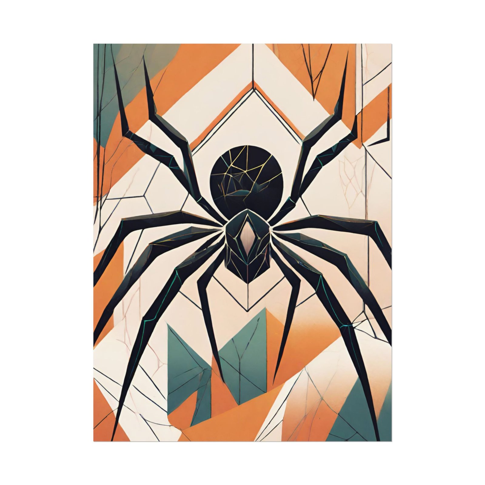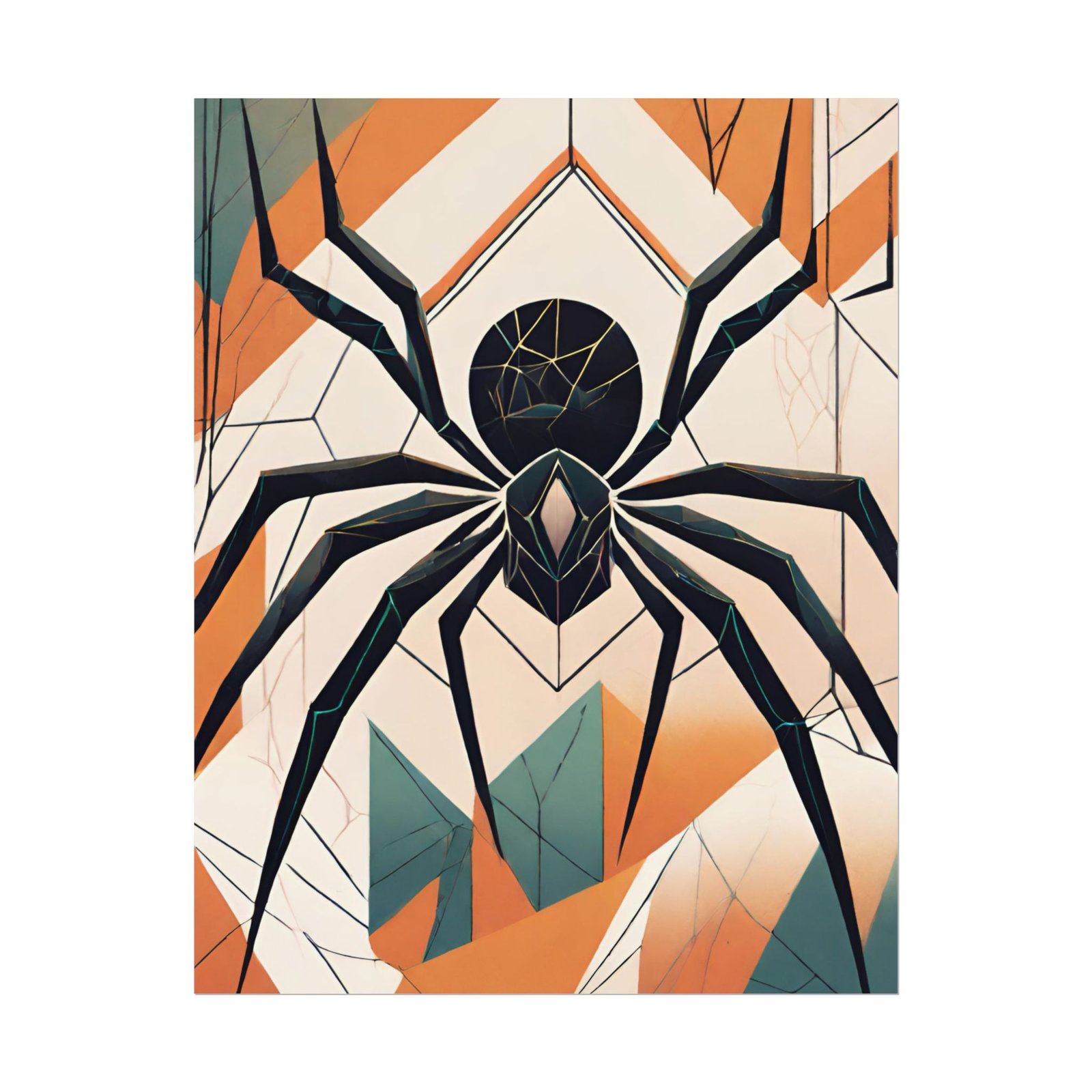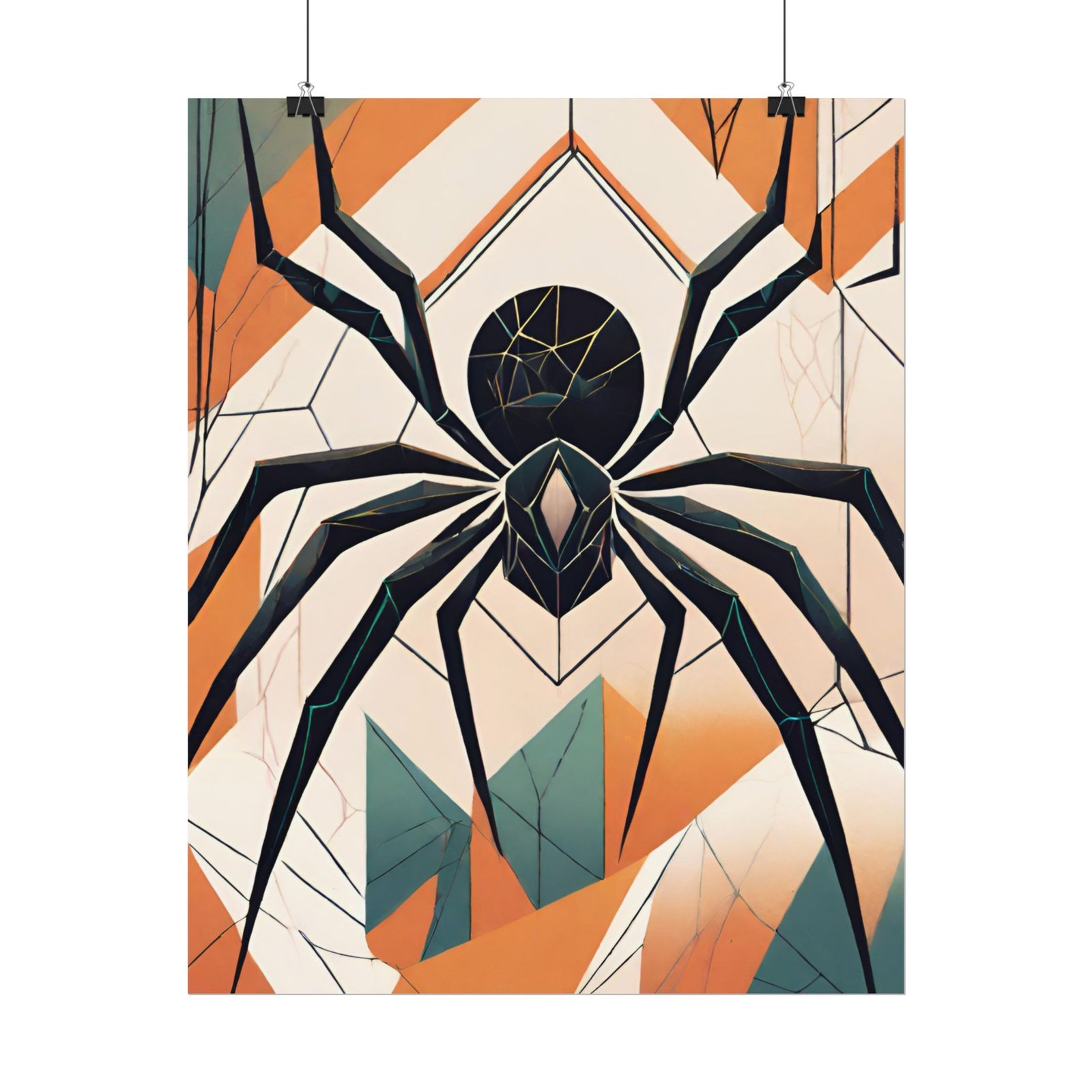 This geometrical Spider poster brings a unique and edgy vibe to any room. Perfect for fans of urban or architectural design, this poster can be a conversation starter or a statement piece in your home decor. Ideal for Halloween or Gothic-themed parties, this poster is a must-have for those who love dark aesthetics.