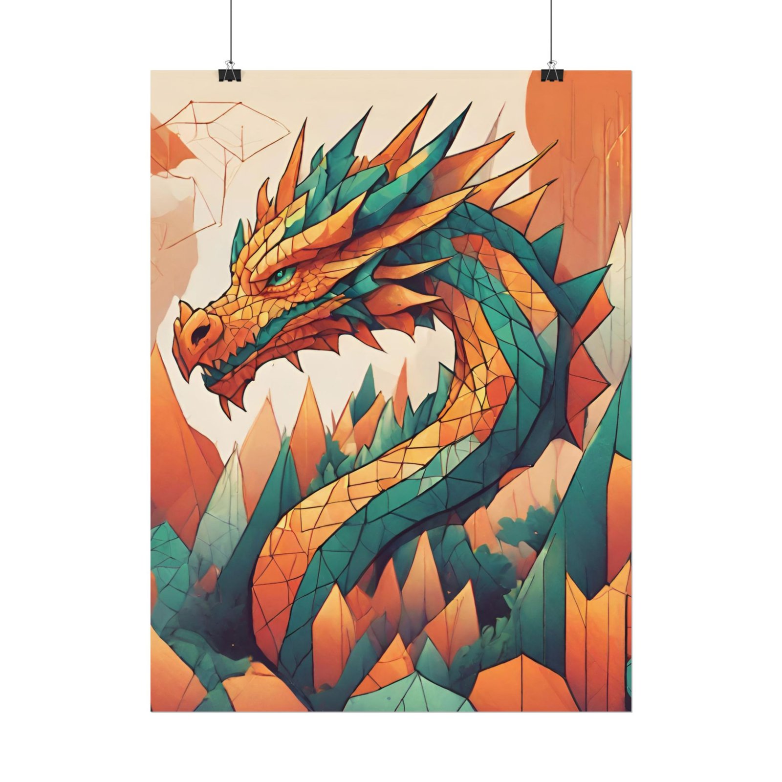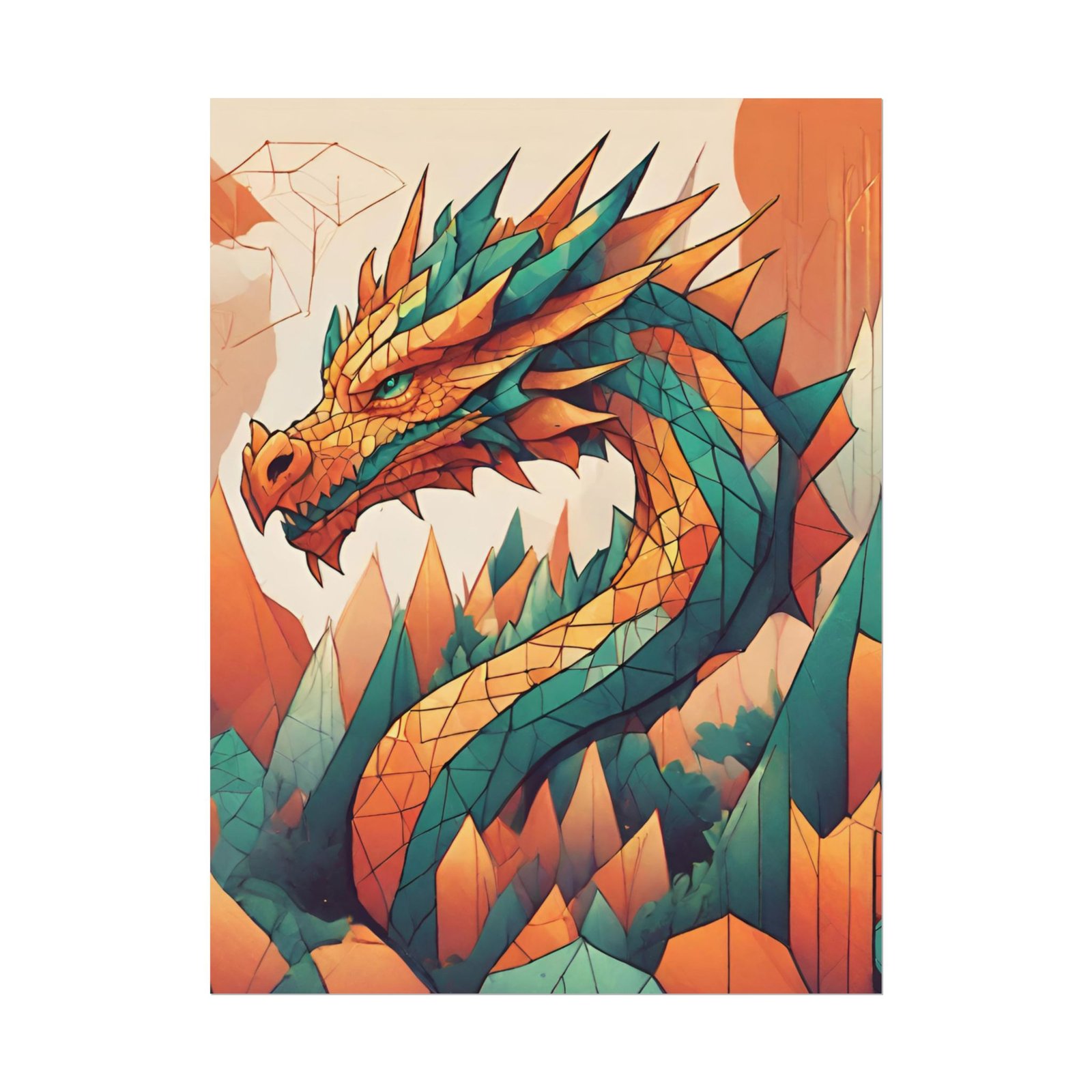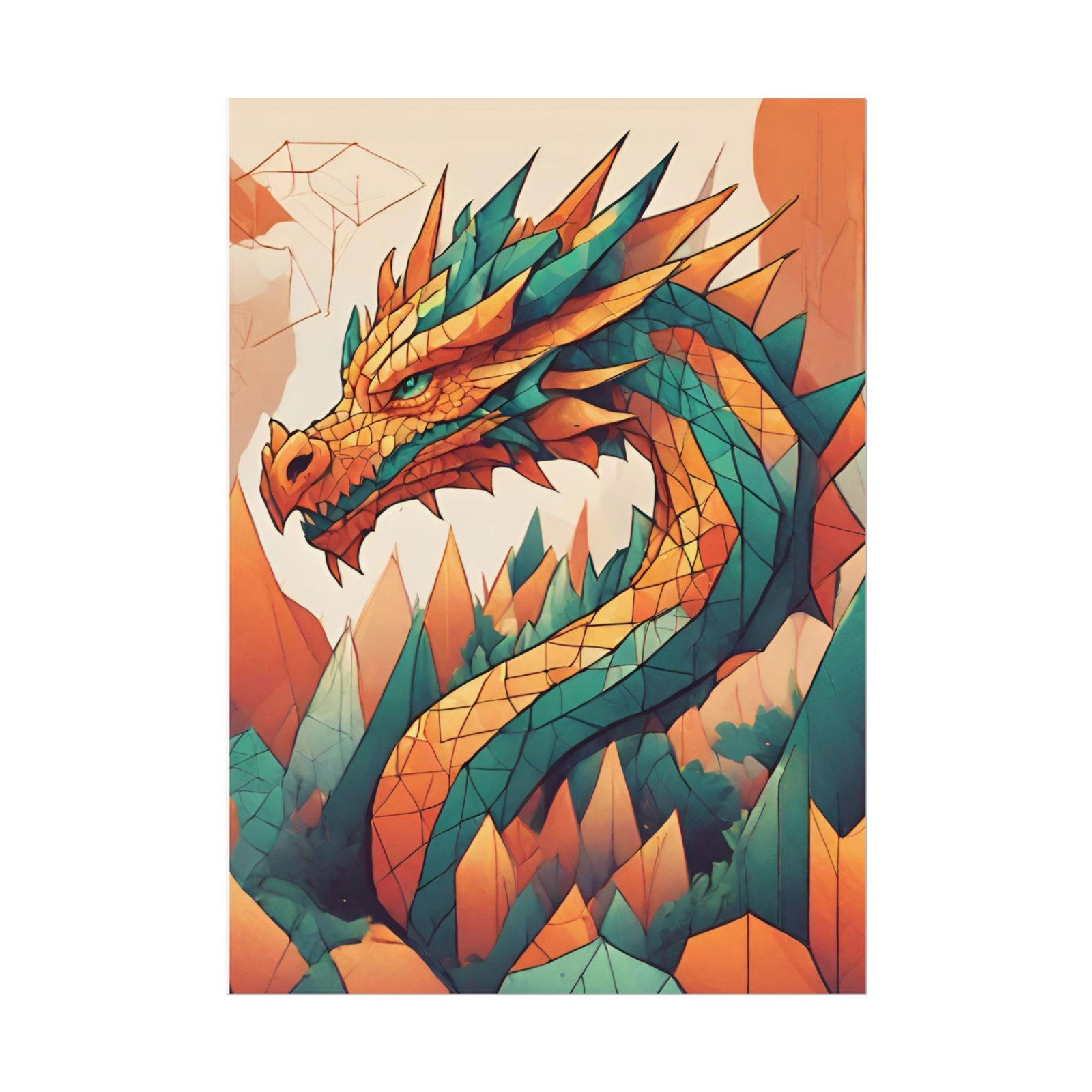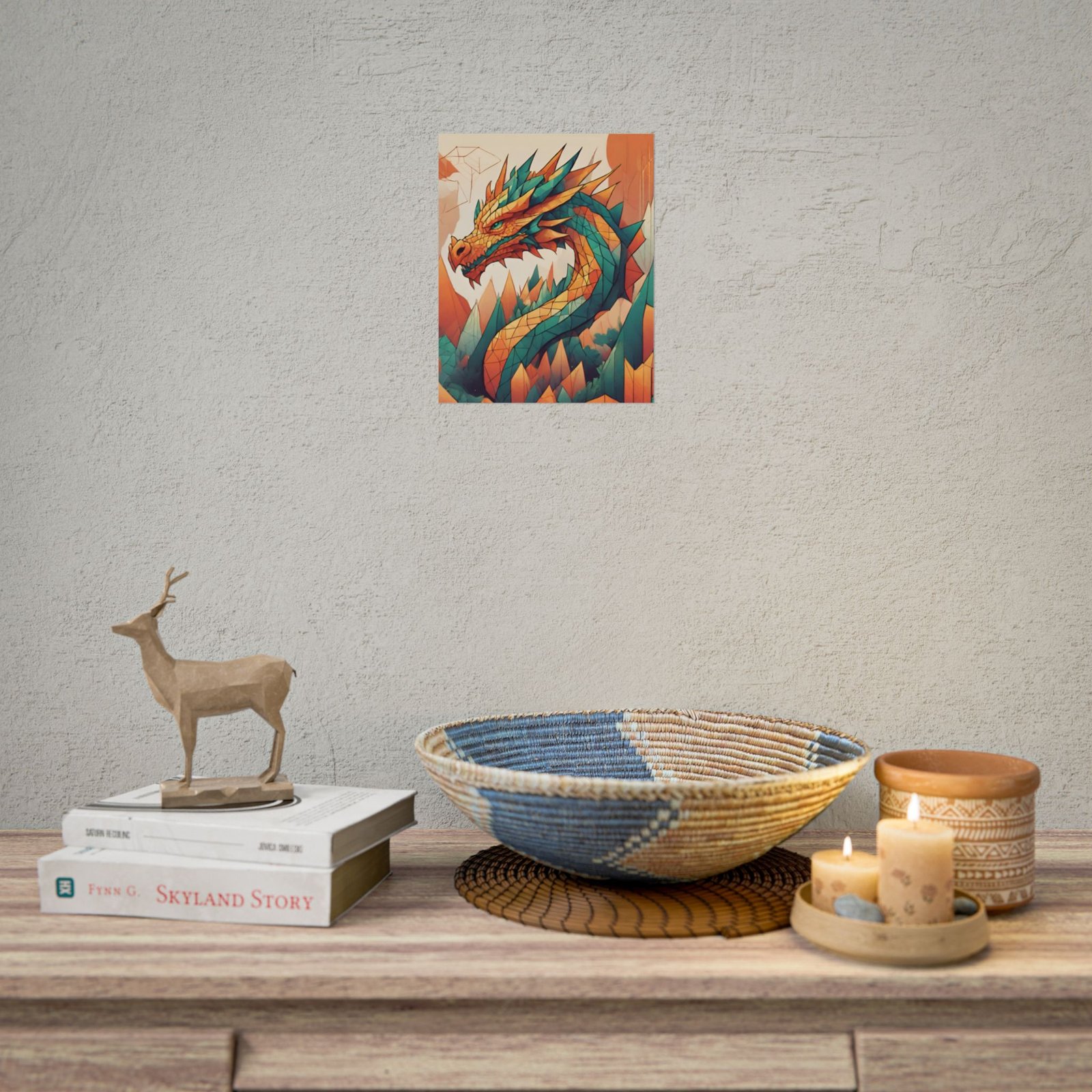 This geometrical Dragon poster brings a unique and edgy vibe to any room. Perfect for fans of urban or architectural design, this poster can be a conversation starter or a statement piece in your home decor. Ideal for Halloween or Gothic-themed parties, this poster is a must-have for those who love dark aesthetics.