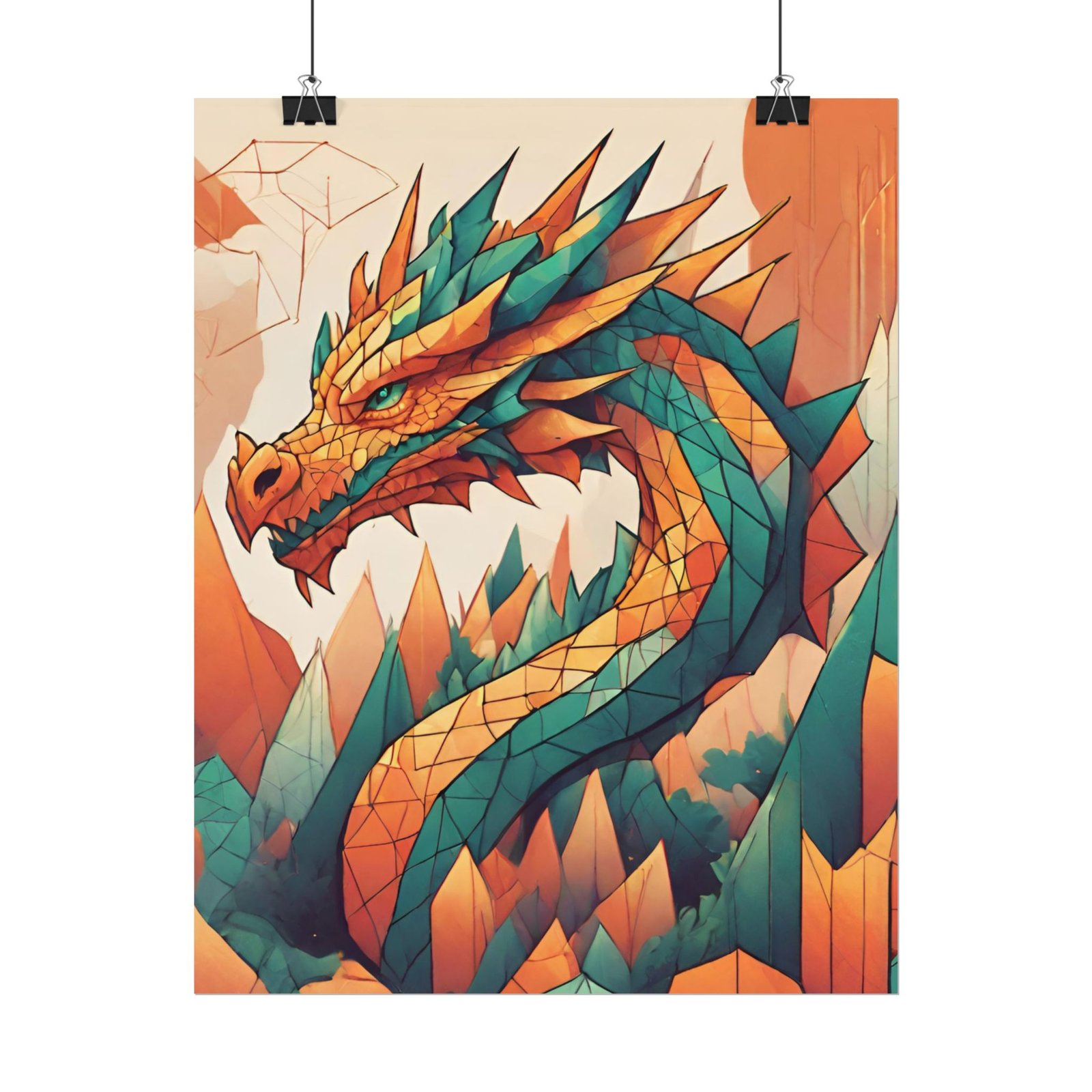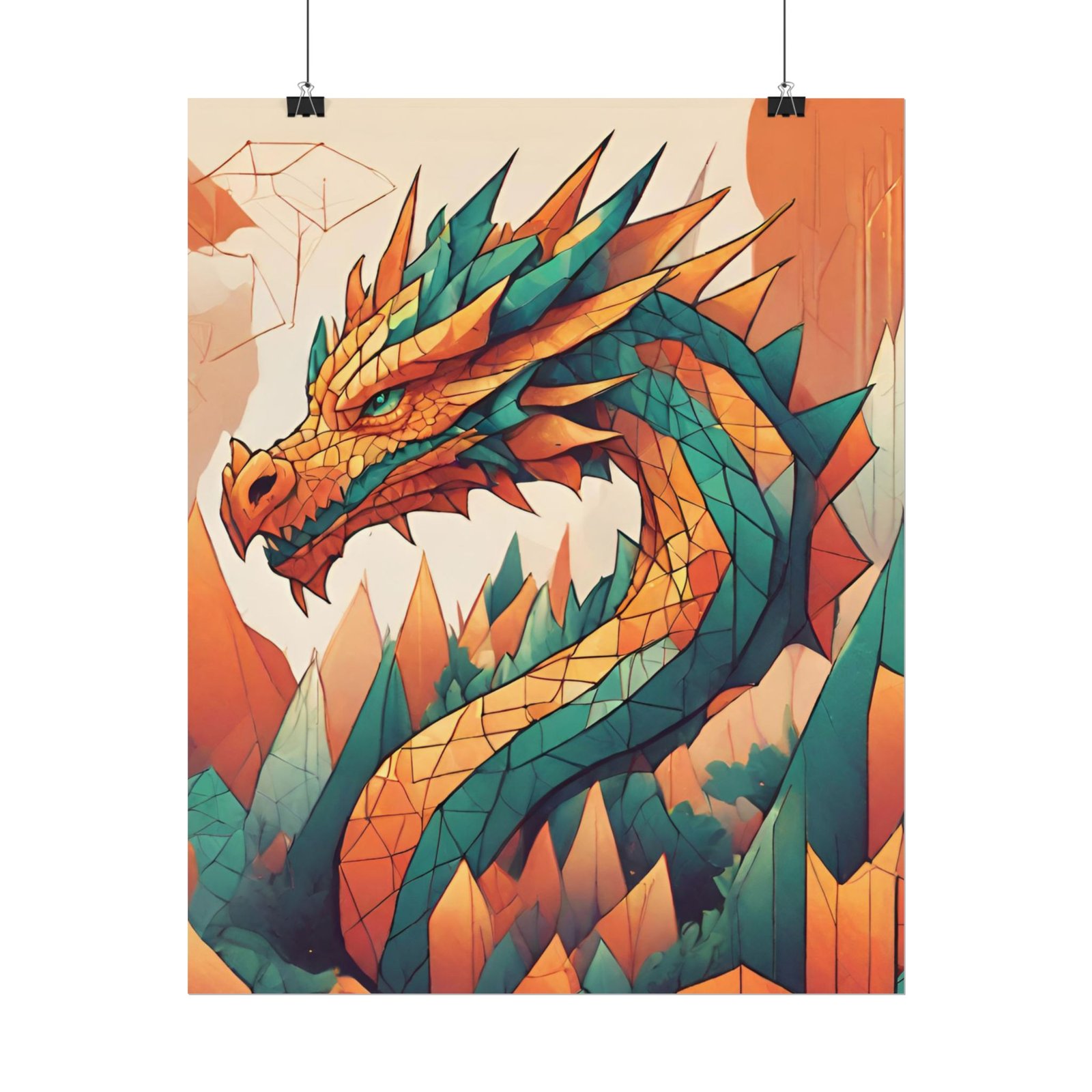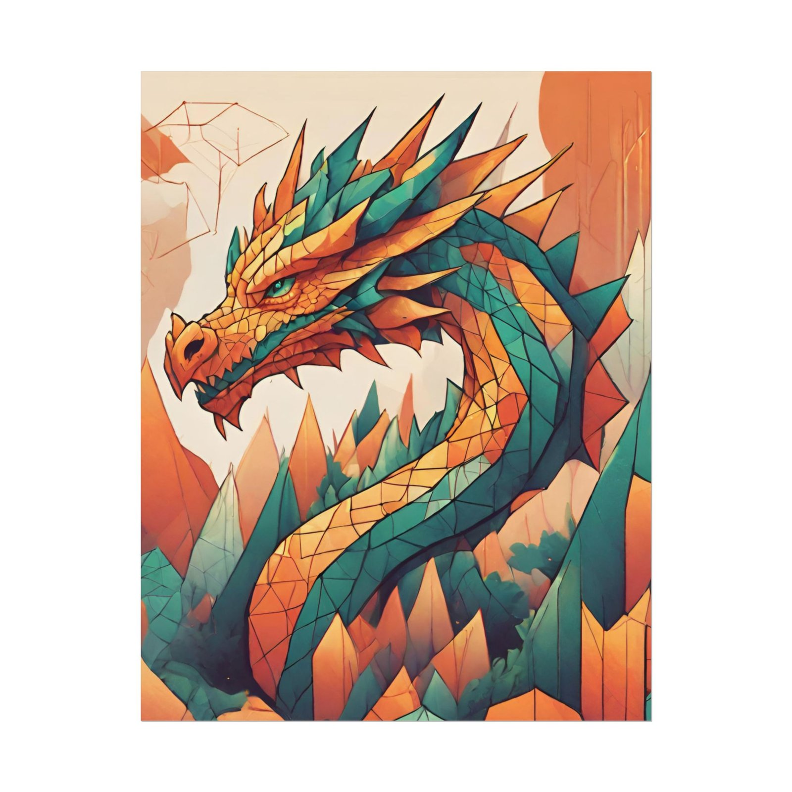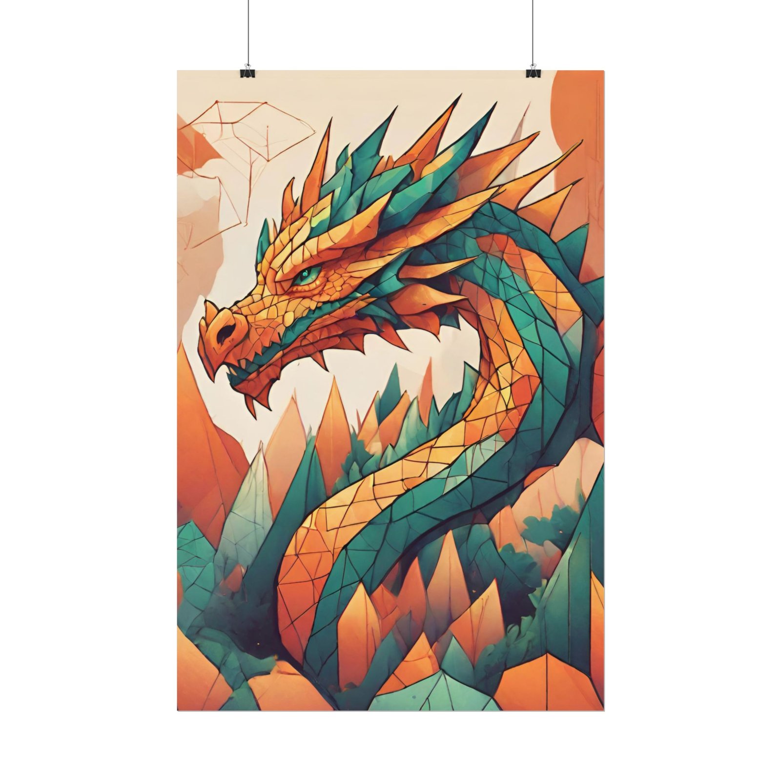This geometrical Dragon poster brings a unique and edgy vibe to any room. Perfect for fans of urban or architectural design, this poster can be a conversation starter or a statement piece in your home decor. Ideal for Halloween or Gothic-themed parties, this poster is a must-have for those who love dark aesthetics.