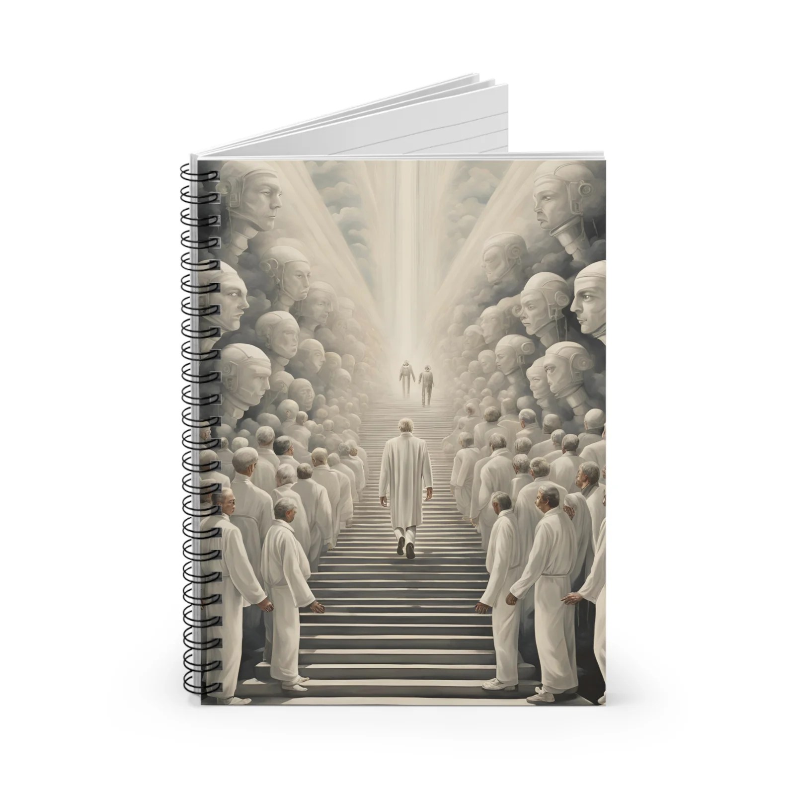 Man, AI Intelligence and Immortality. Shopping lists, school notes or poems – 118 page spiral notebook with ruled line paper is a perfect companion in everyday life. The durable printed cover makes the owner proud to carry it everywhere.
