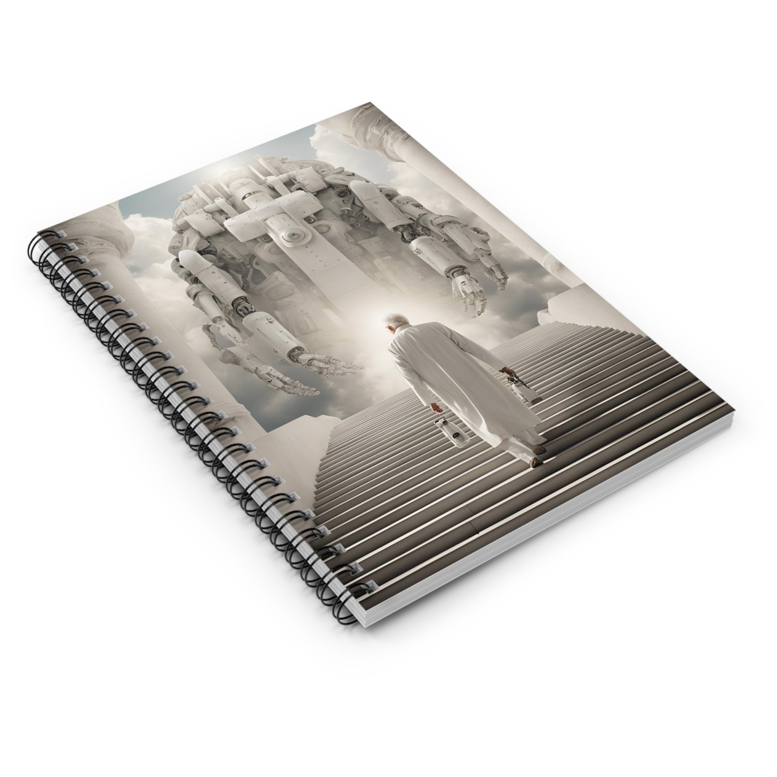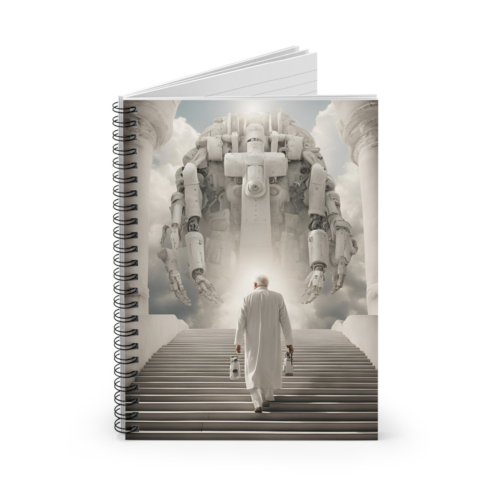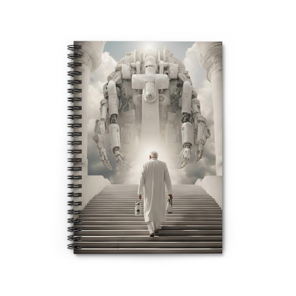 Man, AI Intelligence and Immortality. Shopping lists, school notes or poems – 118 page spiral notebook with ruled line paper is a perfect companion in everyday life. The durable printed cover makes the owner proud to carry it everywhere.