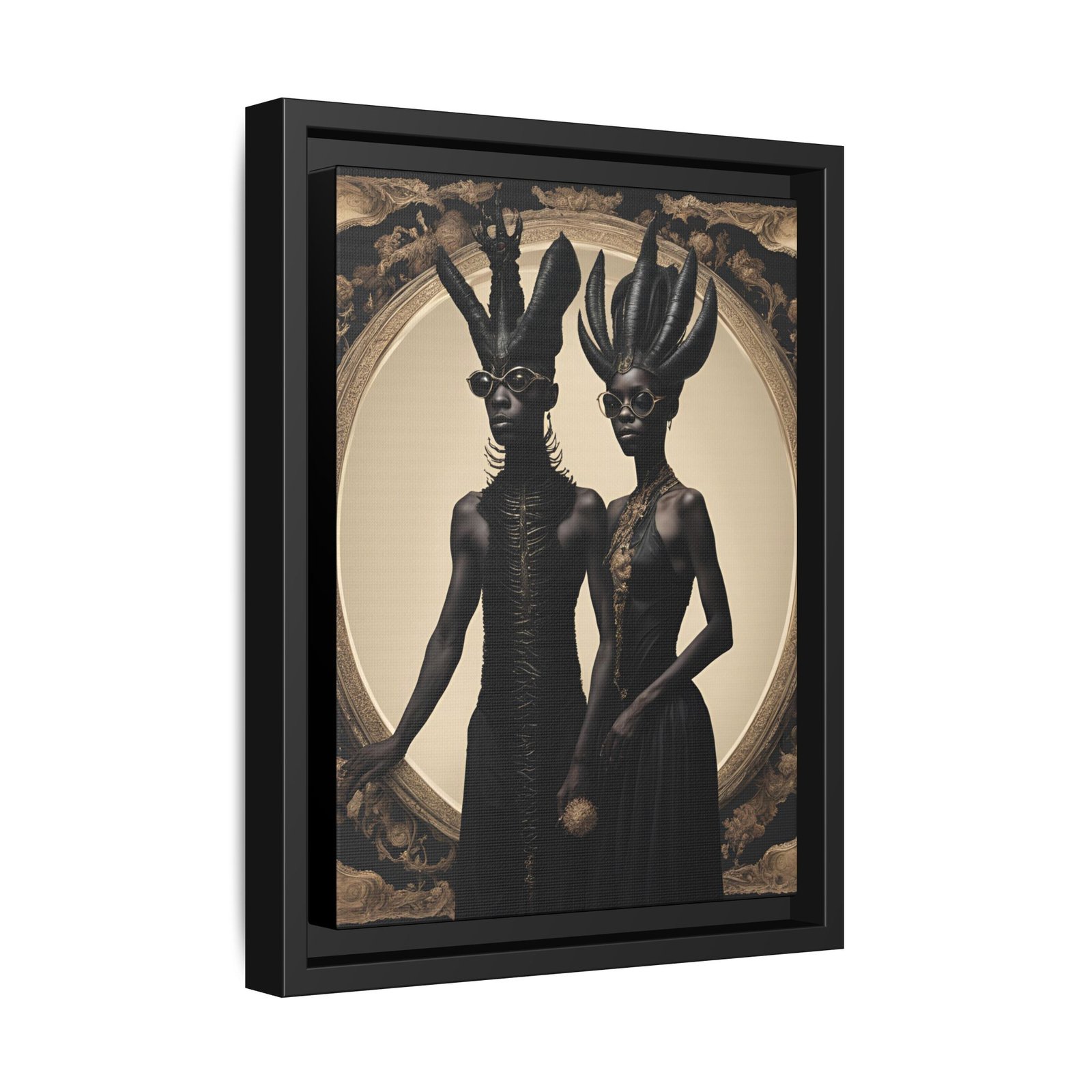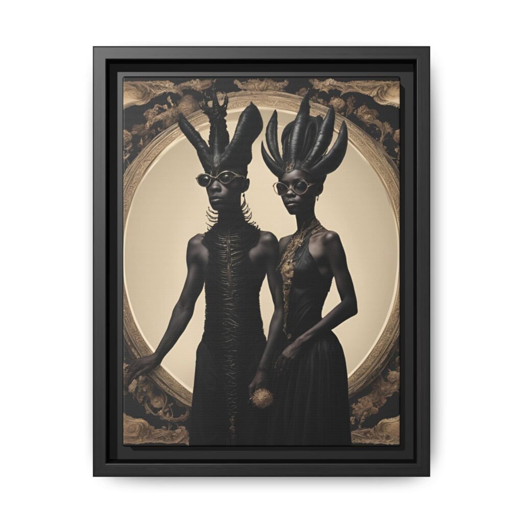 A matte canvas print, stretched and framed in warm pine, that brings a quiet, surreal elegance to any room. The artwork’s muted sepia tones and sculptural figures create a cinematic atmosphere — like a memory discovered in an old photograph. Hung in a study or hallway, it slows the pace of a busy day and invites a second look. The solid pine frame and museum-style coating make the image feel composed and intentional, while the rich, latex-printed colors retain detail without glare. It’s the kind of piece collectors and lovers of dark, atmospheric art return to again and again.