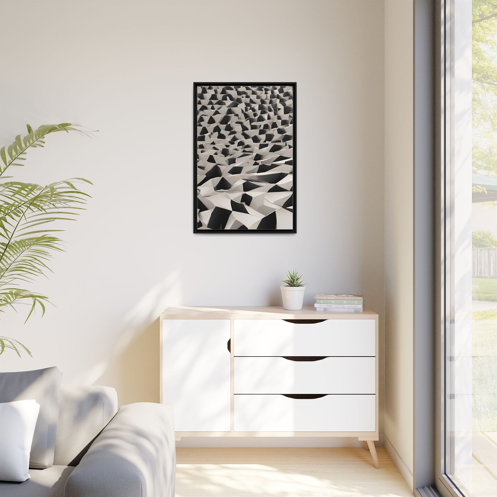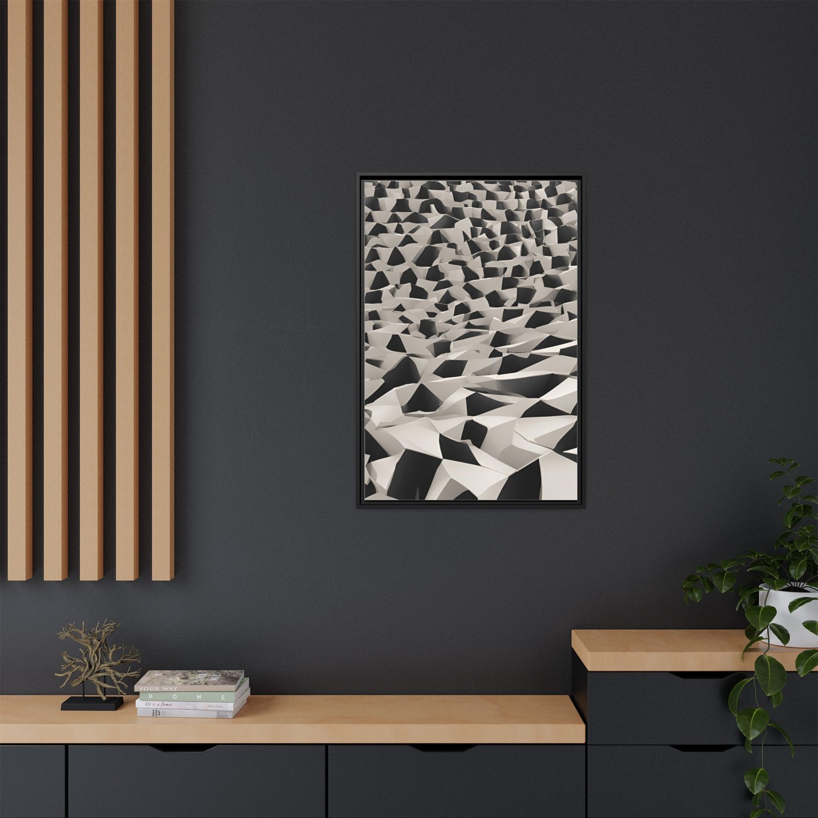 Enhance any interior space with beautiful art framed in a pinewood frame. Printed on a cotton-polyester canvas with a special proprietary coating to ensure long-lasting, vibrant colors and eye-catching detail. Made with sustainably sourced materials (Forest Stewardship Council certified), these frames are an eco-friendly choice. Choose between between 4 colors that match your surroundings. The sawtooth hanging hardware is already attached.
