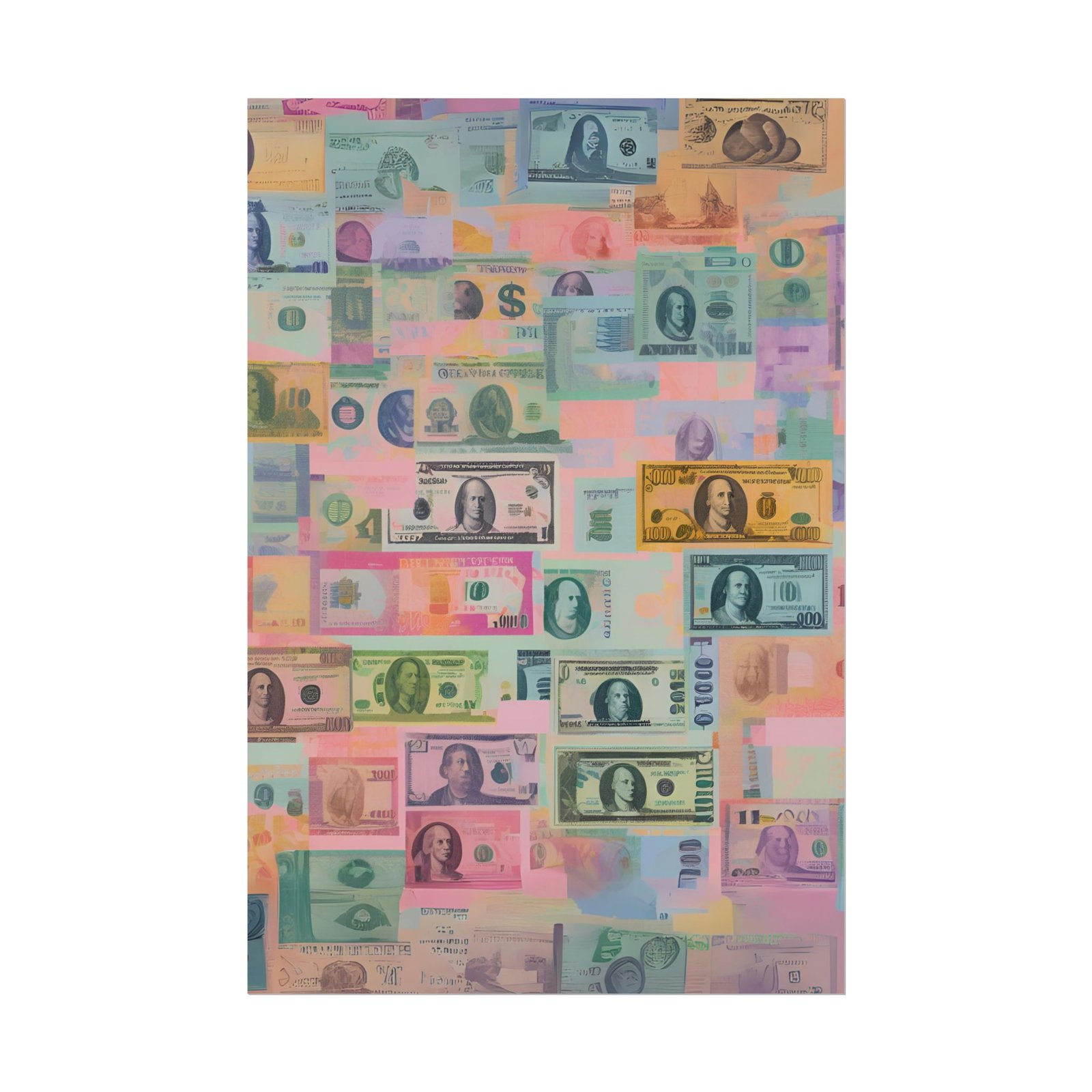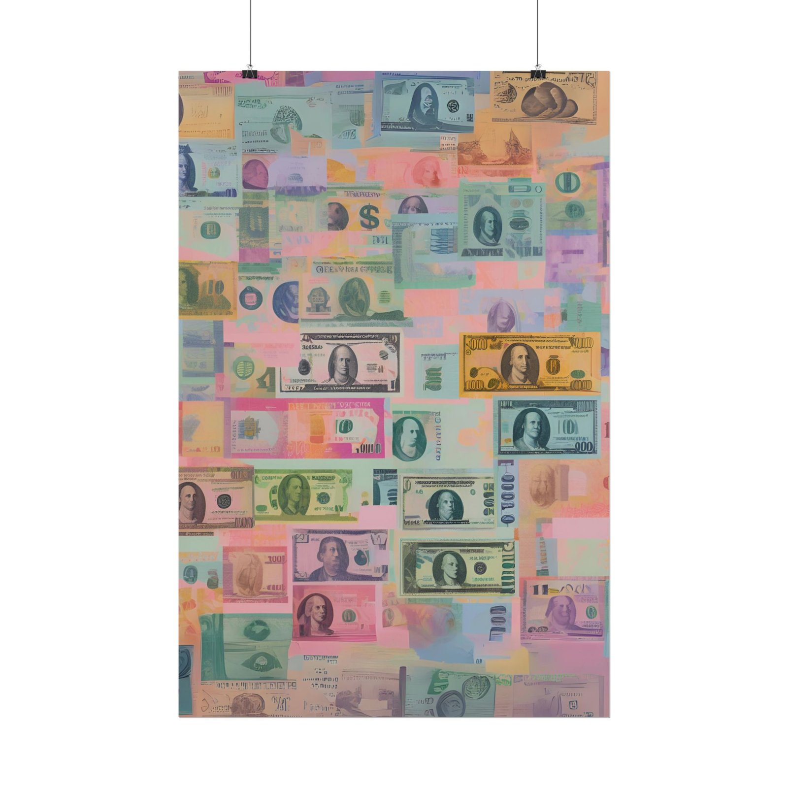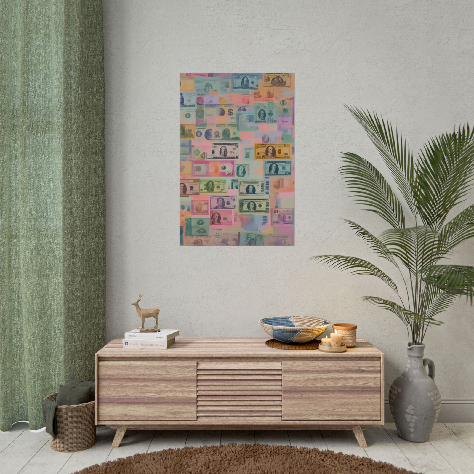 IS_3504 Money Collage Poster — Pastel Currency Wall Art (Rolled Poster)