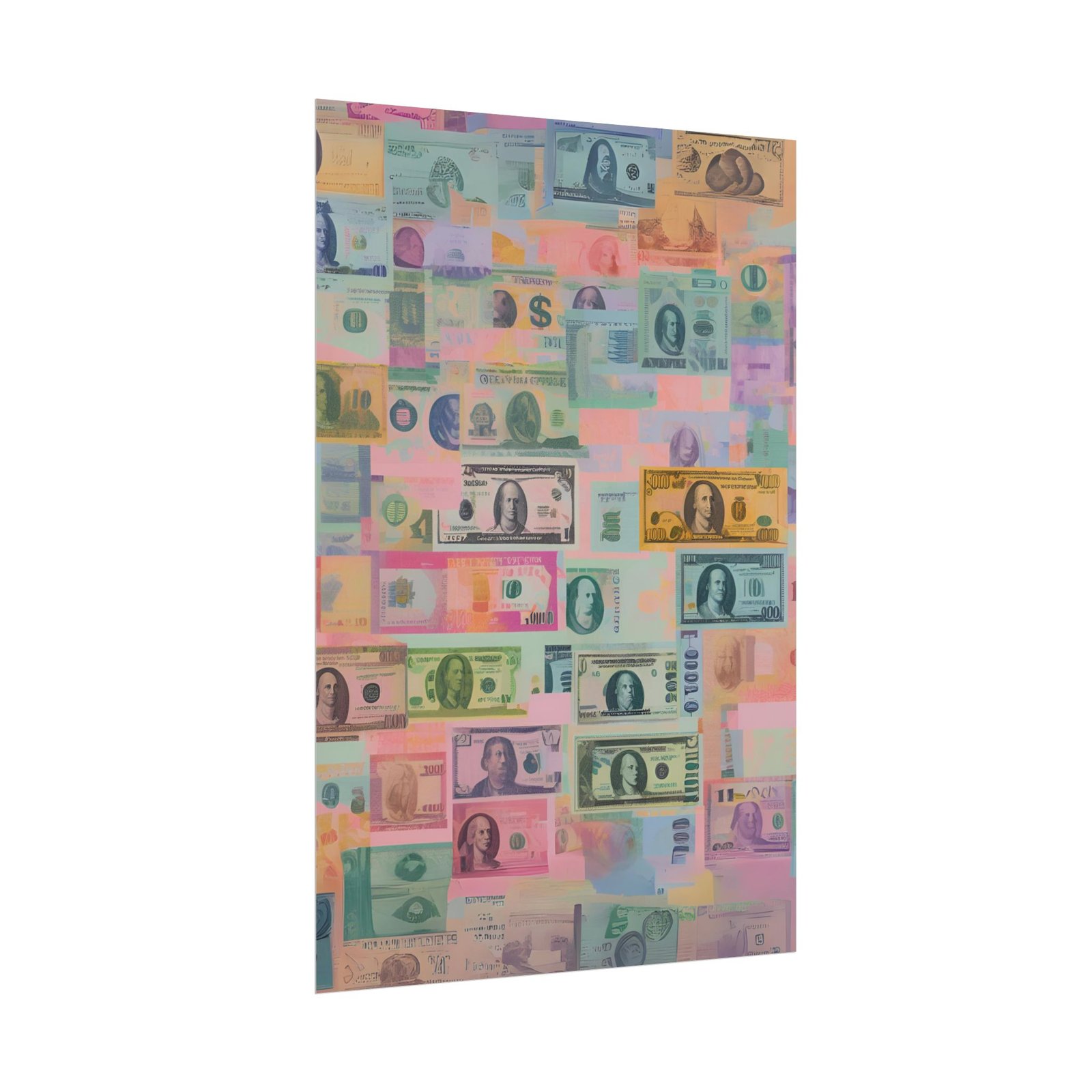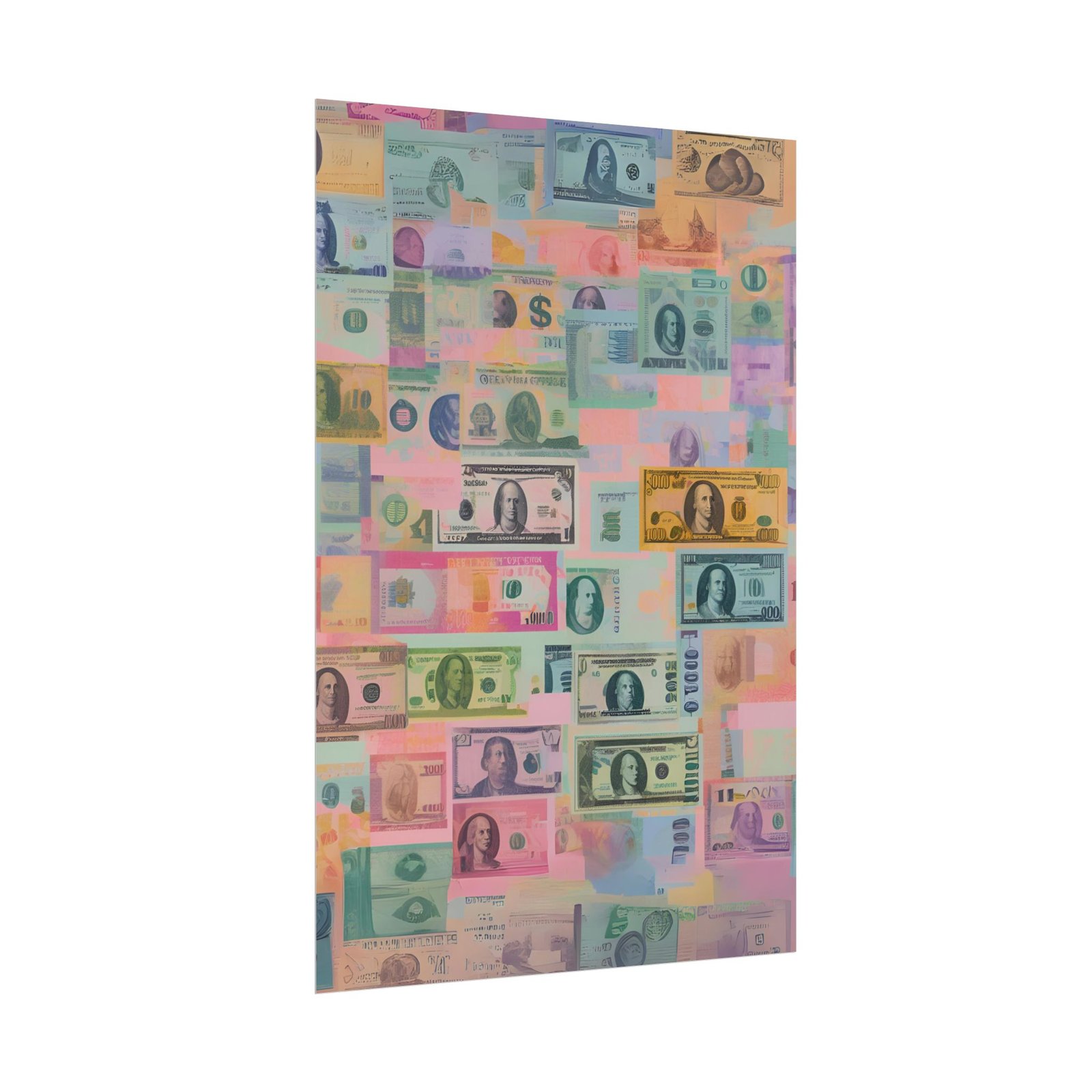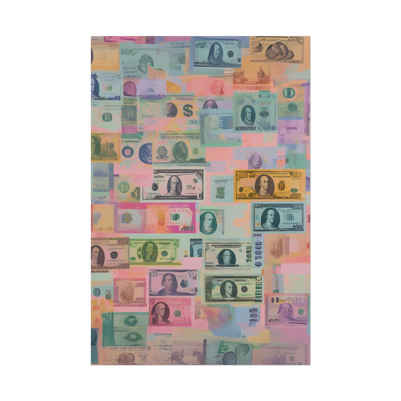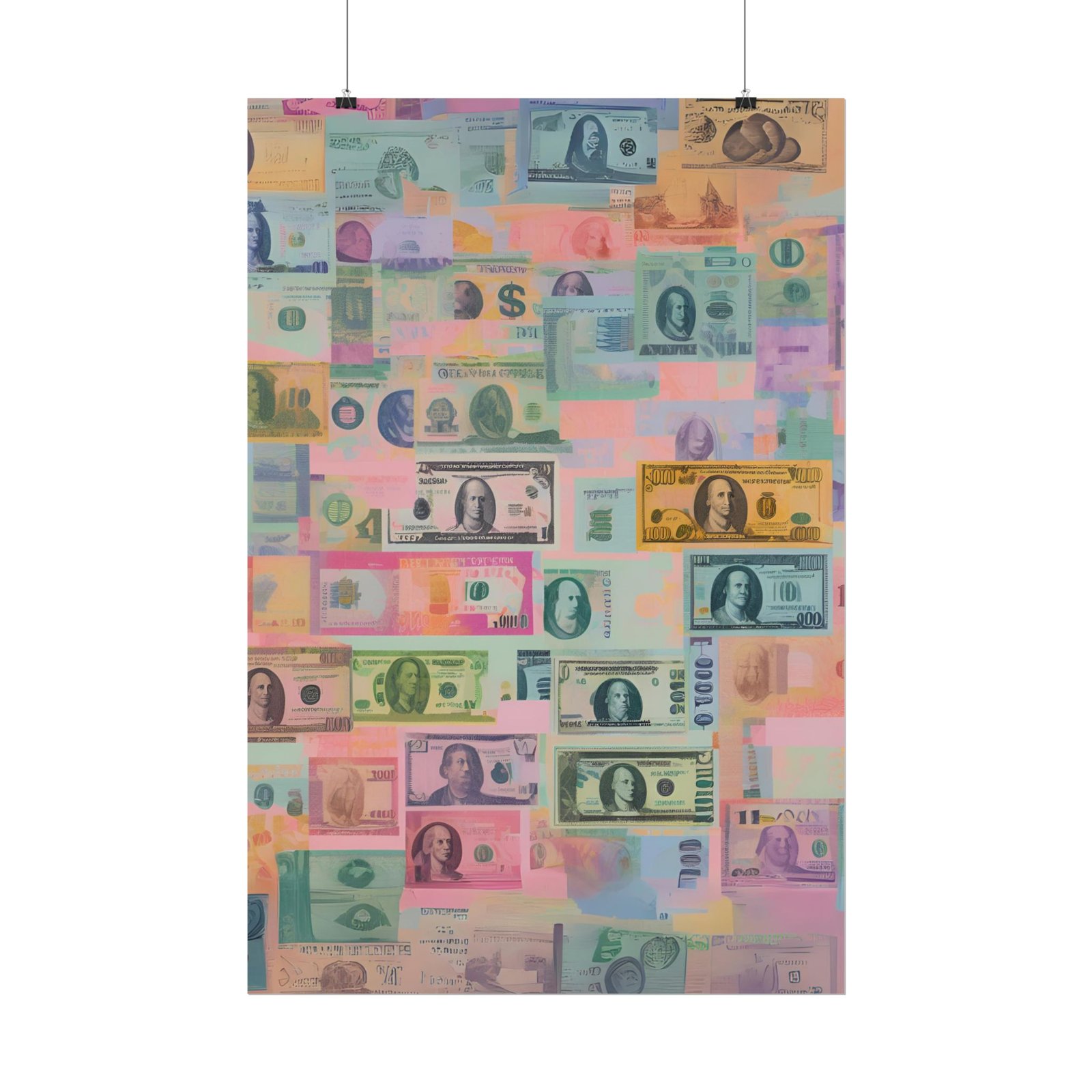 IS_3504 Money Collage Poster — Pastel Currency Wall Art (Rolled Poster)