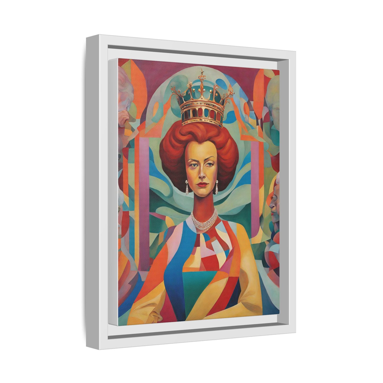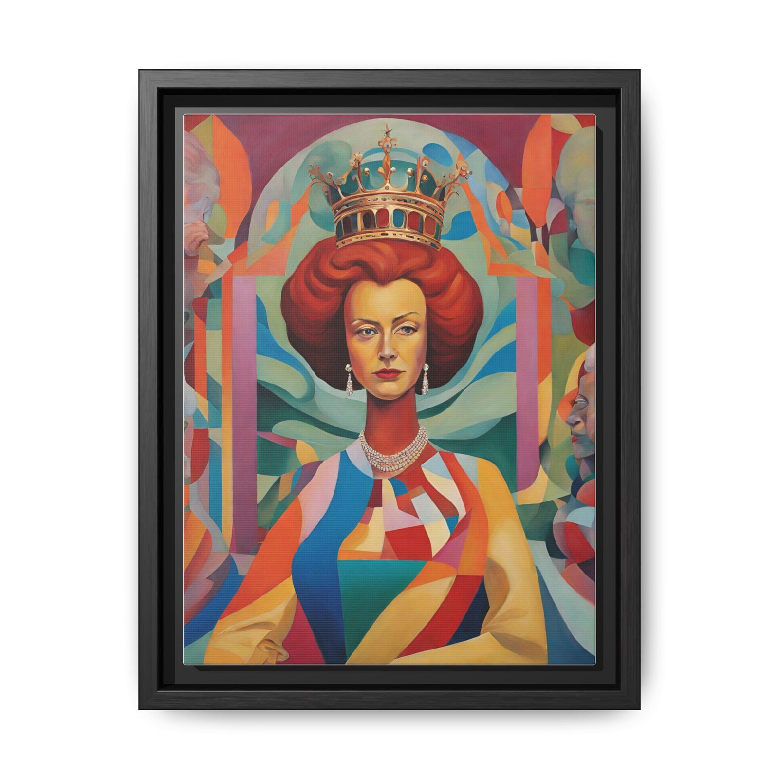 A vivid matte canvas print framed in deep pine, this piece brings bold color and modern regality to any wall. The thick, coated canvas captures luminous hues and crisp detail, while the slim black frame adds contemporary depth and a clean gallery feel. Lightweight yet rigid, it arrives ready to hang with sawtooth hardware, making it simple to introduce a statement portrait into living rooms, studios, or curated office walls. Sustainably produced and printed with non-toxic latex and Greenguard Gold inks, the print balances striking visual impact with eco-conscious craftsmanship.