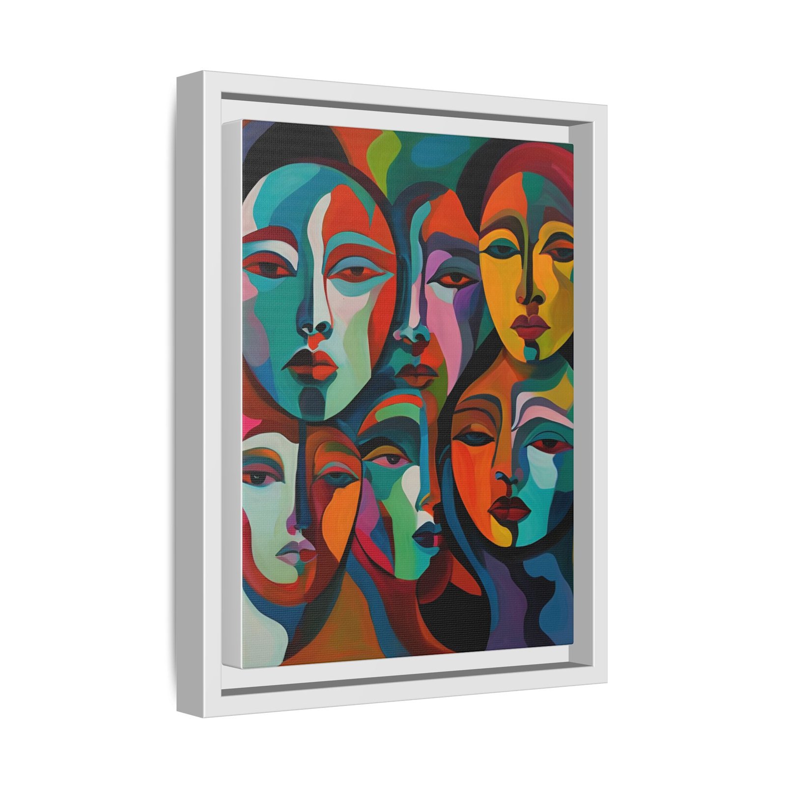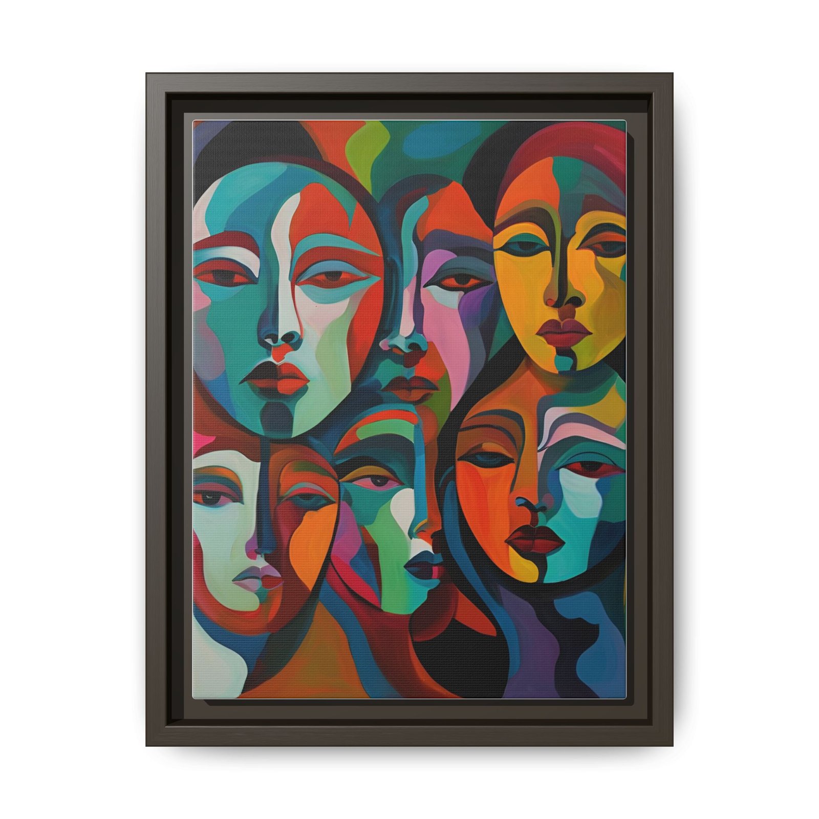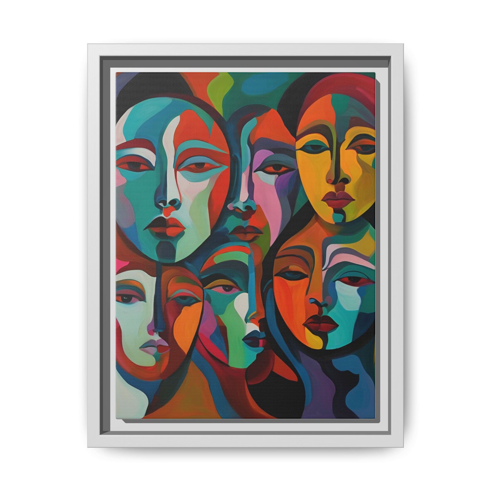 A framed matte canvas print that brings bold, layered emotion to your walls. Rich, saturated colors and smooth gradients form a chorus of stylized faces — each one distinct yet part of a unified composition. The matte finish softens glare and deepens tones, while the slim pine frame adds a clean, modern edge that feels gallery-ready. Hang it in a living room, creative studio, or hallway to invite conversation and color into everyday moments.