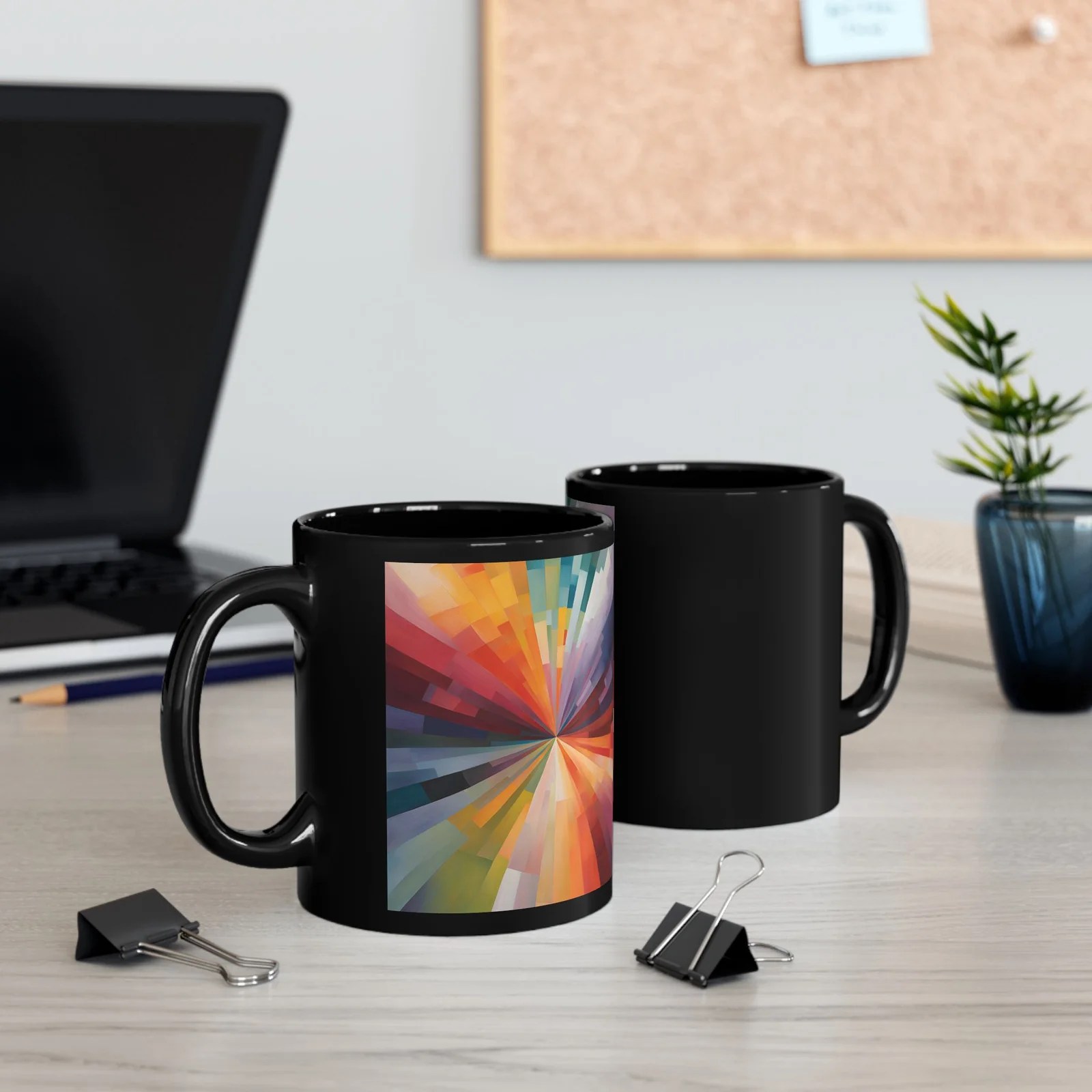 IS_3907 Colorful Abstract Design Black Mug – 11oz & 15oz, Perfect for Coffee Lovers