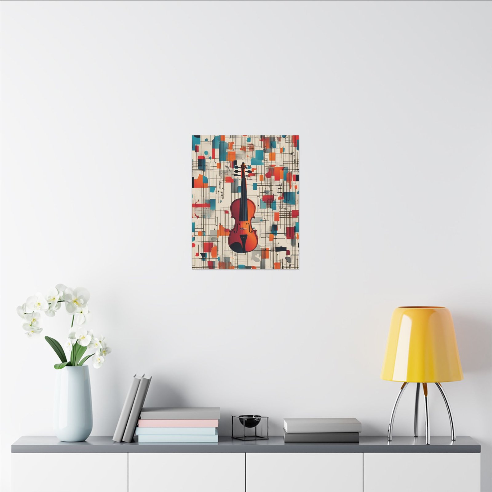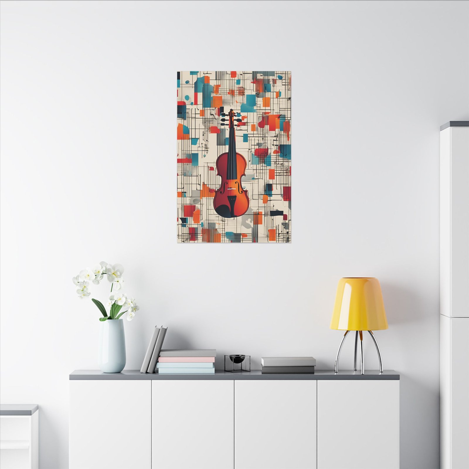 Elevate your home decor with this stunning matte canvas print. The vibrant design beautifully captures a violin surrounded by colorful abstract elements, making it a perfect addition to any artistic space. This canvas radiates creativity and charm, inspiring warmth and passion for music in your surroundings. Ideal for music lovers, artists, or anyone looking to enhance their home or office with unique artwork. Perfect for holidays like birthdays, housewarmings, or any special occasion where a thoughtful, stylish gift is needed. Transform your walls into a gallery with this enchanting piece.