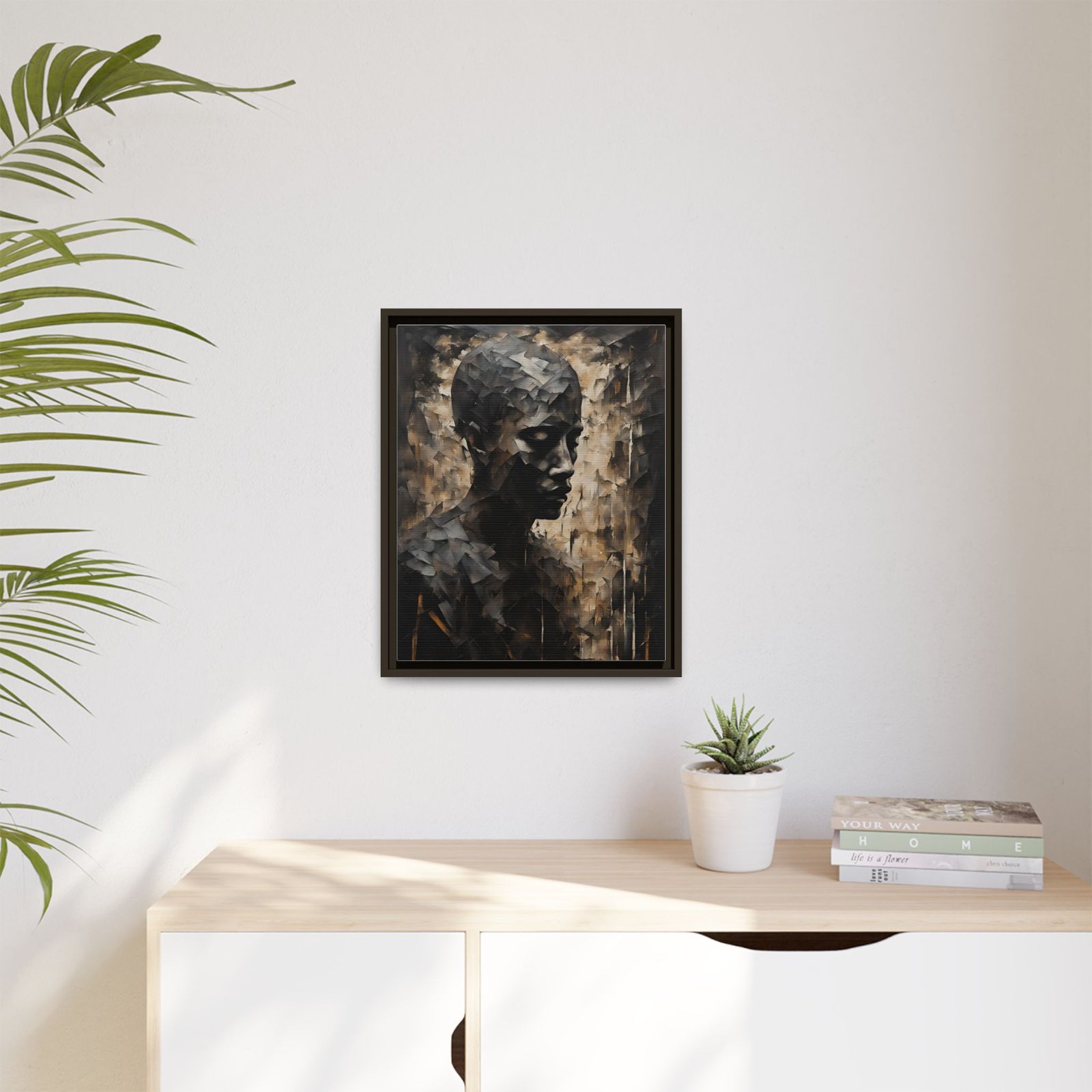 This matte canvas print, mounted and framed in a sleek pine frame, brings quiet intensity into a room. Broad, textured brushstrokes and a muted palette shape a contemplative portrait that holds attention without shouting. The subtle sheen of JONDO’s proprietary coating deepens the blacks and warm neutrals, while the crisp print definition preserves every layered stroke. Hang it in a study or living room to create a thoughtful corner for reading, reflection, or intimate conversation. The sustainable materials and durable latex inks mean the piece looks as intentional years from now as it does the day it arrives.