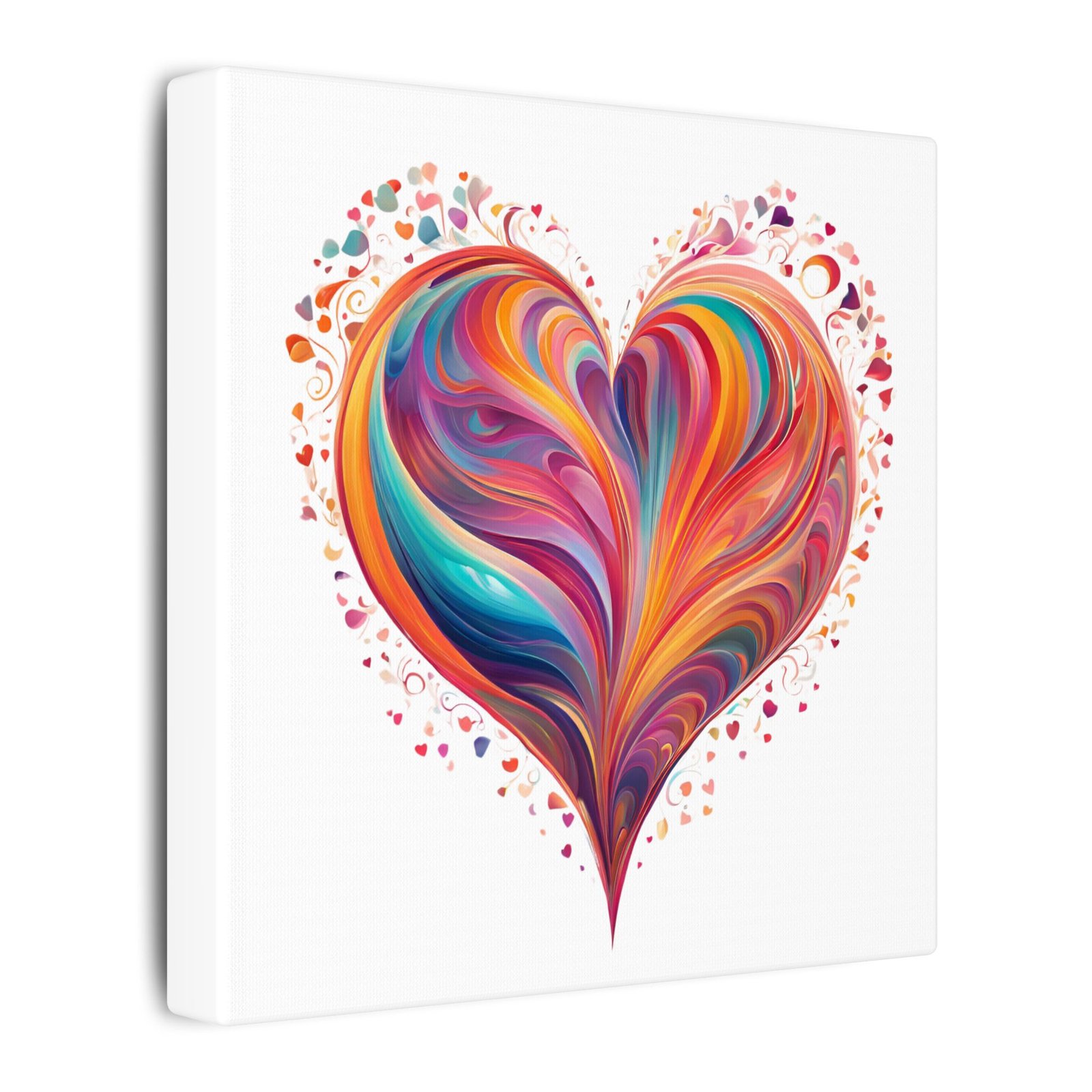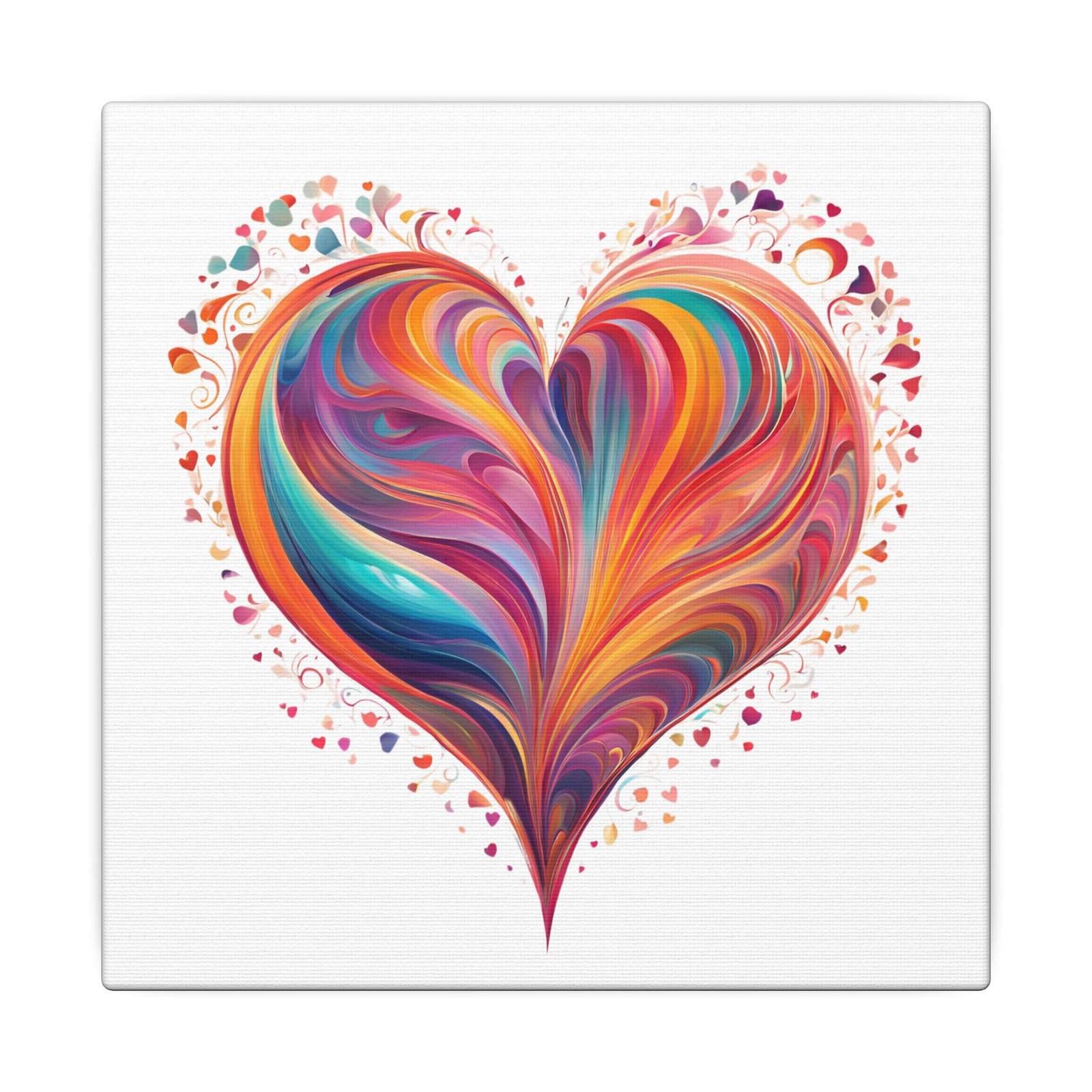 A vibrant stretched canvas that brings a flood of color and warmth to any wall. The hand-painted feel of the swirling heart pops against a clean white background, creating a joyful focal point that reads as both modern art and heartfelt expression. The 0.75″ deep stretcher frame keeps the image flush and gallery-ready, while the responsibly sourced pine frame and durable cotton-poly canvas ensure this piece feels substantial and lasts. It’s the kind of artwork you notice first and keep noticing — a bright, uplifting presence in living rooms, nurseries, or cozy reading nooks during celebrations like anniversaries and housewarmings.