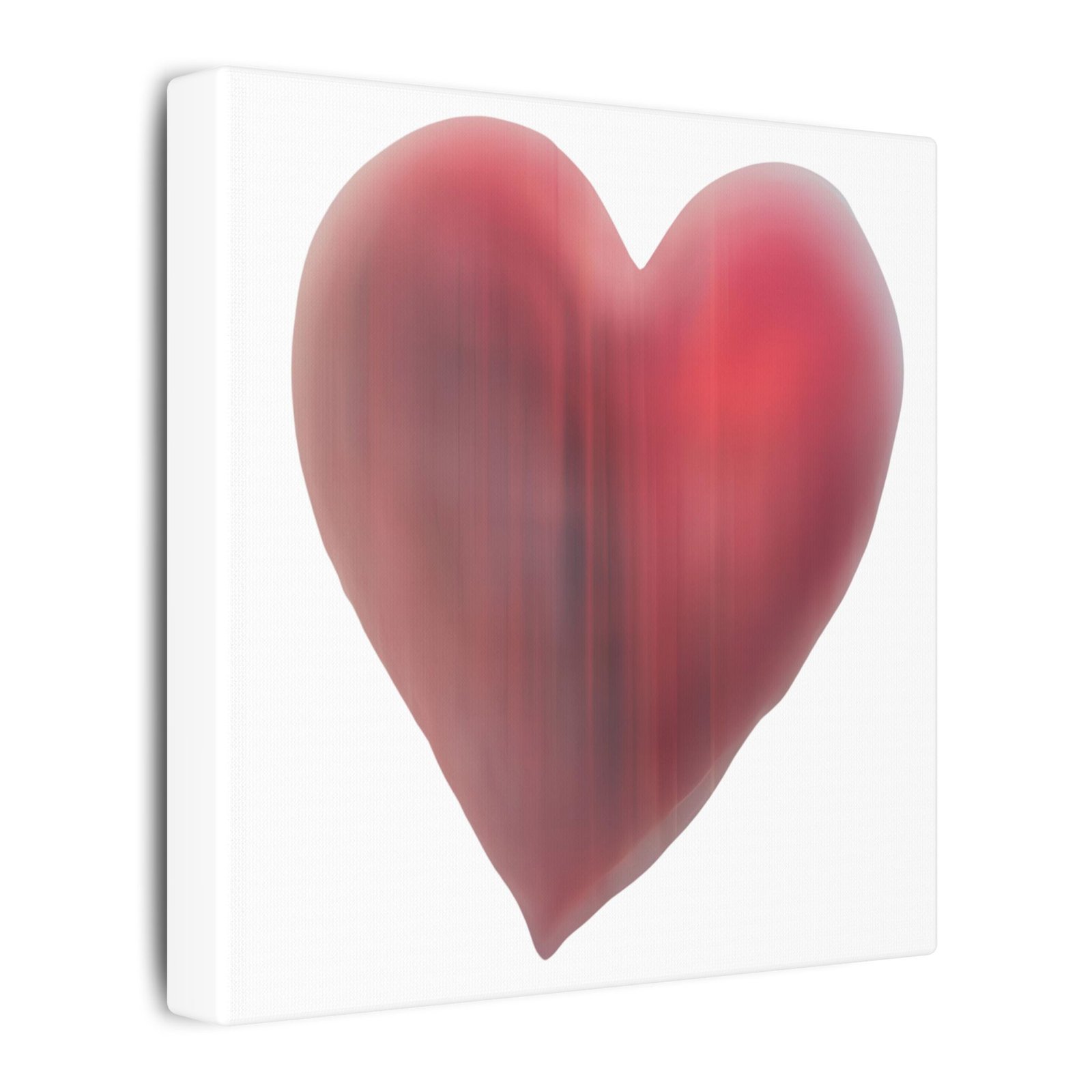 A soft, painterly heart rendered in warm reds and subtle vertical washes, printed on matte stretched canvas to bring a quiet, intimate moment into any room. The image feels like a gentle breath—imperfect edges, layered tones, and a hand-painted warmth that sits calmly against the white field. Hung in a bedroom, studio, or small living area, this canvas draws the eye without shouting, offering a reminder of tenderness and slow, steady feeling. Its slim stretcher keeps the silhouette minimal so the artwork remains the focus, while durable materials and fade-resistant inks ensure the color and softness stay true over time.