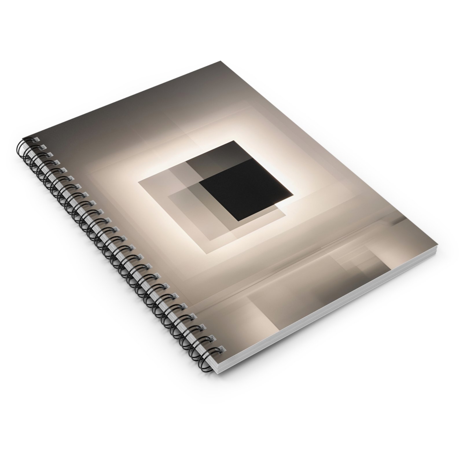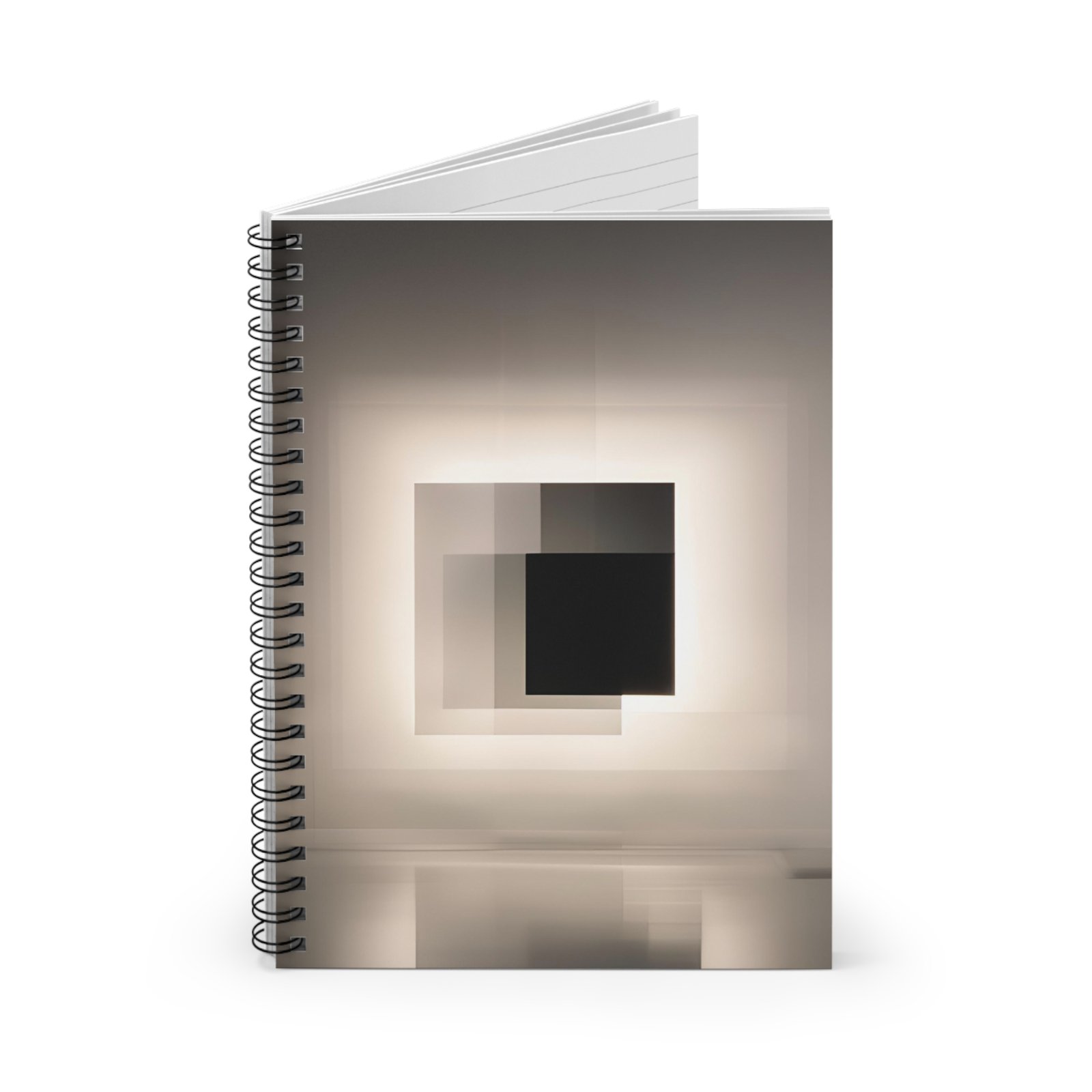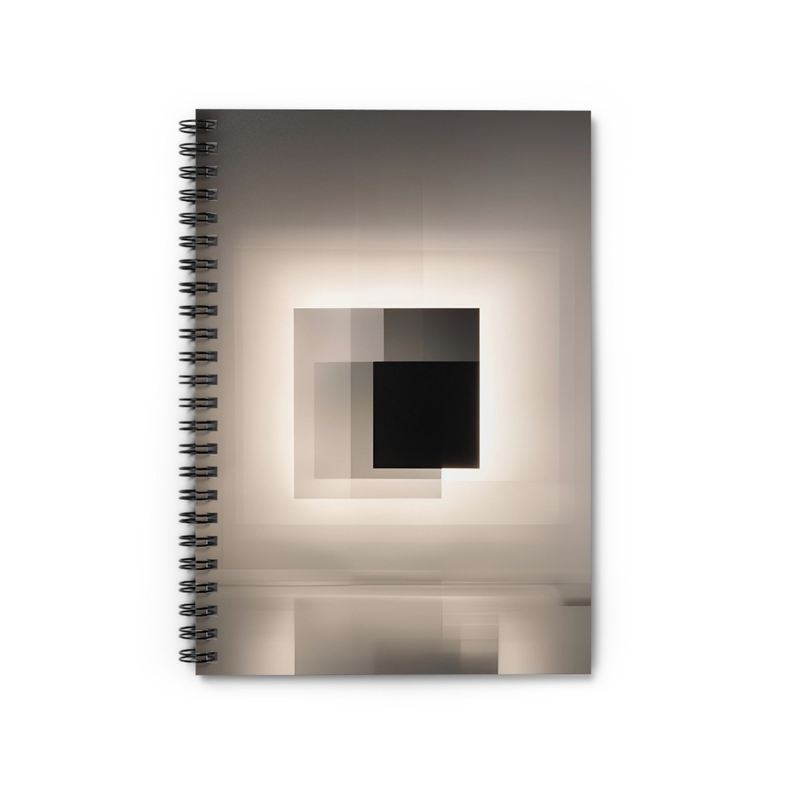 A quiet, design-forward spiral notebook that invites focused thinking. The soft, muted cover features layered squares and subtle reflections — a minimal, meditative image that calms the mind before you put pen to paper. Ruled pages gently guide handwriting, while the sturdy metal spiral lies flat for easy note-taking and page removal. Keep sketches, lists, or daily plans in the inside document pocket so ideas stay together. Sized to slip into a tote or laptop bag, this notebook moves with you from coffee shop to studio to desk.