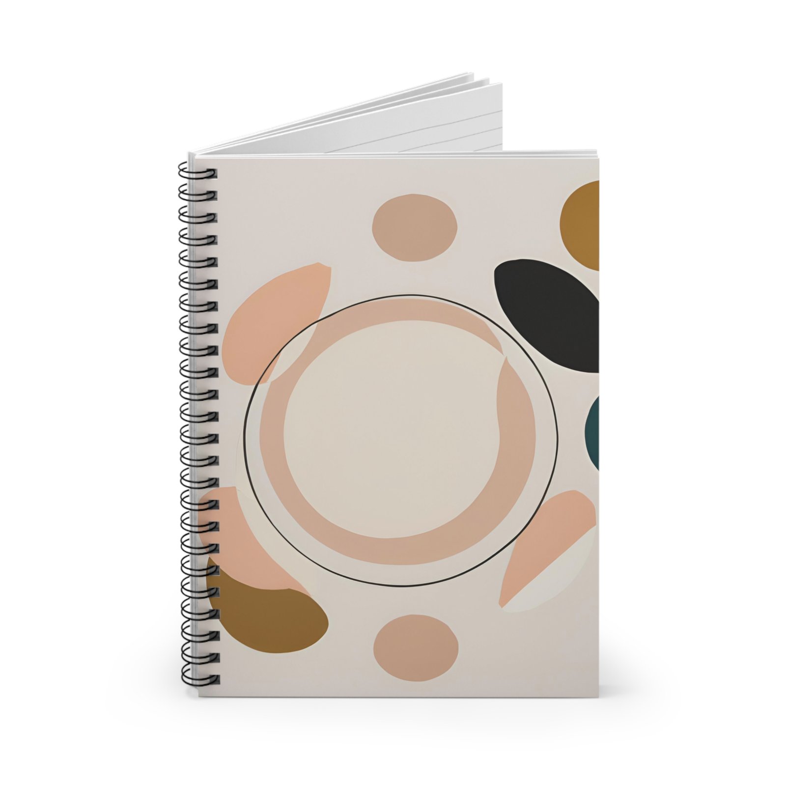 IS_4413 Abstract Neutral Spiral Notebook – Minimalist Dots & Circles Ruled Journal