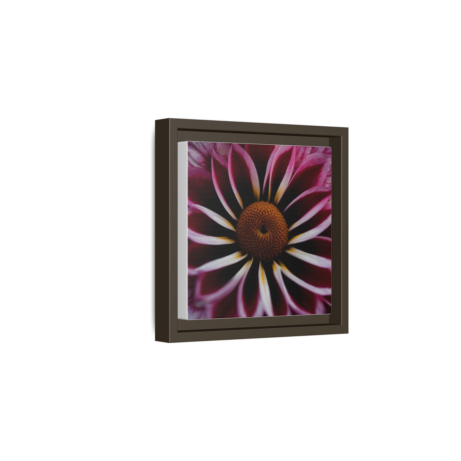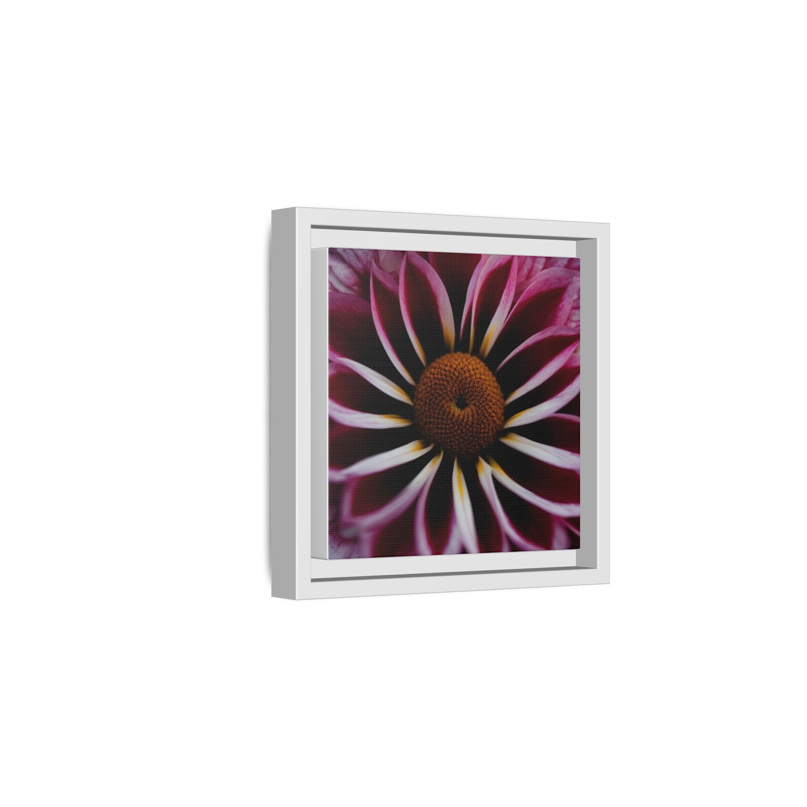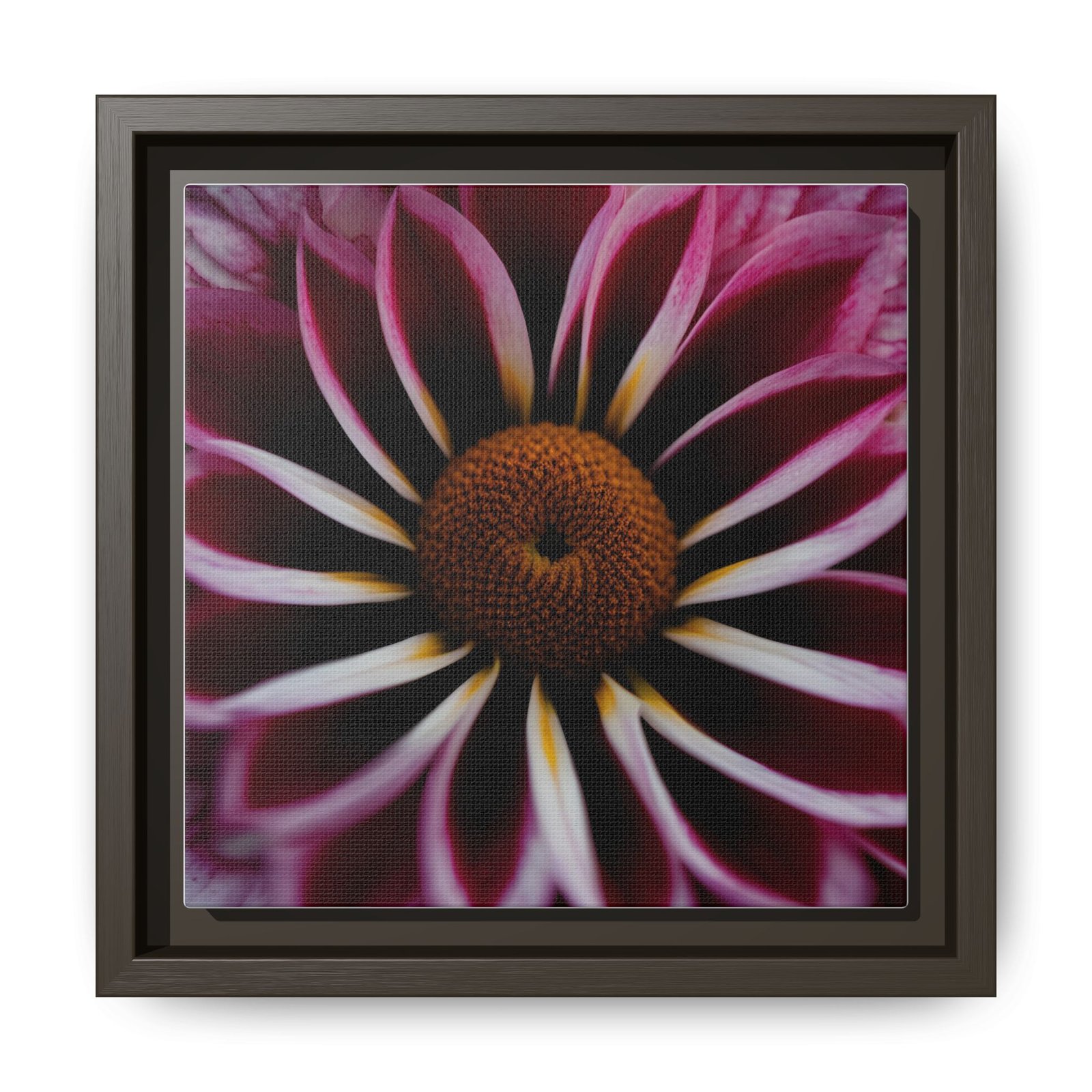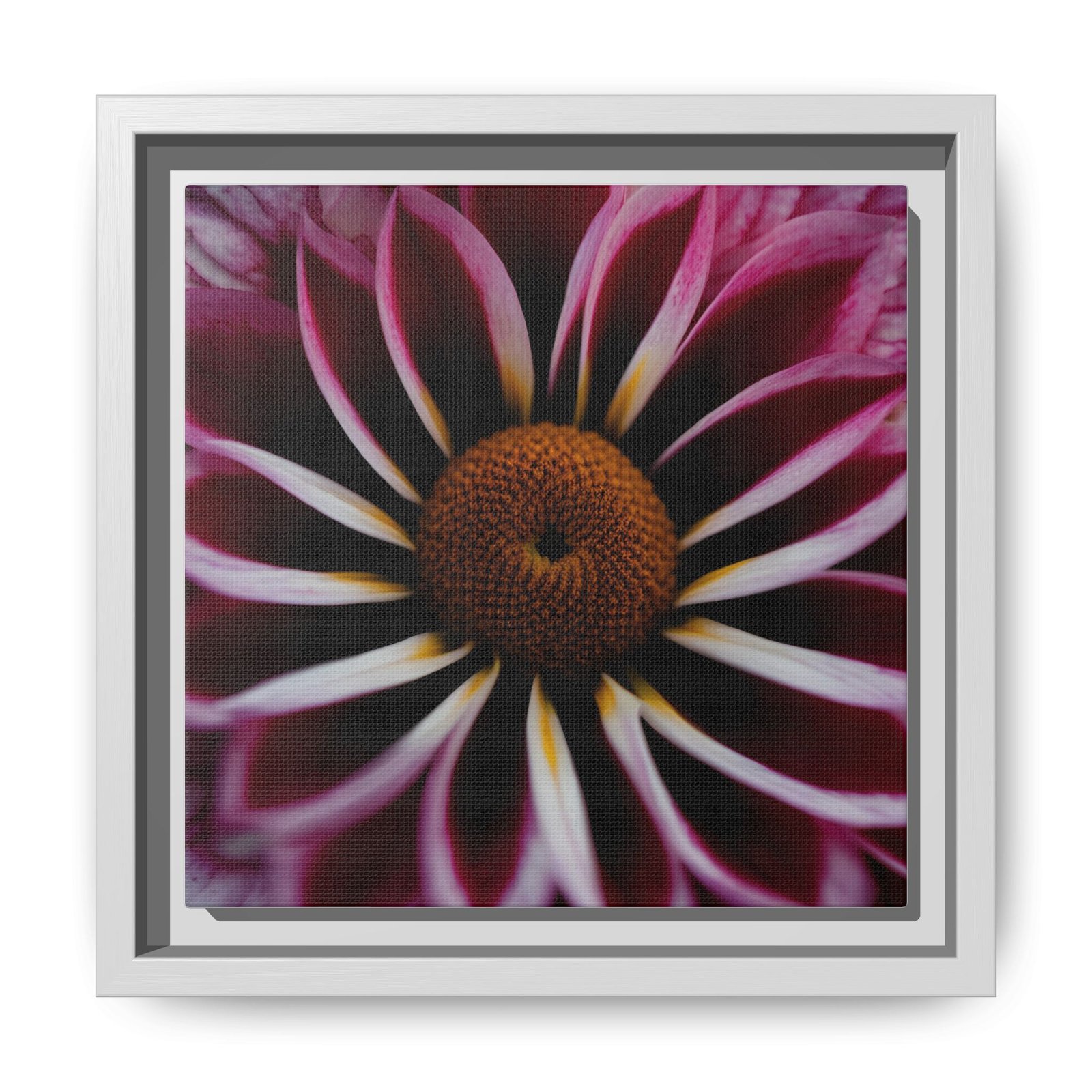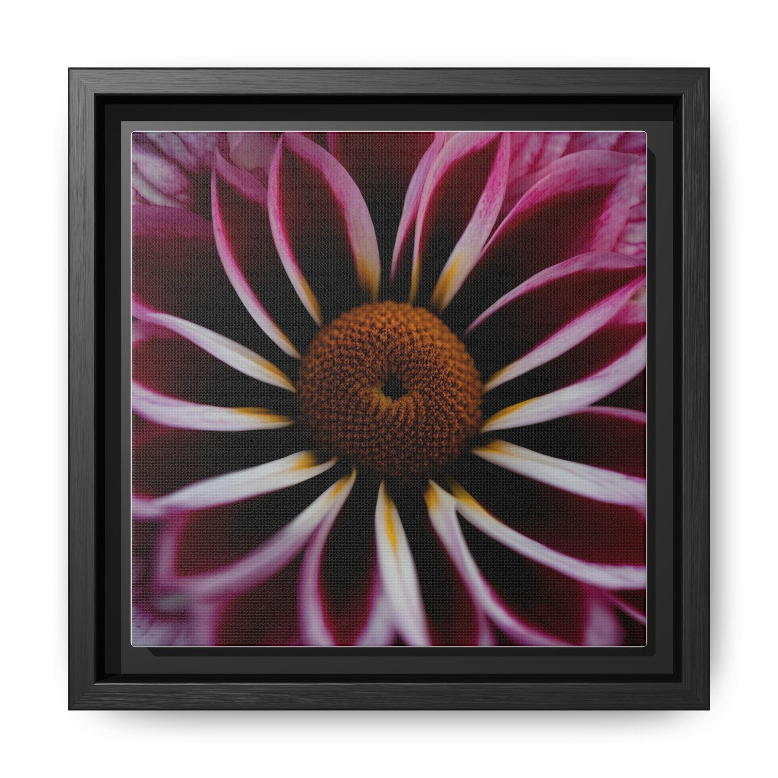 A framed matte canvas that brings intimate botanical drama to your wall. Deep magenta petals unfurl toward a warm, textured center — a close-up that reads like a private garden photograph. The low-sheen matte finish softens glare and gives the print a quiet, museum-like presence while the slim pine frame adds structure and a touch of natural warmth. Hang it in a reading nook, bedroom, or clustered on a gallery wall to add depth and a moment of stillness to everyday spaces.
