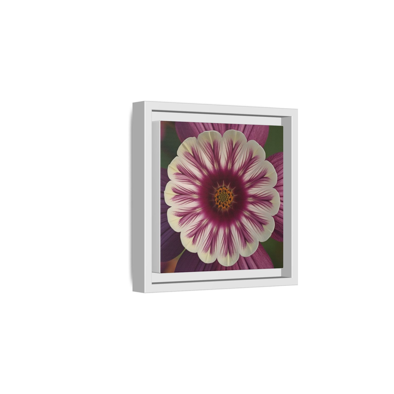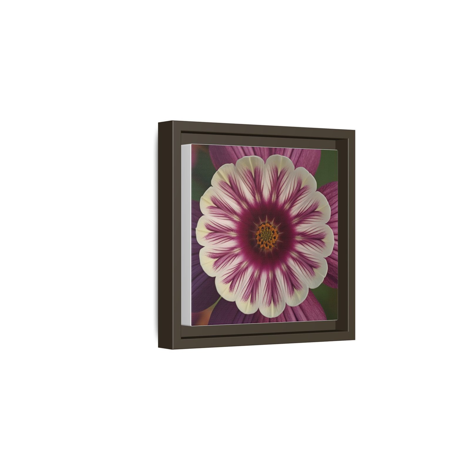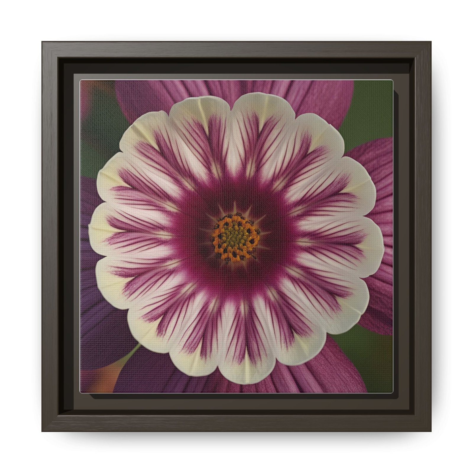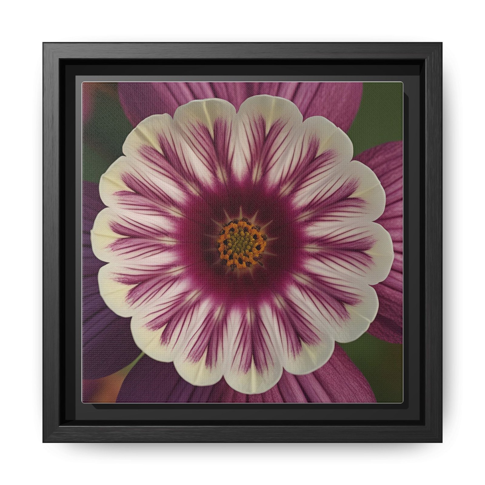 This framed matte canvas brings botanical calm into a room with a single, striking bloom. The fine-art print combines velvety mauves and creamy petals with crisp detail and a soft, non-reflective finish so the image reads beautifully from across the room or up close. Housed in a slim pine frame finished in a deep black, the piece reads modern yet warm—an easy anchor for a reading nook, gallery wall, or entryway where quiet color and texture matter. It hangs flush and secure with included sawtooth hardware, and the sustainably sourced materials and low-VOC latex inks mean you can enjoy the artwork with a clear conscience.