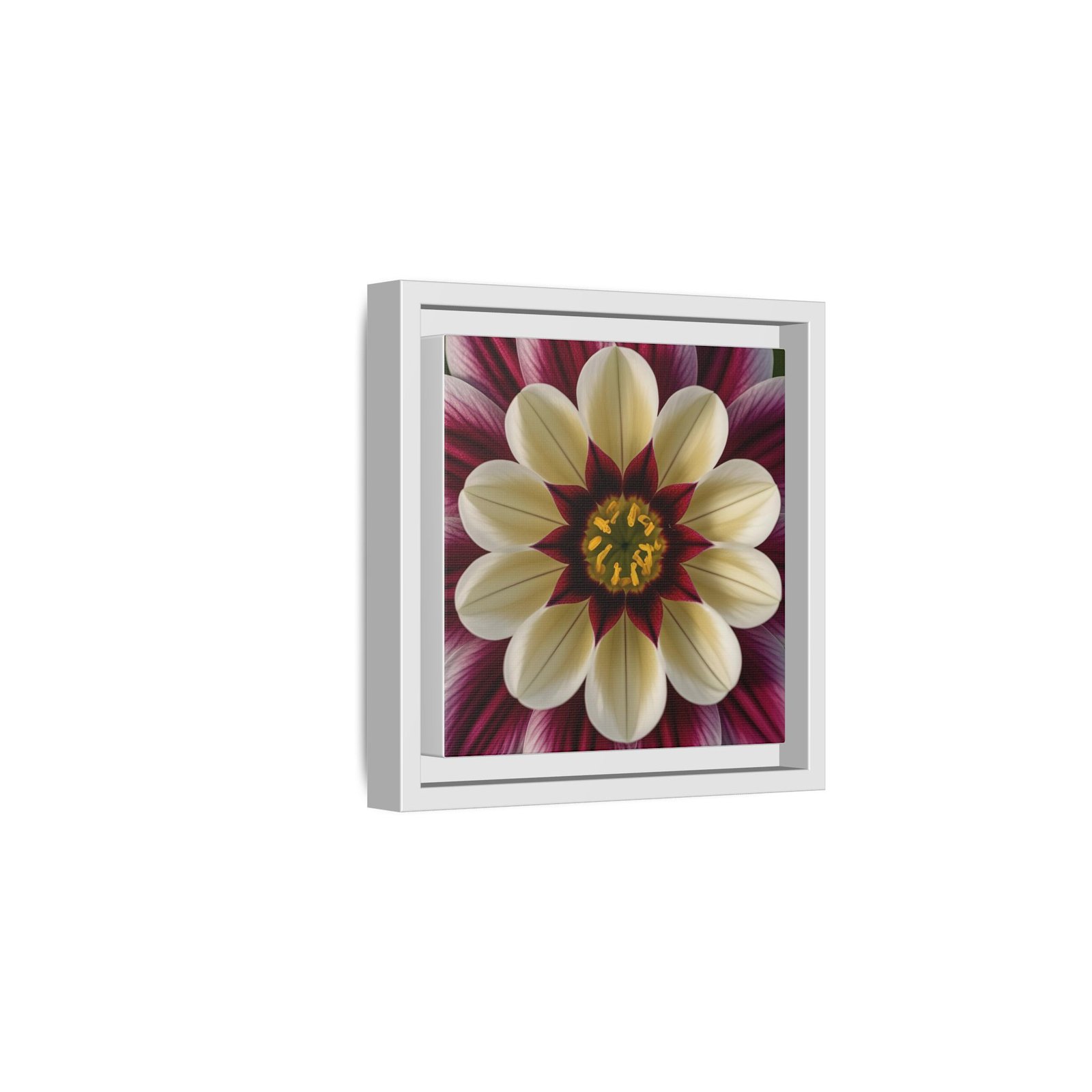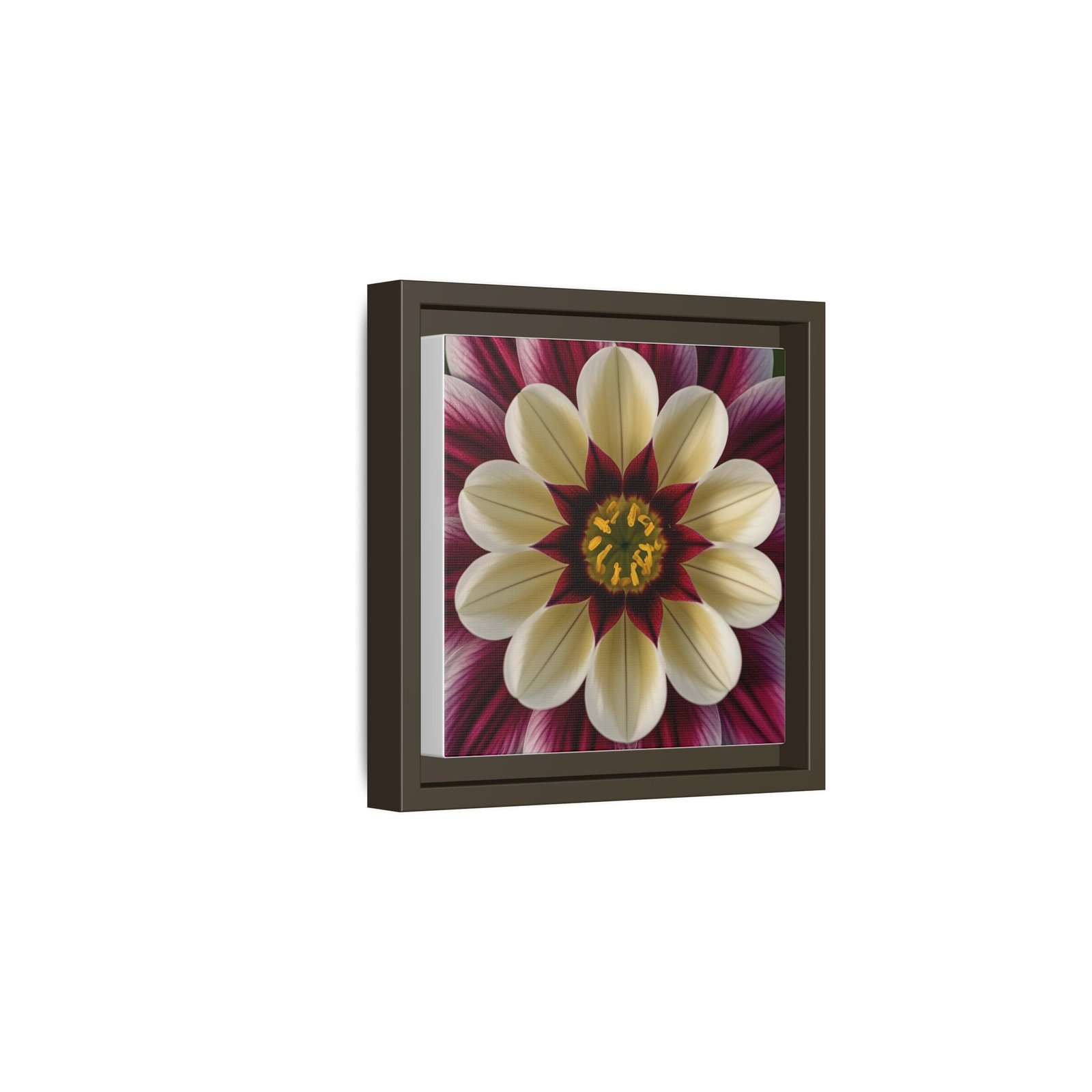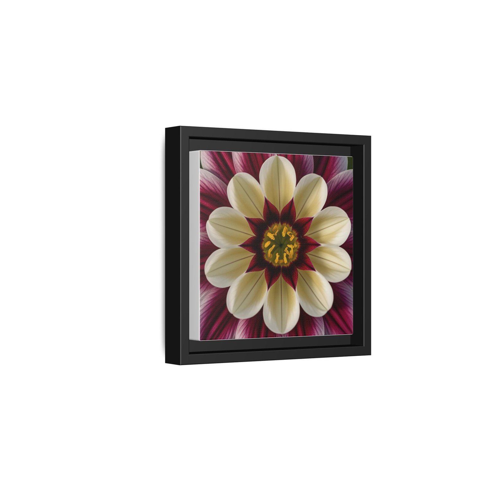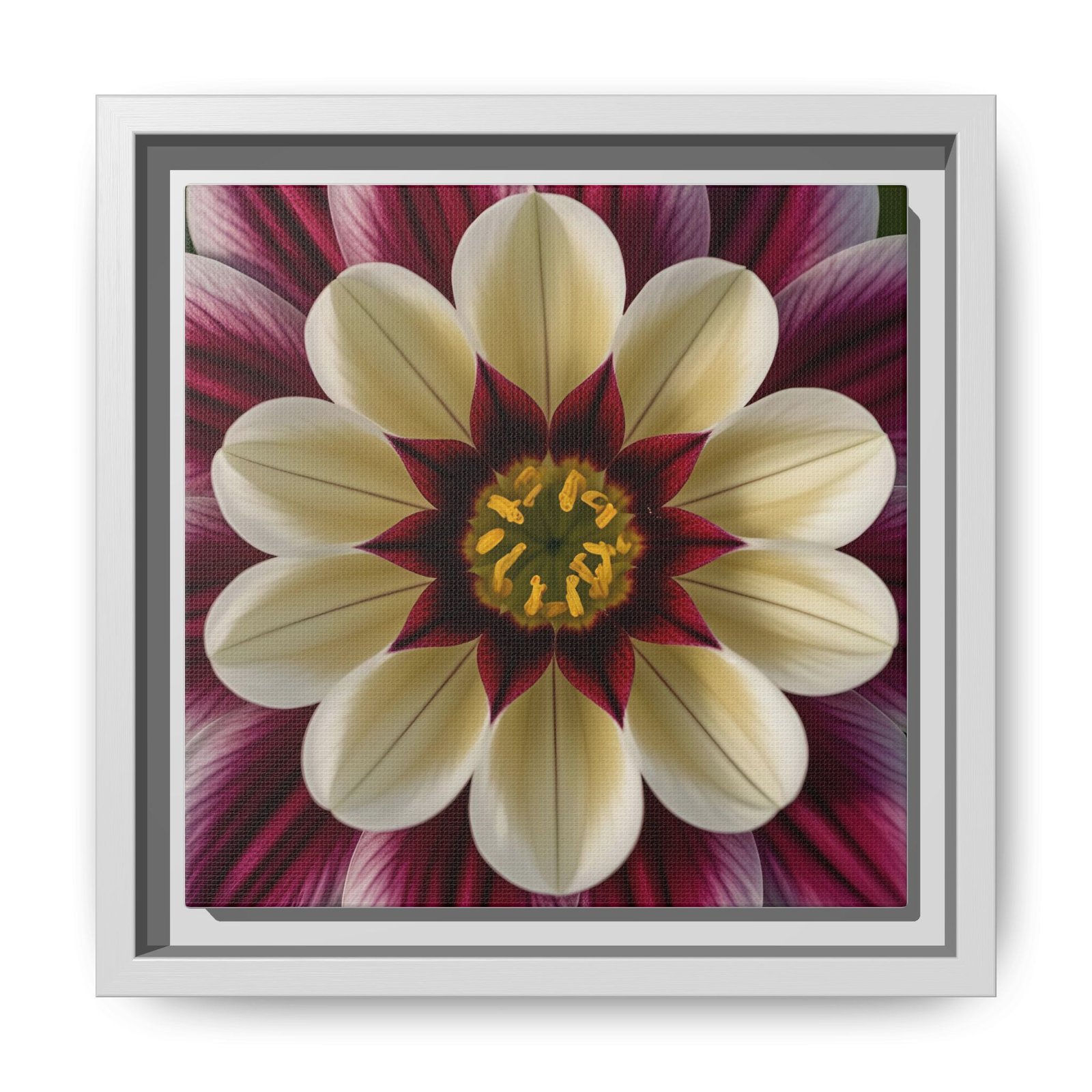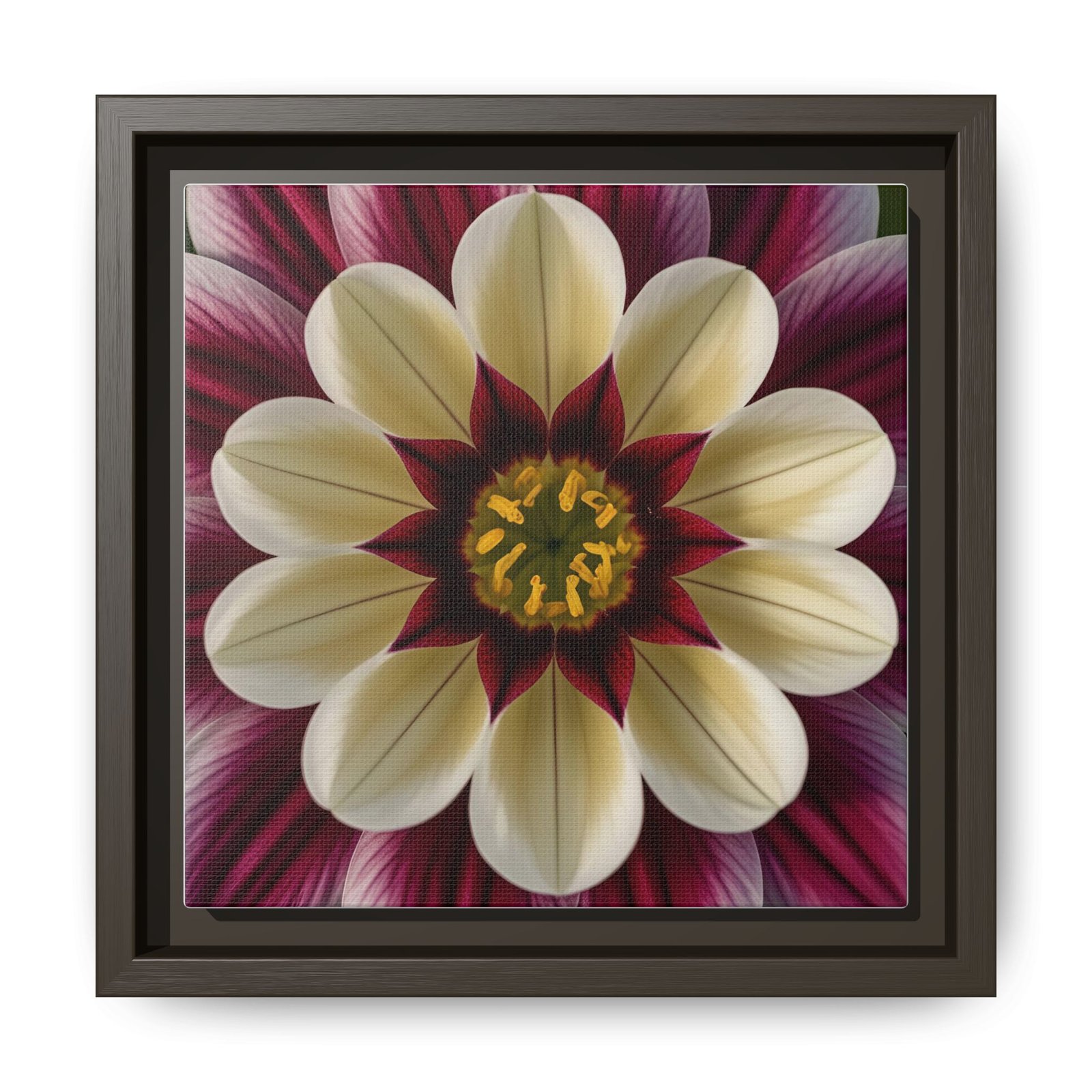 A framed matte canvas print that draws the eye and softens a room with botanical geometry. The layered petals and deep burgundy backdrop feel both intimate and bold — the print sits flush inside a slim pine frame finished in your choice of color, ready to hang. The image pops with velvety detail thanks to a special coating and UL-certified Greenguard Gold latex inks that keep colors vivid without harsh chemical fumes. Lightweight but sturdy, it brings a quiet gallery feeling to entryways, living rooms, or cozy reading nooks.
