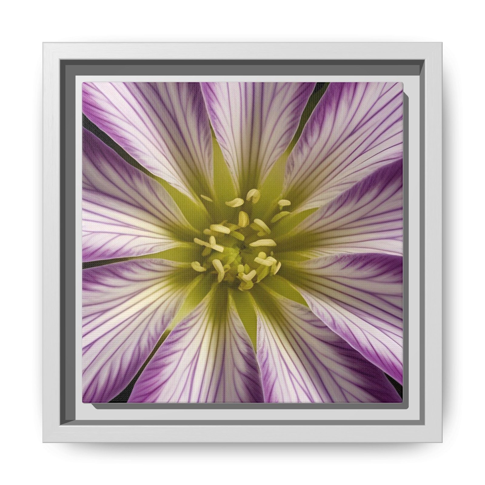 A delicate burst of color captured on matte canvas and set within a slim pine frame. This framed canvas brings the quiet energy of a single bloom into your room โ soft lavender veins radiate from a luminous green heart, drawing the eye inward. The matte finish keeps reflections low, so the fine petal details and subtle gradients read like a study in botanical light. Hang it alone to anchor a calm corner, or pair it with other nature prints to build a serene gallery wall. It feels at home in a sunlit breakfast nook, a peaceful bedroom, or a studio where slow mornings matter.