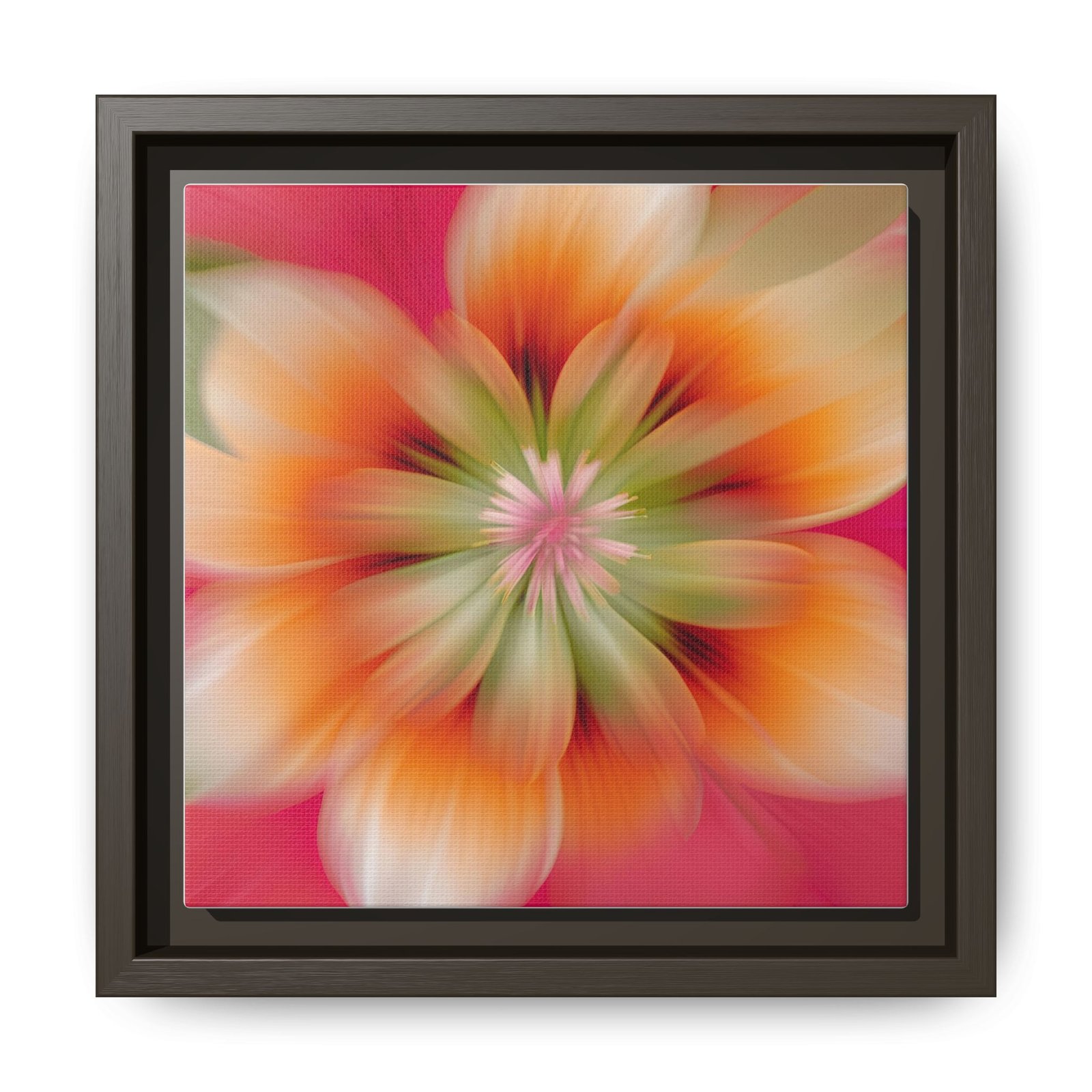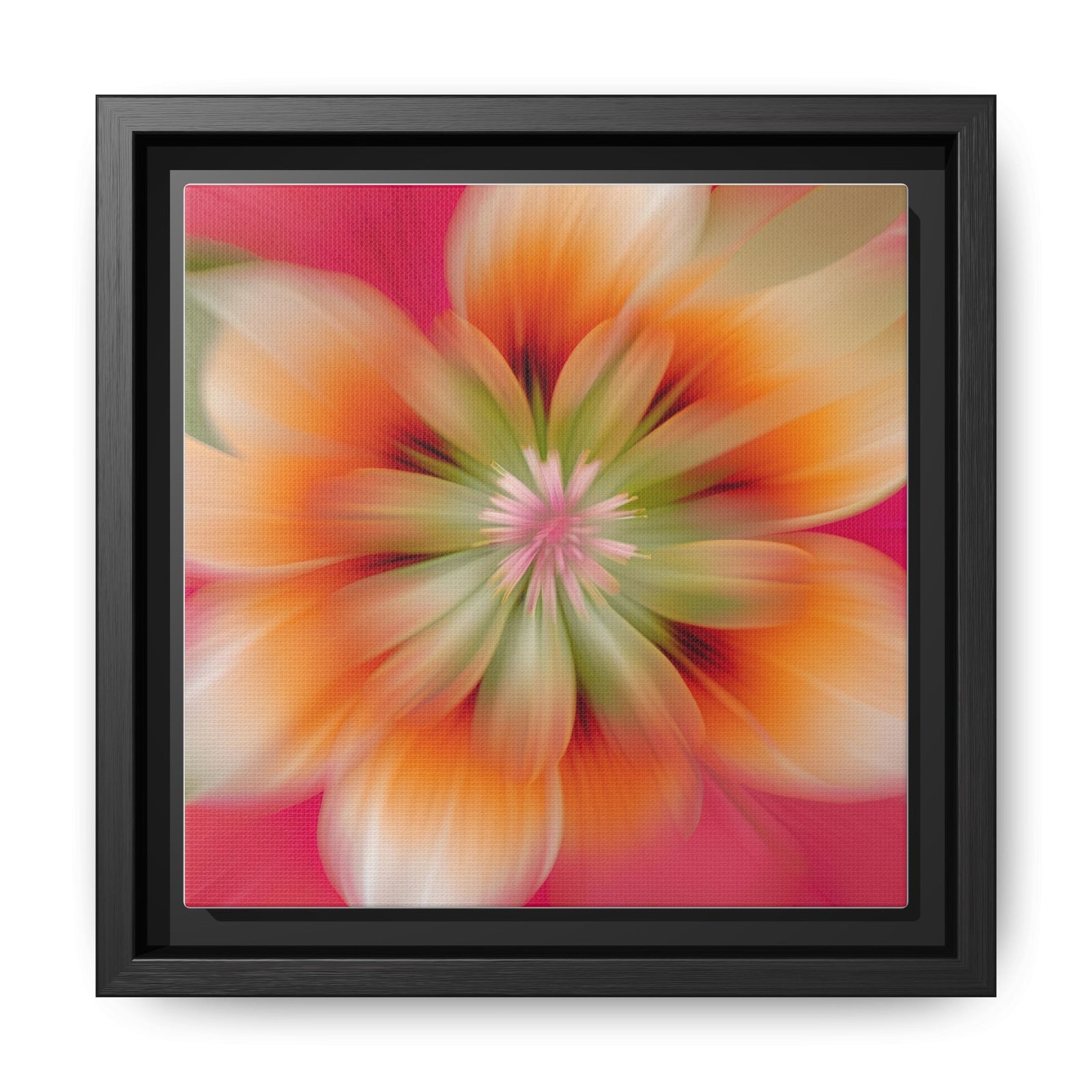 This framed matte canvas brings a soft, modern floral burst into a living space. The square composition and deep black frame create a clean, gallery-ready piece that reads as both contemporary and calming. Colors stay vivid thanks to a proprietary coating and latex-based inks, while the pine frame and sustainably sourced canvas keep the piece grounded and responsible. Hang it in a cozy reading nook, a bright hallway, or above a dresser to add a gentle pulse of color without overwhelming the room.