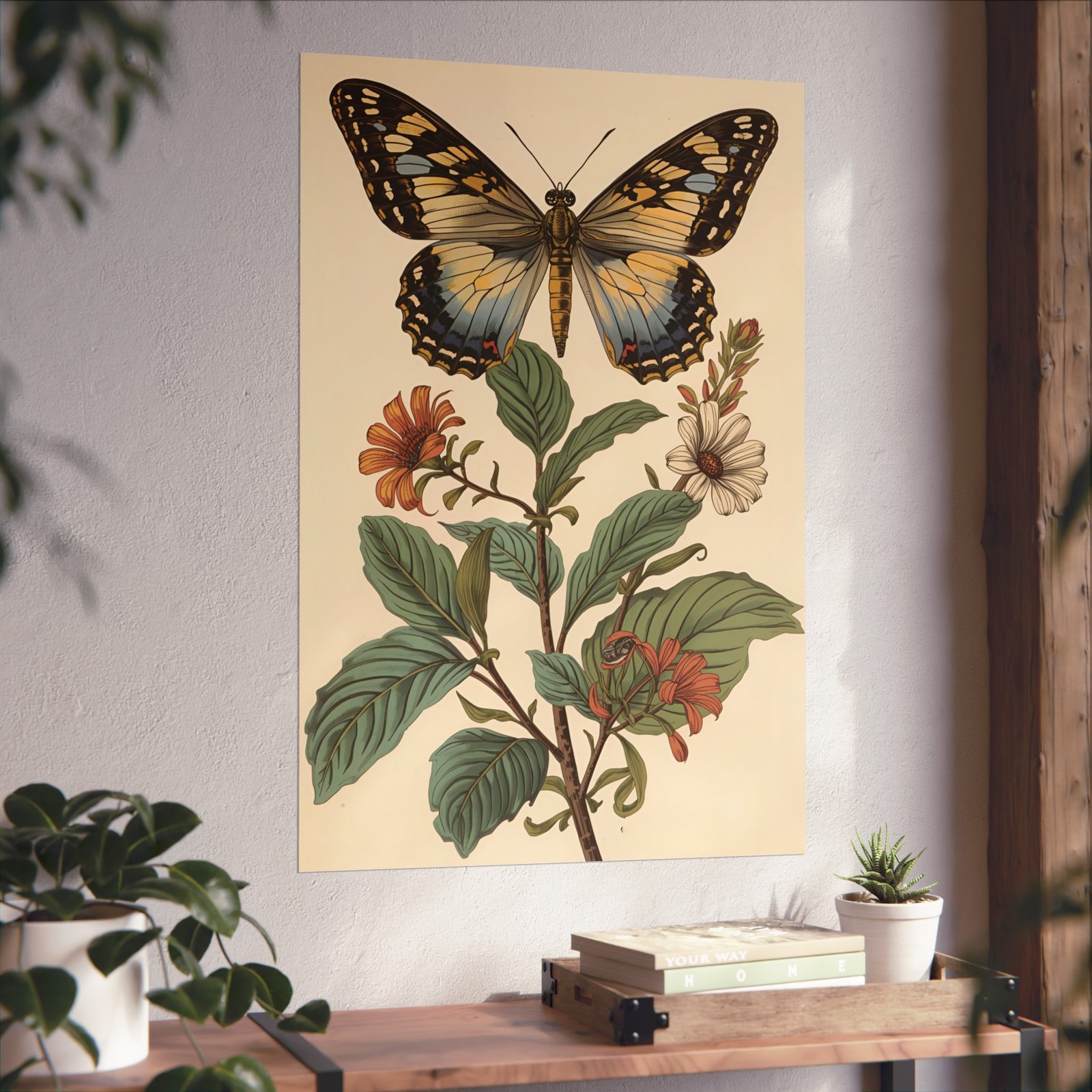 A finely detailed botanical study brought to life in soft, vintage tones. This giclée Fine Art Poster pairs a delicate butterfly with hand-rendered blooms, printed with archival REACH-certified inks on smooth matte, gallery-grade 220 gsm paper. It hangs quietly in a reading nook, above a dresser, or in a sunlit hallway—adding a calm, studied charm that blends natural history with everyday living. Available in horizontal, vertical, and square formats across 19 sizes, the print offers museum-quality texture without the glare, and is produced using EUTR-compliant materials sourced from the United Kingdom.