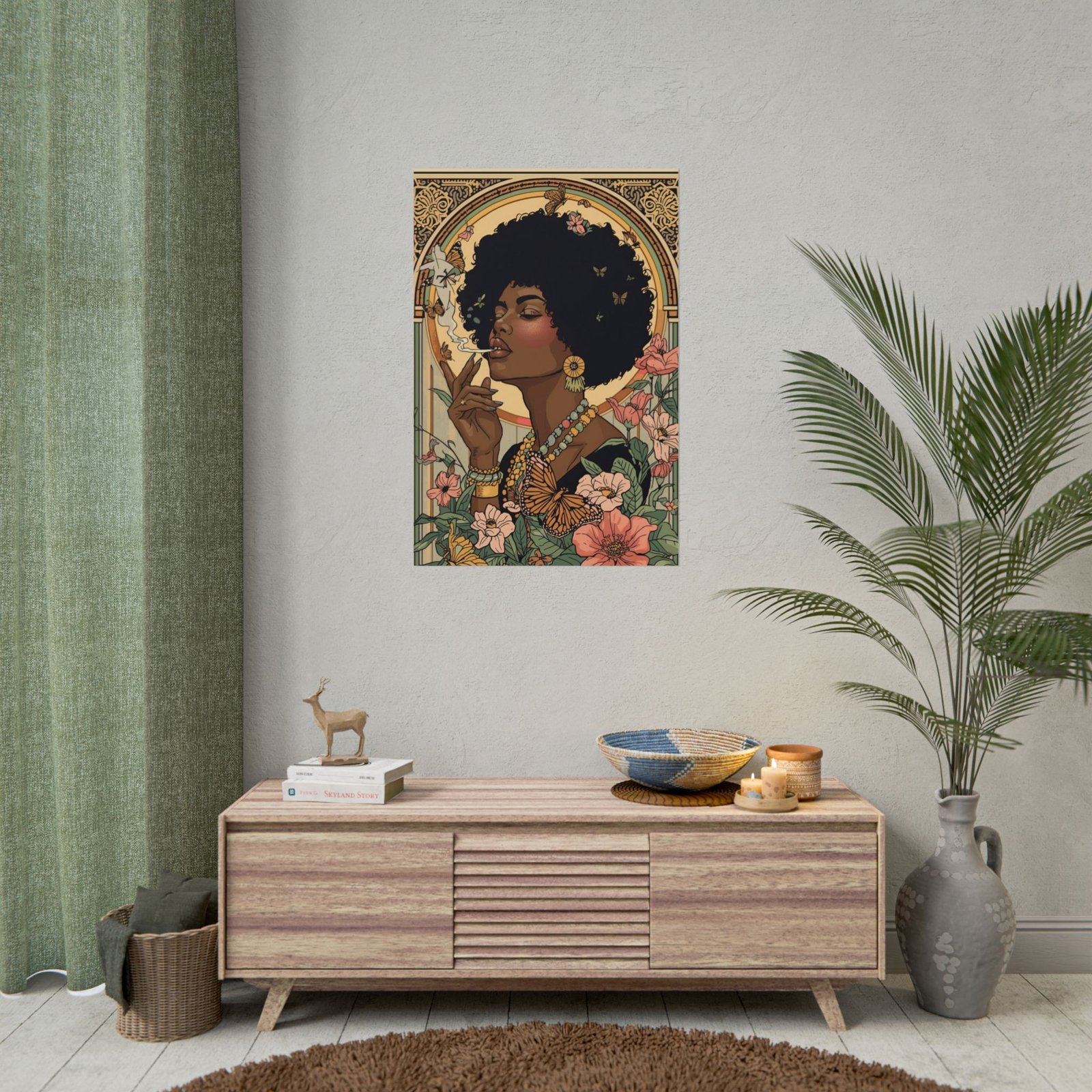 Vintage Floral Home Decor, Afrocentric Poster, Butterfly Room Decor, Gift for Art Lovers. Transform your space with these stunning rolled posters, designed to elevate any room. The vibrant colors and intricate details create a captivating focal point, perfect for those looking to express their individuality and appreciation for art. Ideal for adults, these posters bring life to any living room, bedroom, or creative space. Perfect gifts for art lovers or anyone celebrating special occasions like birthdays and housewarmings. Embrace a warm and inviting atmosphere that reflects your unique style with these versatile pieces.