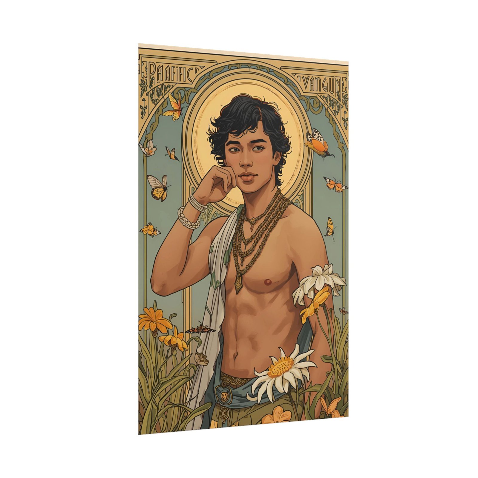 This rolled poster brings a warm, art-nouveau-inspired portrait into your space — soft earth tones, sunlit halo, and botanical details that feel both intimate and timeless. The image reads like a quiet celebration of summer afternoons: a thoughtful figure surrounded by daisies and gentle moths, textured linework, and a vintage palette that settles easily into living rooms, studios, or bedroom galleries. Choose from three archival paper types to match your display style: the tactile depth of fine art, the crisp color fidelity of semi-glossy photo paper, or the understated look of matte. Printed with long-lasting giclée inks, the colors stay vibrant through regular light exposure. Rolled for safe shipping, this poster arrives ready to frame or mount however you like — a gentle centerpiece that sets a calm, poetic mood.