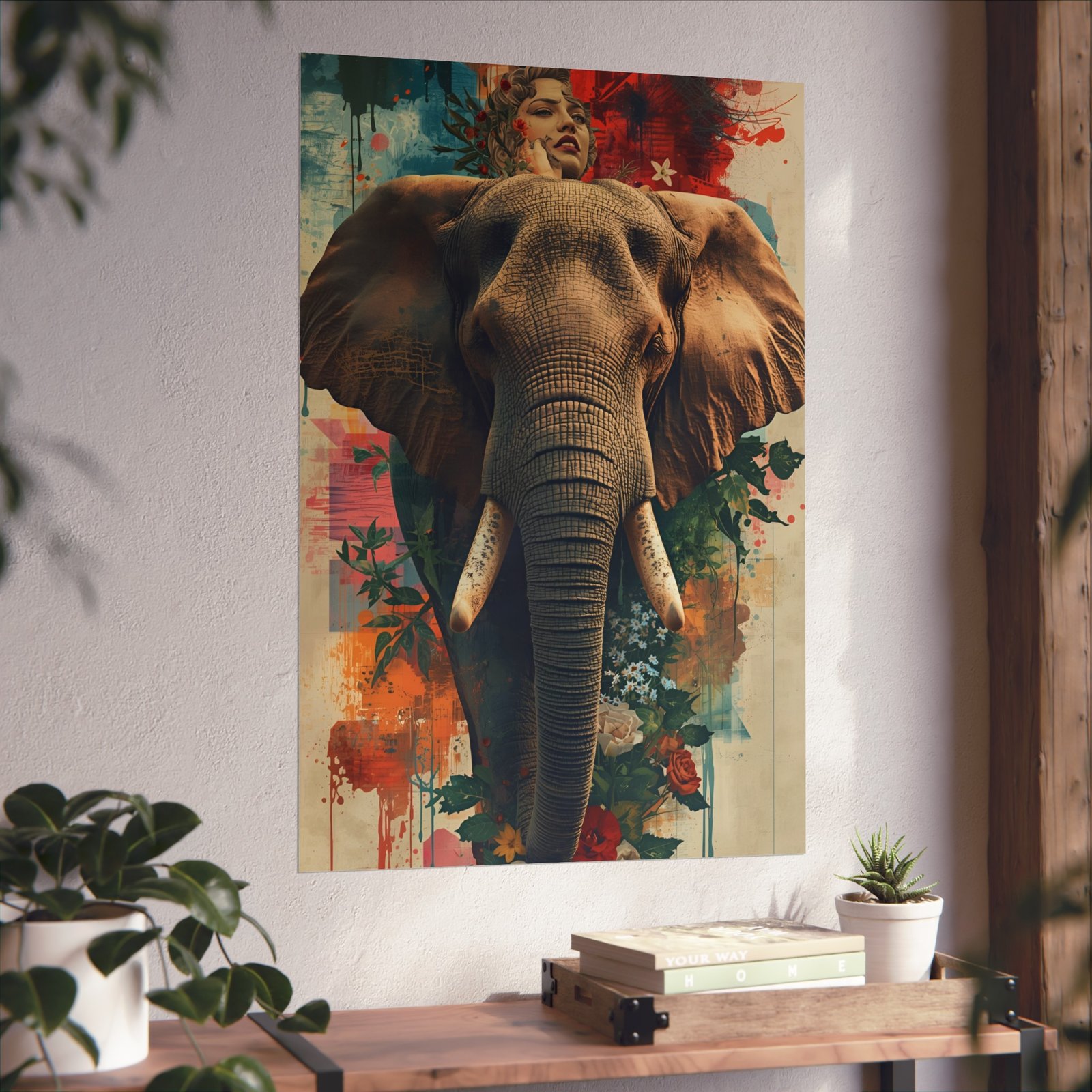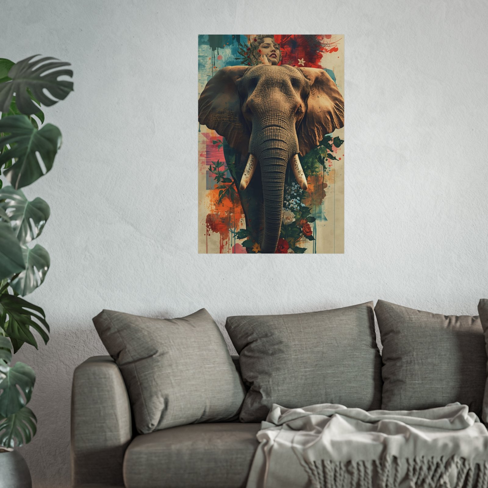 A gallery-quality fine art poster that brings a quiet, powerful presence to any room. The majestic elephant portrait sits against painterly splashes of color and delicate botanical accents — a balance of strength and grace. Printed with giclée precision on smooth, matte 220 gsm acid-free paper, the image retains rich tonal depth and subtle texture without glare. The result feels like a framed study from a contemporary conservatory: calm, soulful, and a little wild. It slips easily into living rooms, studios, or reading nooks where collectors and nature lovers look for artwork that sparks conversation and soothes the eye.