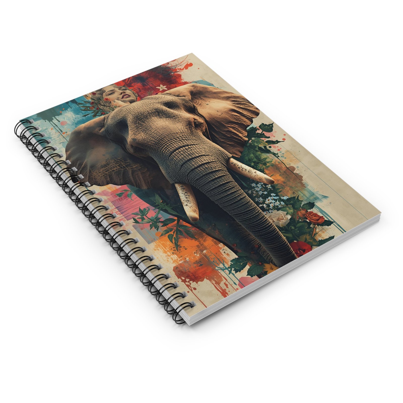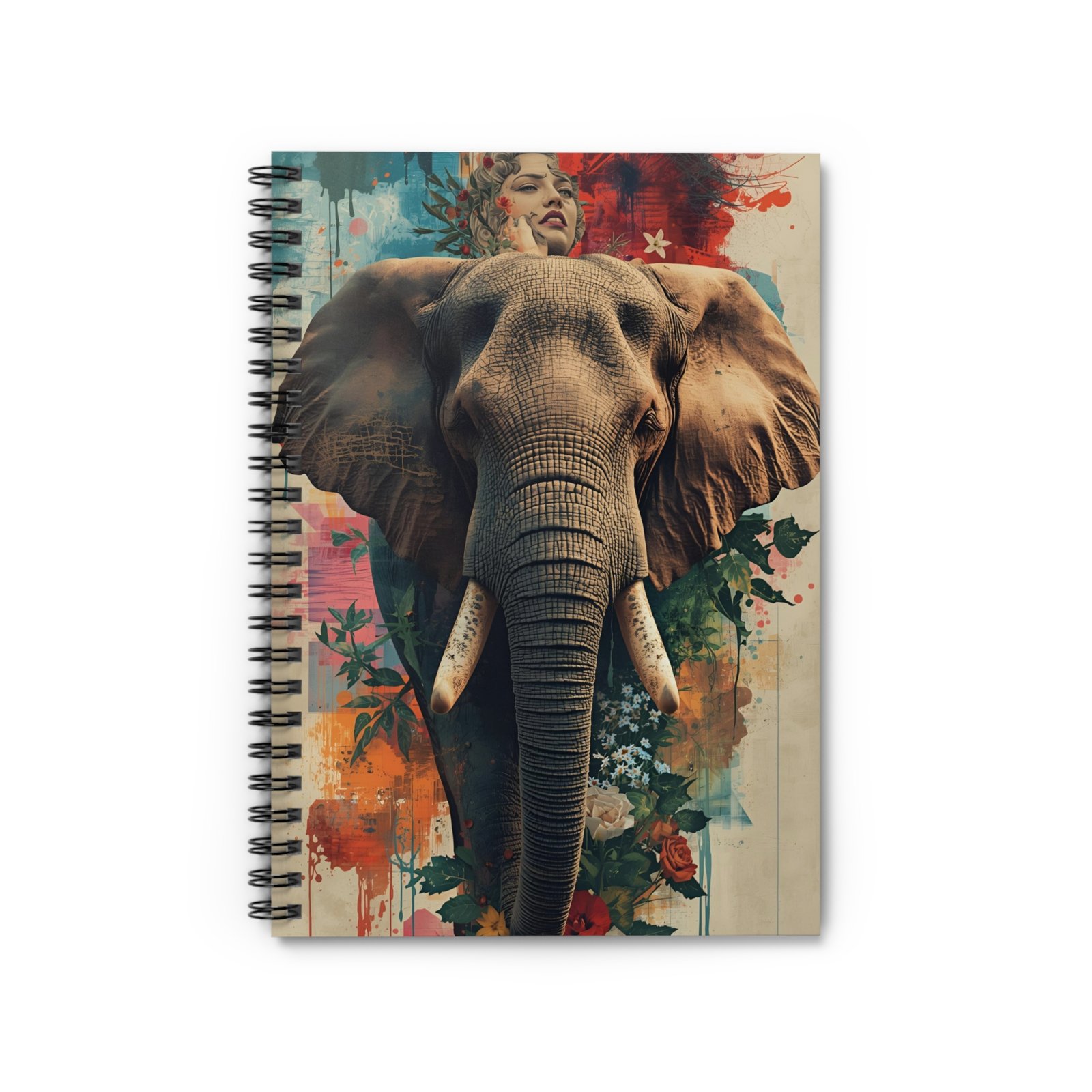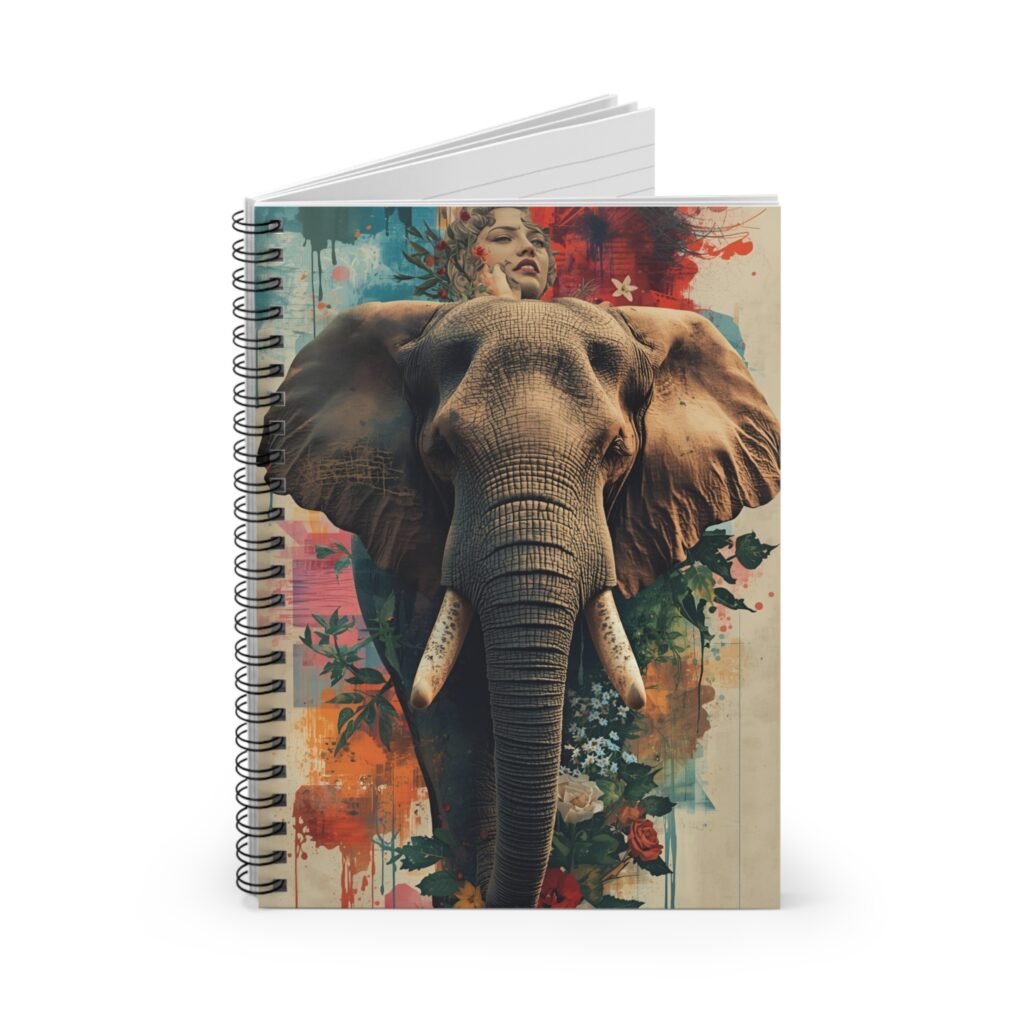 This spiral notebook brings bold, artful energy to everyday writing. A detailed elephant portrait emerges from vibrant watercolor blooms on the front cover, setting a creative, soulful tone before you write a single line. Inside, smooth 90gsm ruled pages invite journaling, planning, sketching, or study notes, while the metal spiral binding lets the book lie flat and makes tearing out pages clean and simple. A handy document pocket tucked into the back cover keeps loose papers, tickets, or clippings safe. At a compact 6″ x 8″, it slips into backpacks and tote bags easily — great for field sketches, lecture notes, or a daily gratitude ritual.