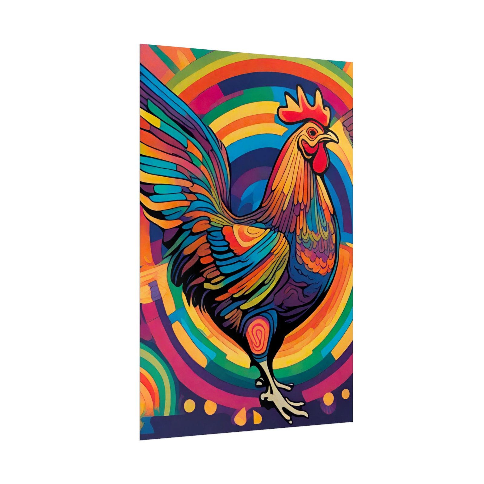 A vibrant rolled poster that brings bold color and joyful energy to any wall. This high-quality print captures intense, saturated hues and crisp detail—perfect for someone who wants art with presence. Choose from two paper types to match your space: tactile feel; semi-glossy photo paper for punchy color and a satin sheen; or matte for a softer, gallery-style finish, it ships rolled to protect the paper and makes switching up your decor effortless. The artwork’s dynamic rooster and concentric color rings add a playful, confident focal point to living rooms, studios, or creative workspaces.