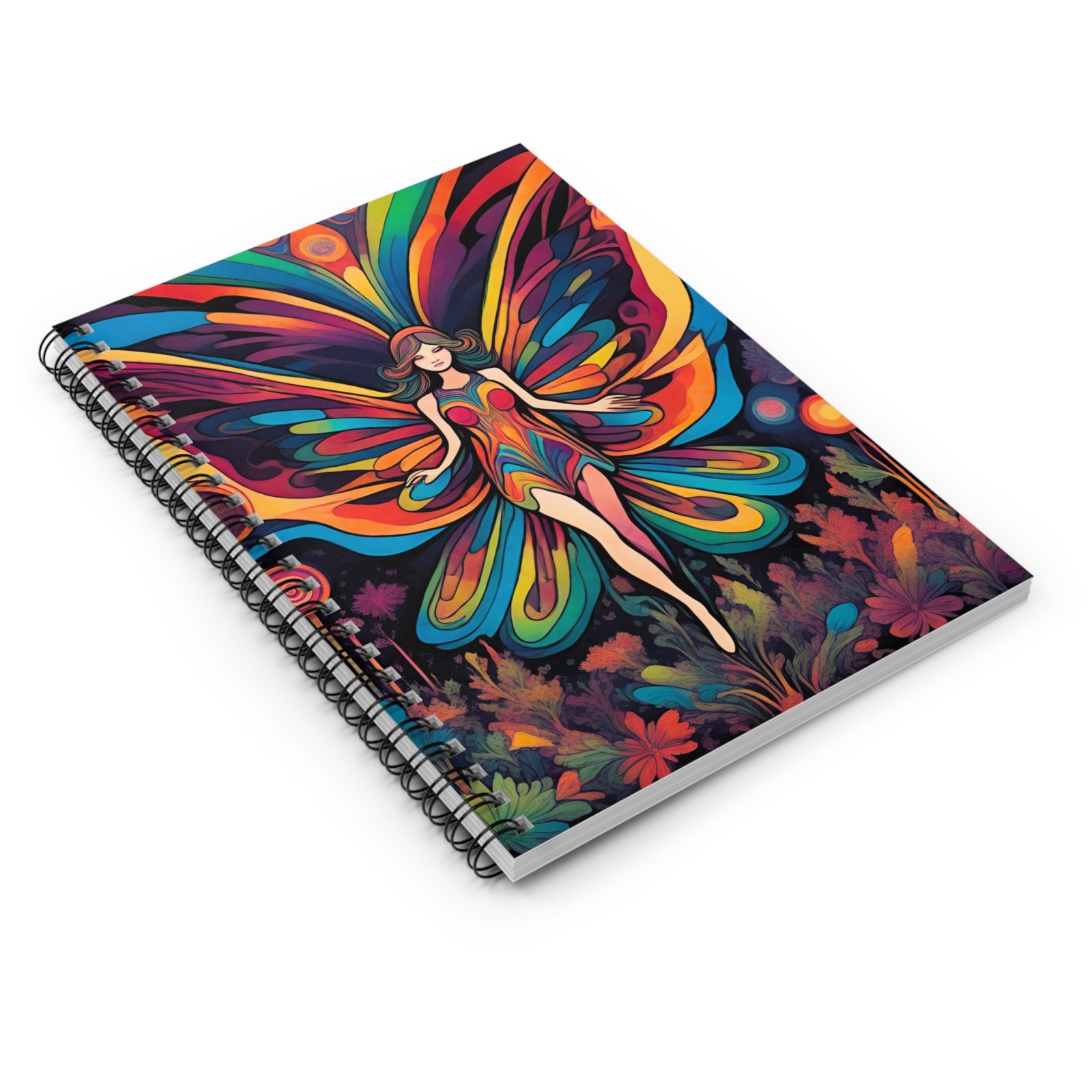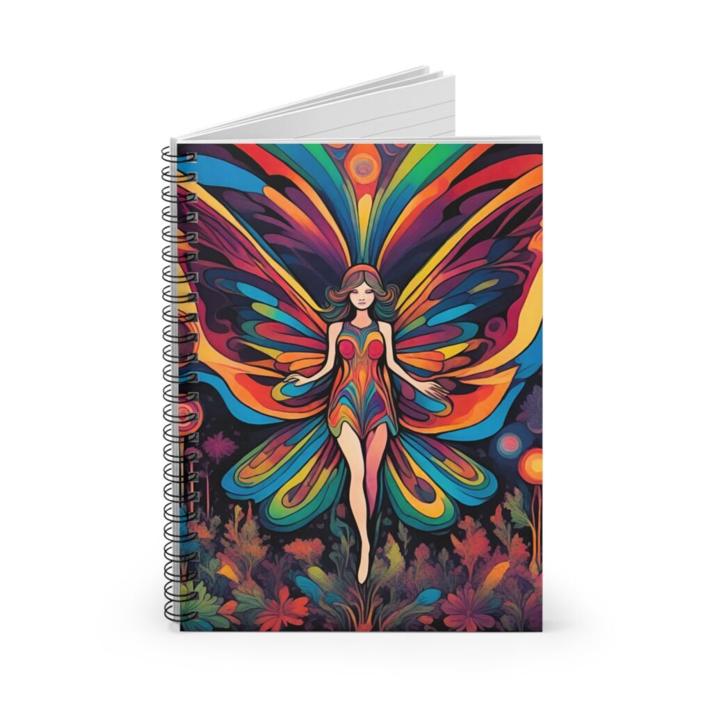 IS_6561 Butterfly Fairy Spiral Notebook — Colorful Psychedelic Ruled Journal